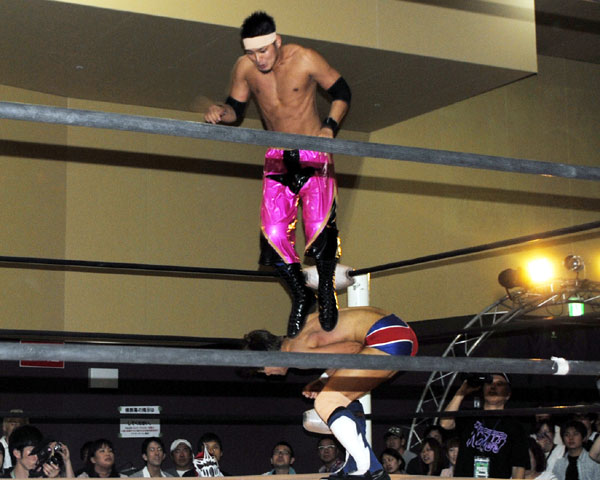 [3]杉浦(17分17秒、小峠のトラースキックでオーバー・ザ・トップロープ)