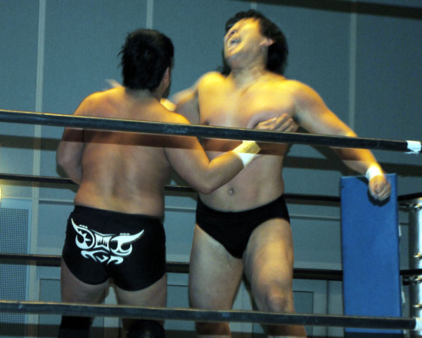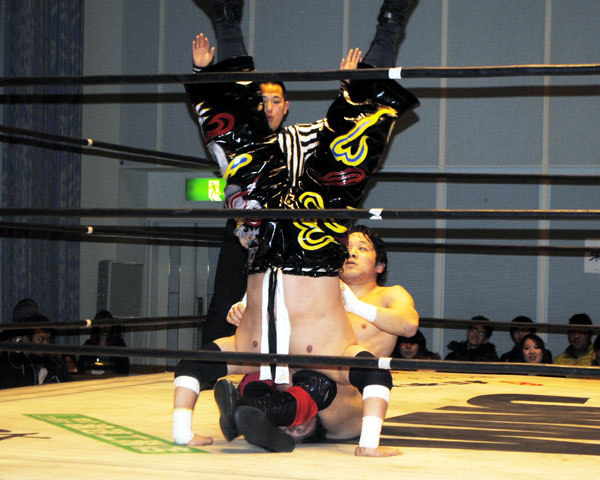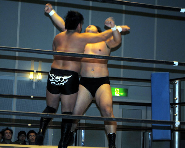 ○木藤拓也(11分38秒 片エビ固め)×黒潮“イケメン”二郎