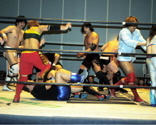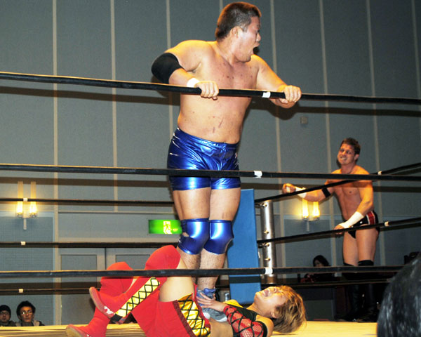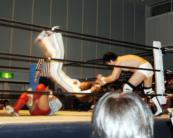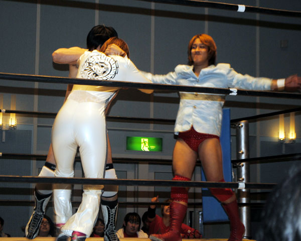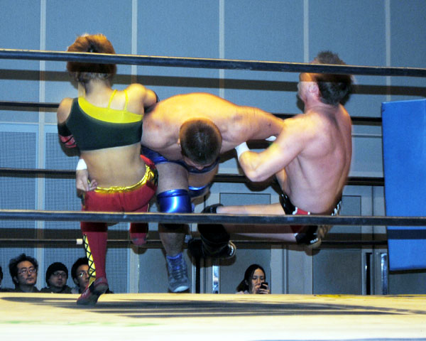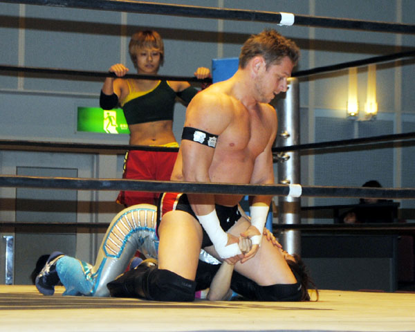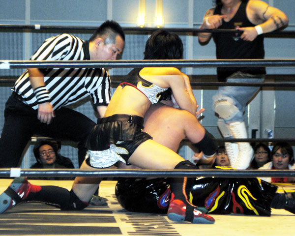 AKIRA ○朱里 児玉裕輔(18分2秒 ジャーマン・スープレックス・ホールド)TAJIRI 金村キンタロー ×真琴