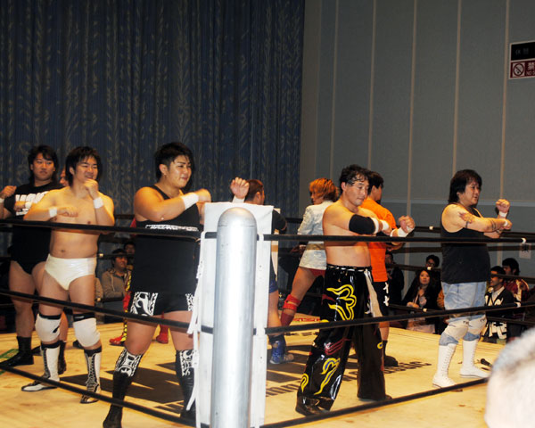 第1~3試合までは大日本でおなじみの高橋はともかくとして若手が多い団体とあって派手な技もなく基本中心の試合だが、土肥などはラリアットプロレス、藤原ライオンは藤原喜明から苗字をもらっているだけに関節や打撃などのUWFスタイル、日向などはライオン相手に片足タックルからのグラウンドを積極に仕掛けてくるなど各選手とも個性が充分に備わっていた。