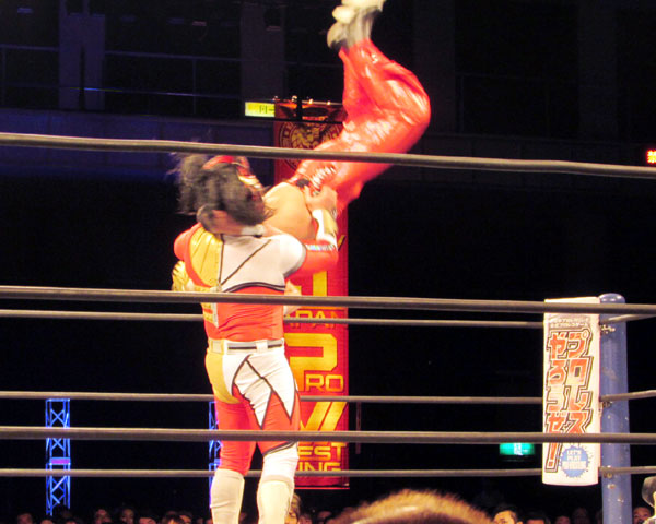 タイガーは回転十字固めからタイガードライバー、そしてタイガースープレックスを狙うが、阻止したライガーは雪崩式フランケンシュタイナーを狙うも、下から脱出したタイガーは雪崩式バックドロップを決める。