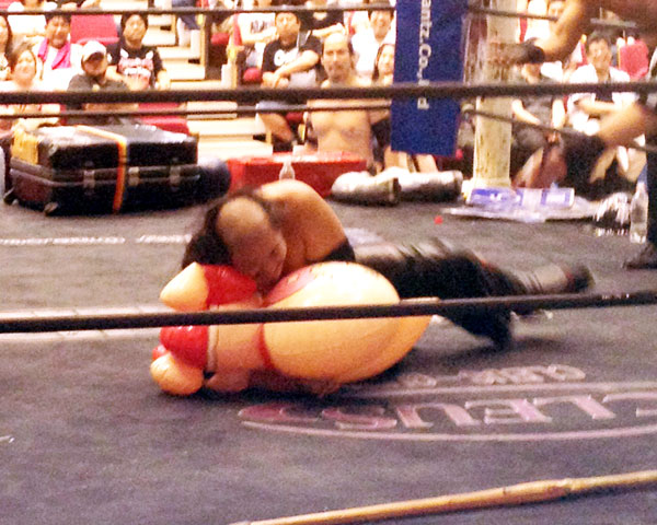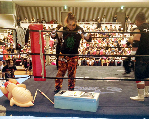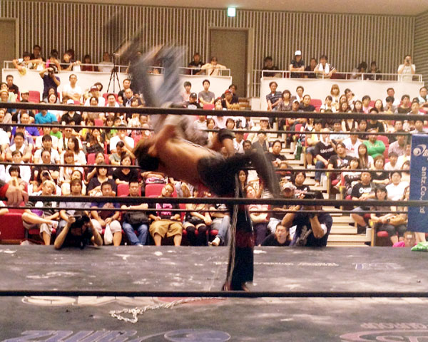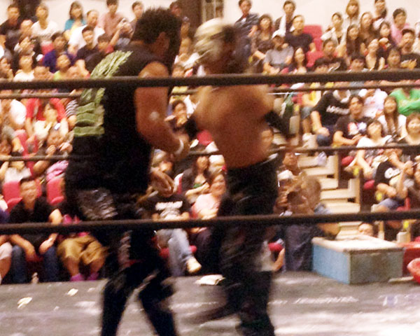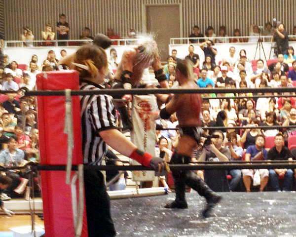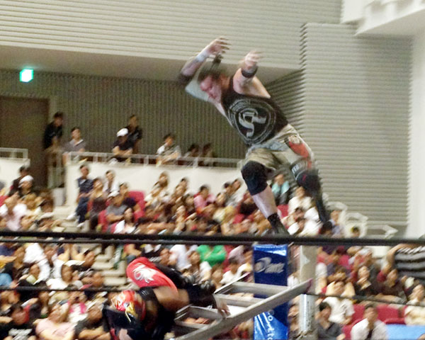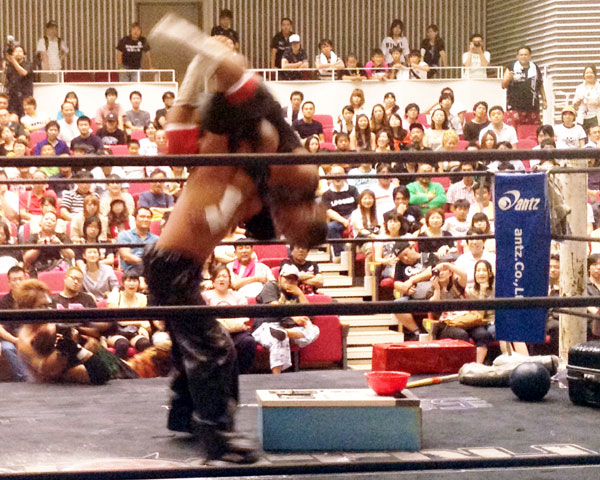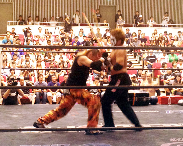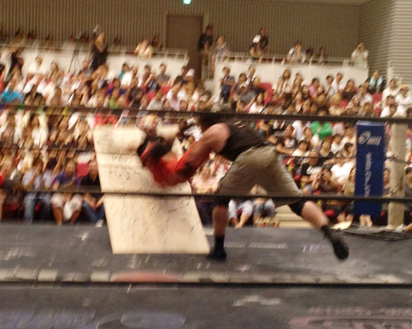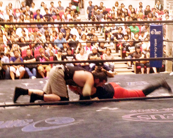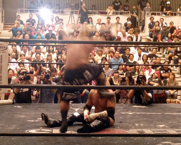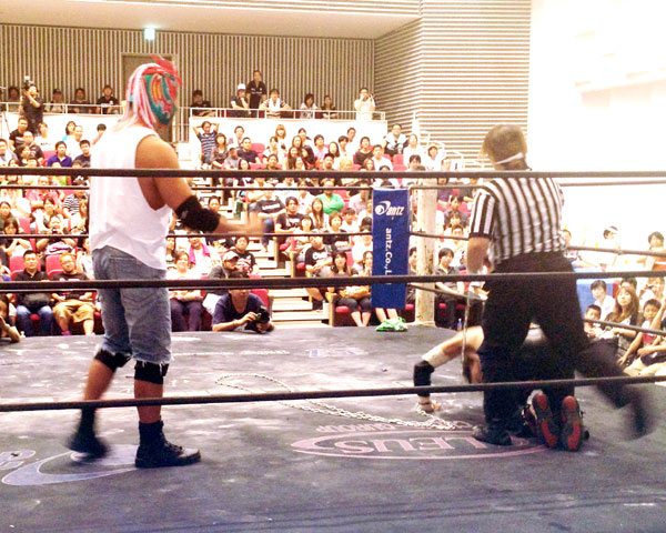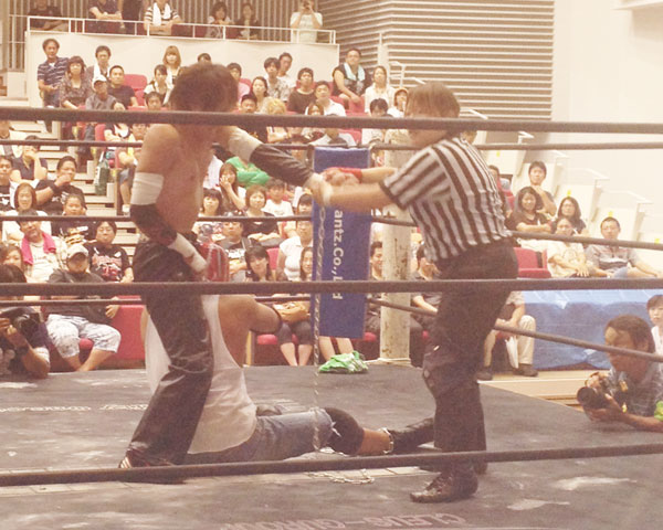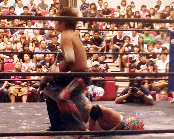しかし先手を奪ったのは竹田、アンクルホールドで葛西の痛めている膝を攻め、葛西はハーリー・レイス式ダイビングヘッドバットで反撃も、勝負を焦ったのかリバースタイガードライバー狙いは不発となる。