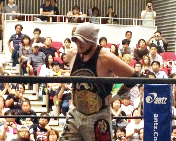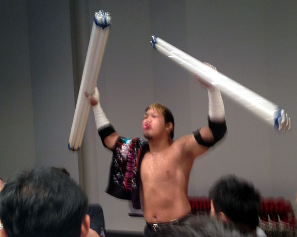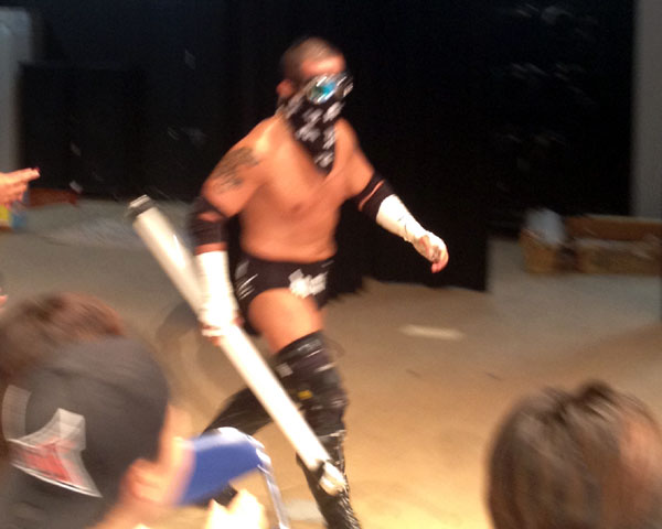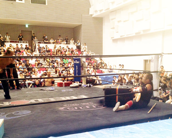 会場入りするが12時半からプロレスリング武骨がFREEDOMSの前に興行を開催しており、自分は近くのスーパーでI-PHONEの充電器や時間つぶしのために愛読書である「こち亀」181巻を購入してから会場へ戻り、大きいイスに座ると後ろからツルツル頭の外国人が片言の英語で「オヤスミナサイ」と言ってくる、その選手は現在FREEDOMS参戦中のワンマン・クルー選手で、また後ろにいたFREEDOMSの関係者や佐々木貴によると、そのイスで眠りたいらしいという説明を受けて、自分は「プリーズ」とイスを明け渡し、クルー選手はうつ伏せになって寝るも、結局寝付けなかったらしく、そばにいた子供連れのファンと遊び、しばらくして控室へと戻っていった。