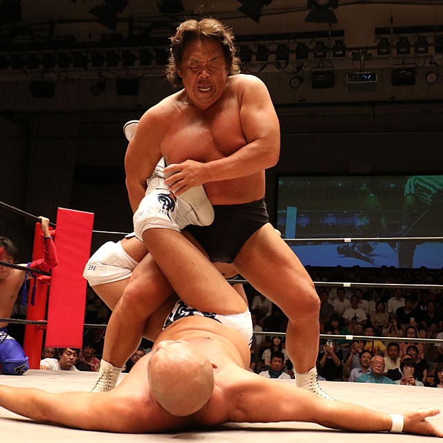 ○秋山準 橋本大地 黒潮"イケメン"二郎(17分47秒 体固め)×長州力 関本大介 ヨシタツ