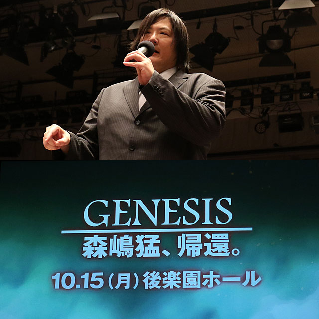 (場内ビジョンに「あの男が、帰ってくる」の文字が映され、続いて森嶋猛の10・15後楽園での復帰戦が告知スされる。森嶋は1998年に全日本でデビューし、その後はNOAHに所属していたが2015年に引退を表明。スーツ姿の森嶋がリングへ登場し、四方に礼。)森嶋「お久しぶりです。3年ぶりに、後楽園、来ました。いろいろありましたが、やっぱり、プロレスがやっぱり好きなんで…10月15日、後楽園、ここのリングで、しっかりと、自分の、全力の、プロレスを、やります! あと3カ月ですが、しっかりと整えて、自分は、ここで、シングルマッチ、やりますので、ぜひとも、来て、ください! 本日はありがとうございました!」