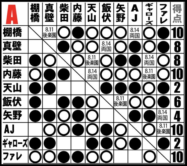 そしてリーグ戦的には柴田は手痛い3敗目でトップから1歩後退、棚橋は2敗を堅守となった。