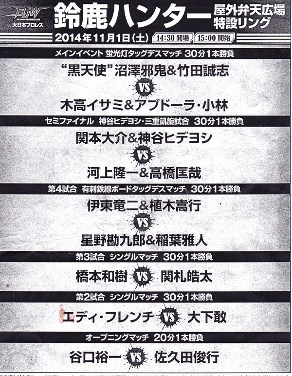 10月26日 DDT「DDT Special 2014」後楽園ホール 2200人 超満員札止め