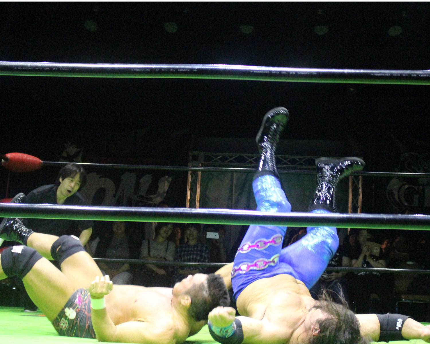 ヒロムはダイナマイトブランジャーからTIME BOMBを狙うが、逃れたデスペラードは急所蹴り狙うと、かわしたヒロムはコーナーへデスバレーボムからTIME BOMB狙いは、デスペラードは切り返すもヒロムはジャーマンで再びTIME BOMBを狙うが、今度はデスペラードがレフェリーを突き飛ばす。