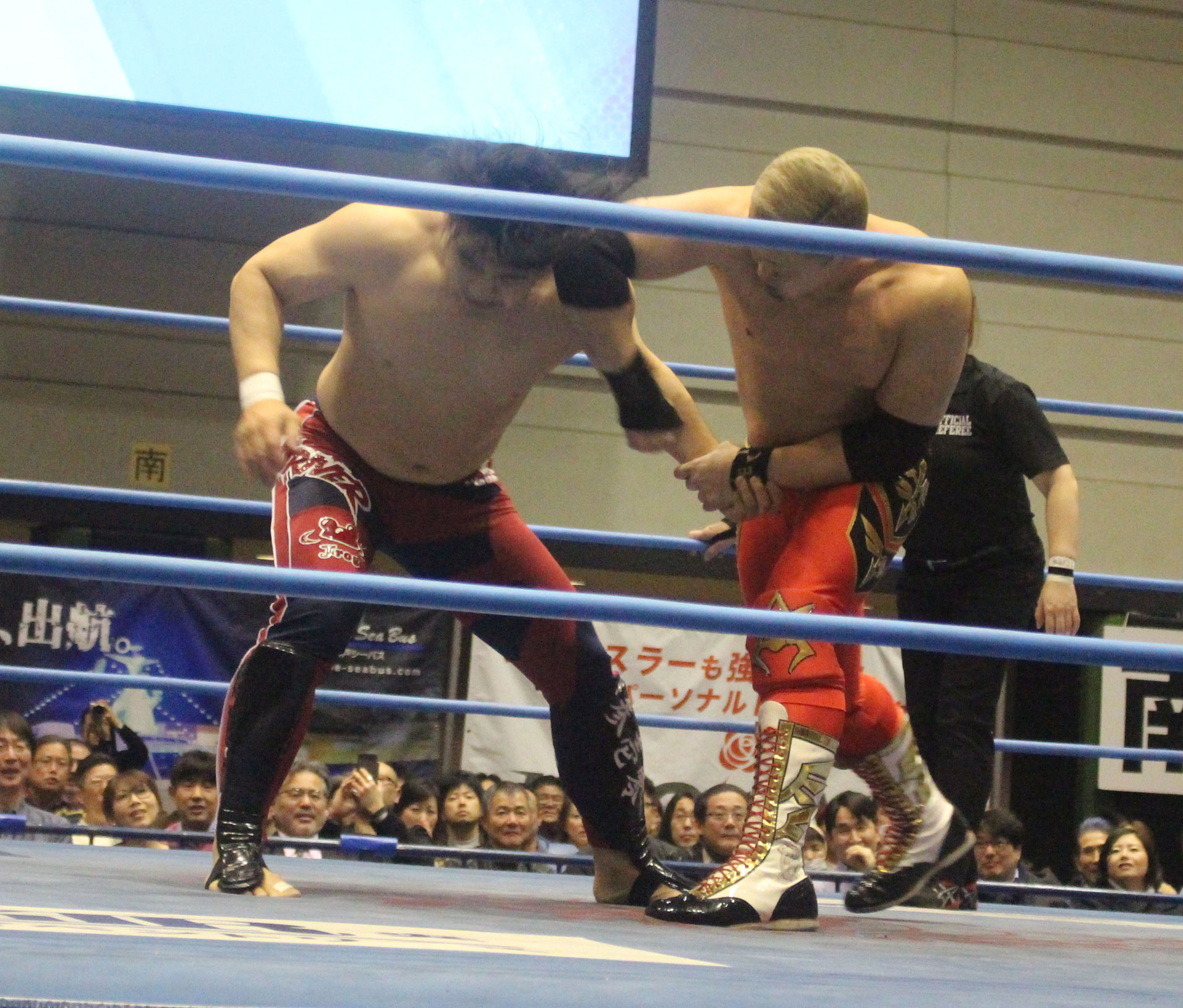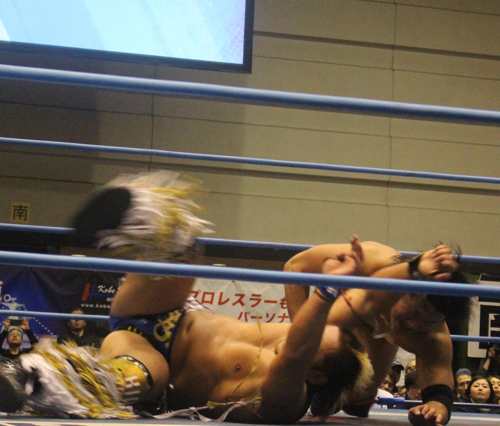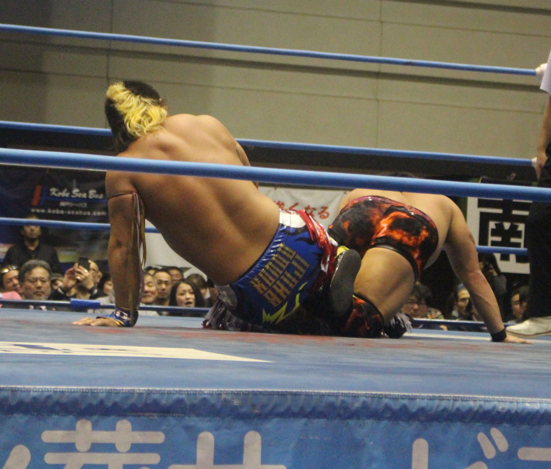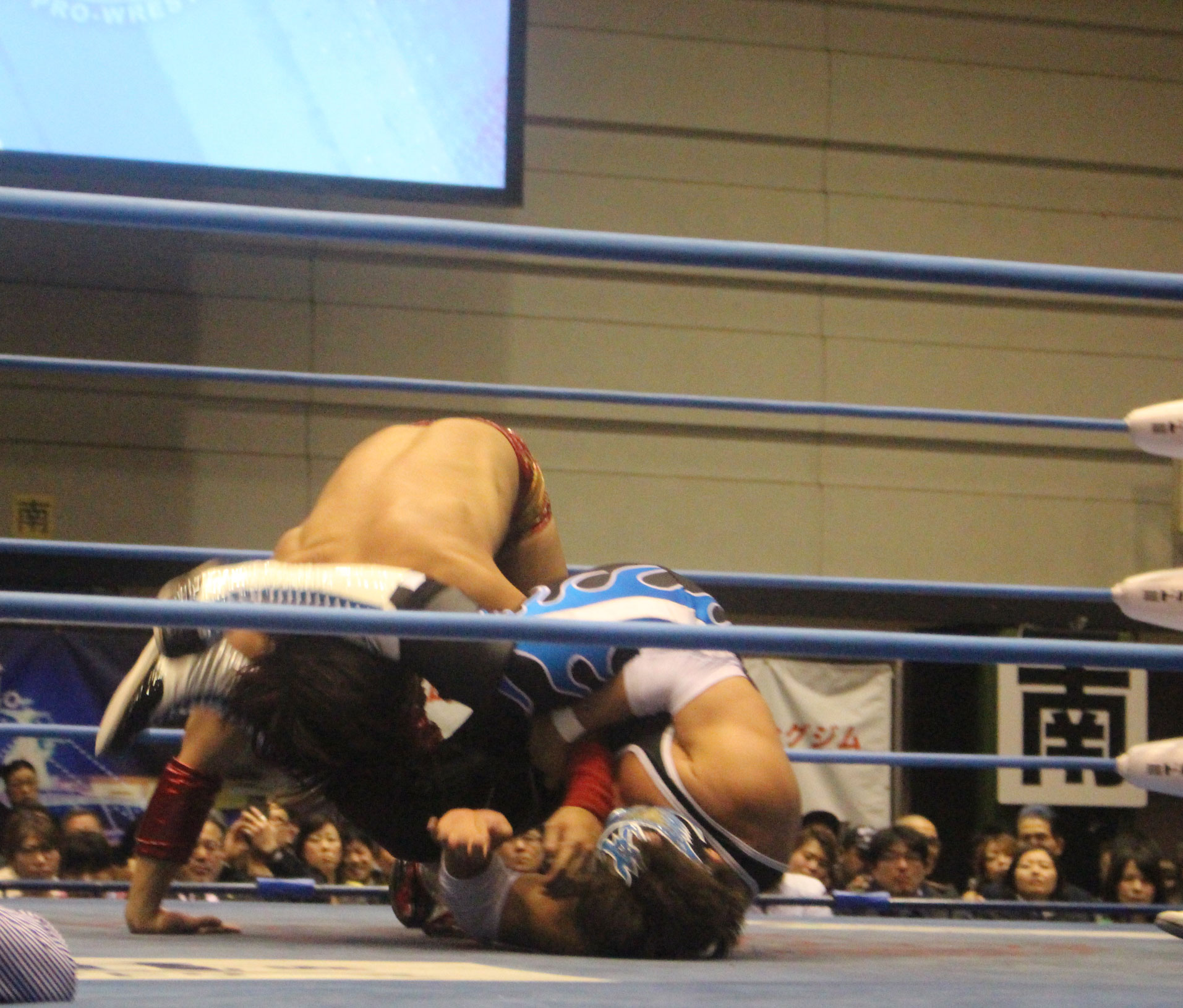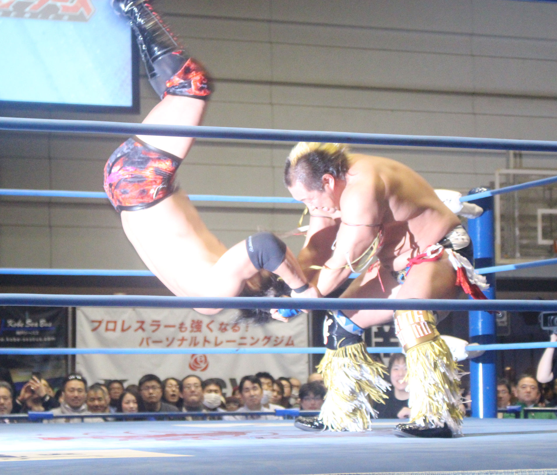 圧倒する近藤はKUBINAGEからランセルセを狙うが、岩本はニーアッパーで迎撃、近藤も左膝攻めで応戦するが、岩本は起死回生の一本背負いからネックスクリュー、エプロンでの大外刈りと猛反撃する。