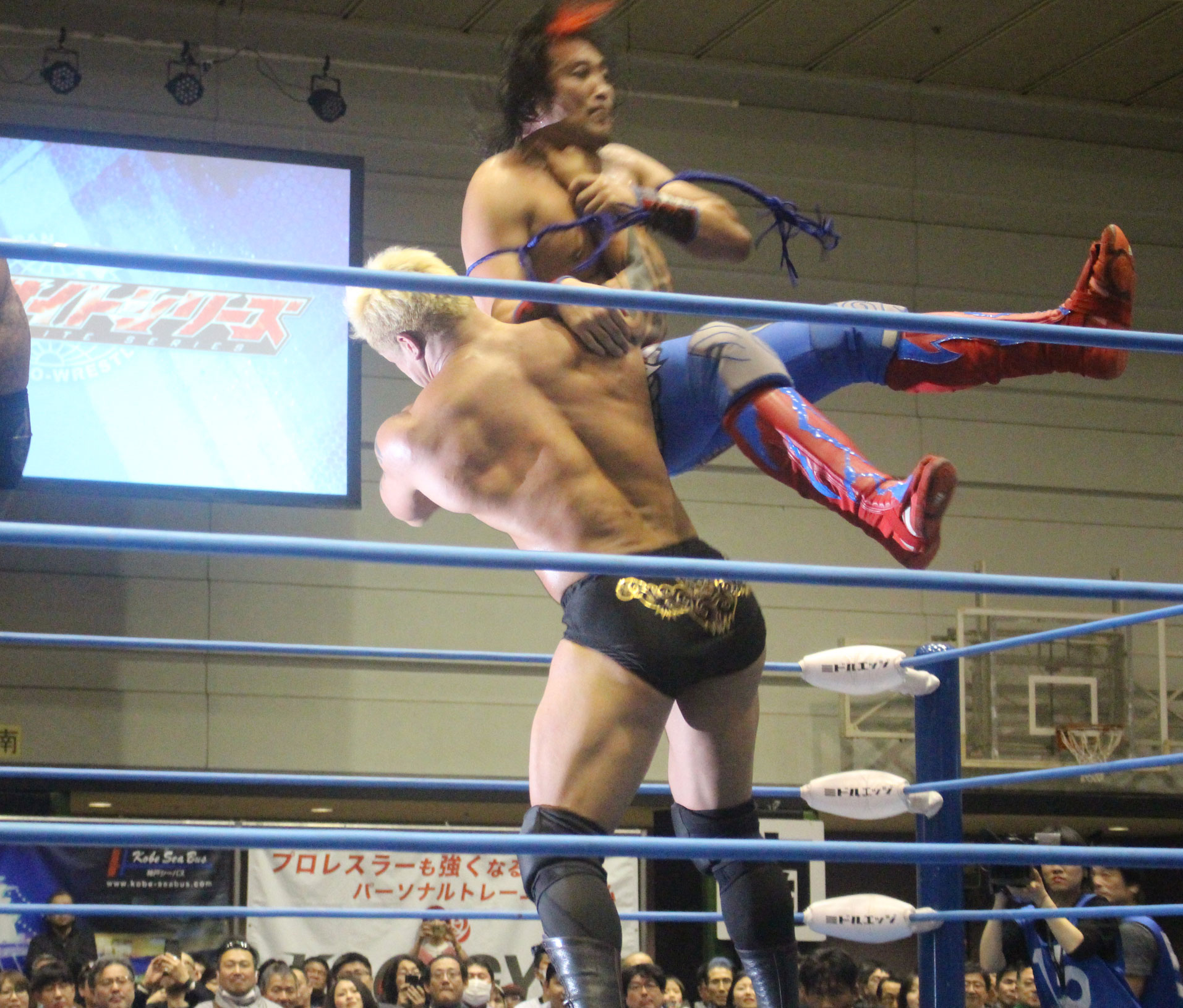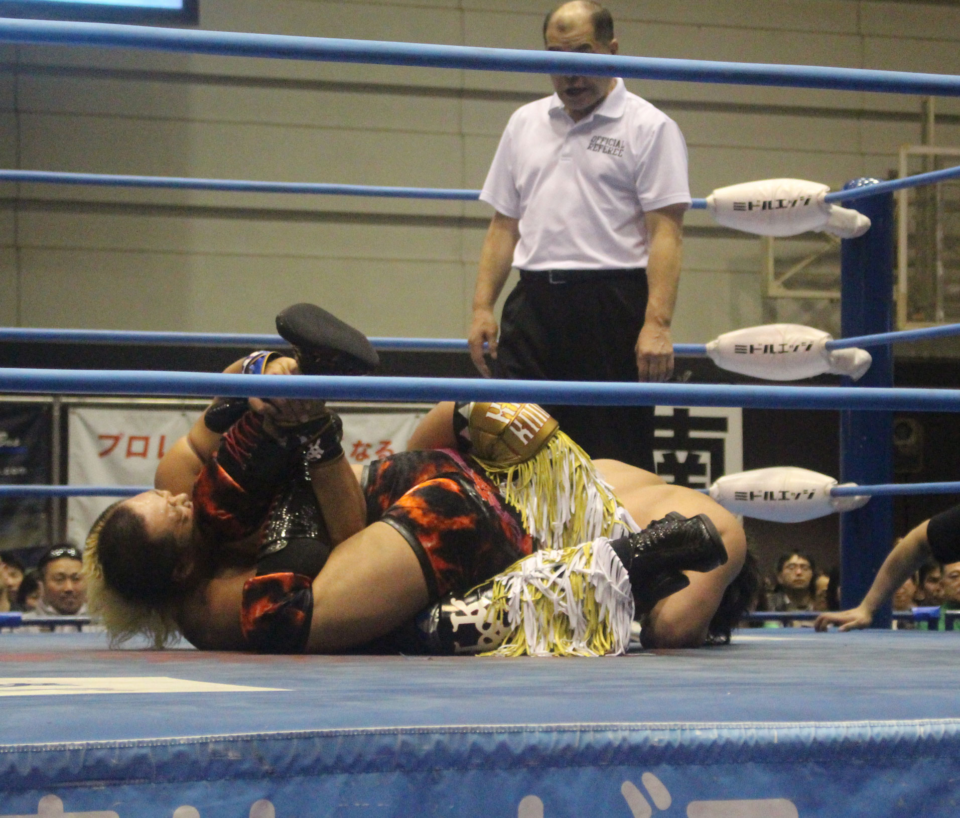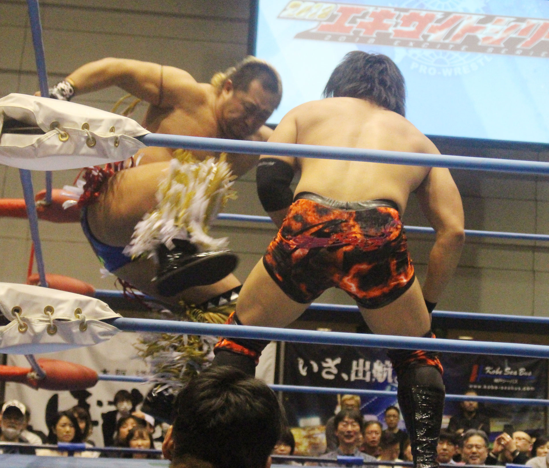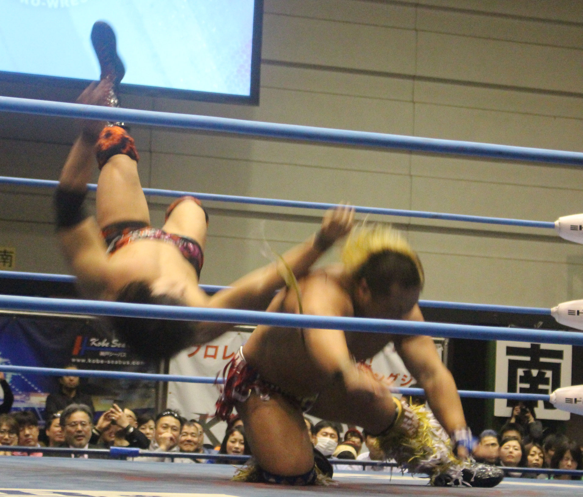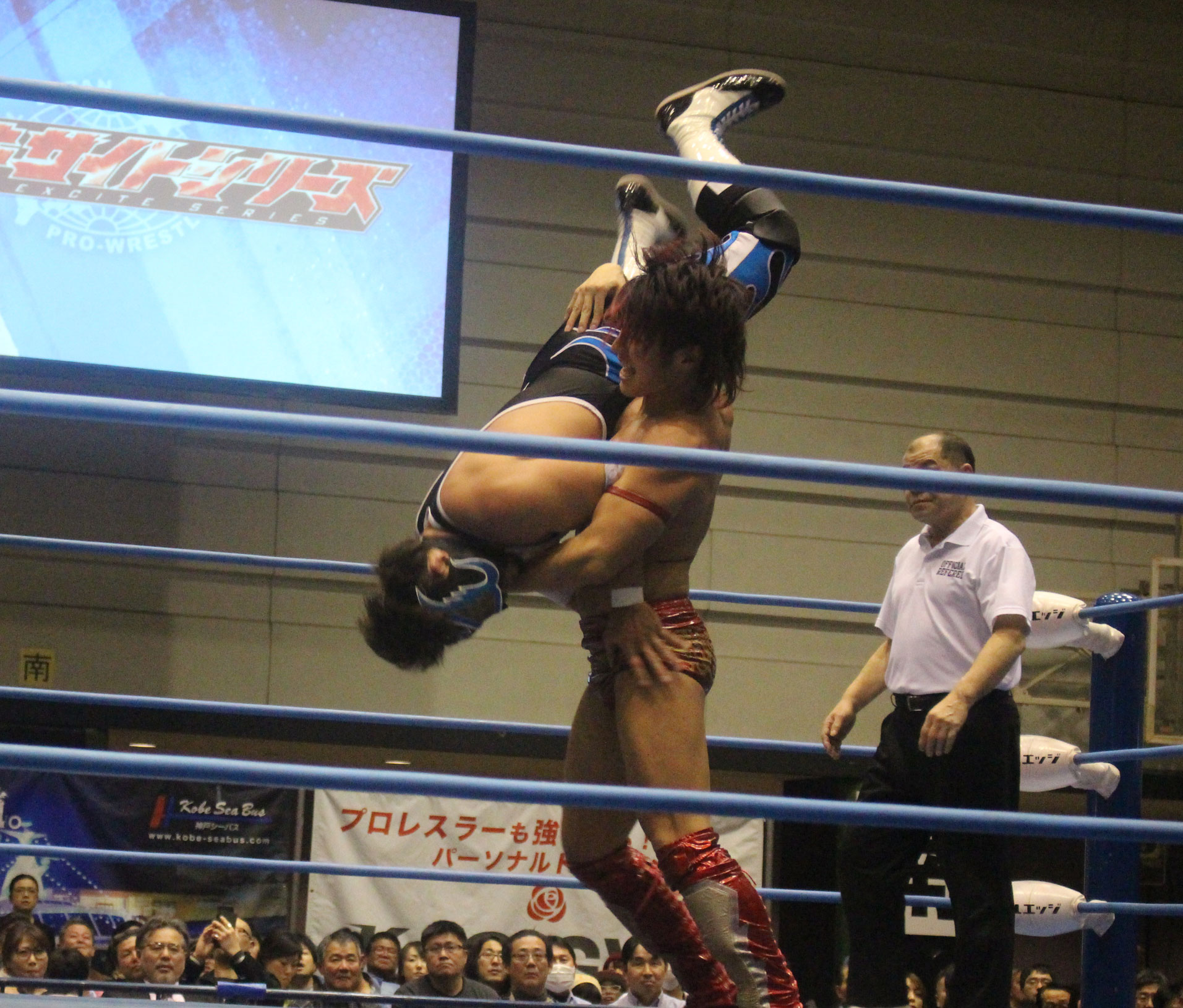 圧倒する近藤はKUBINAGEからランセルセを狙うが、岩本はニーアッパーで迎撃、近藤も左膝攻めで応戦するが、岩本は起死回生の一本背負いからネックスクリュー、エプロンでの大外刈りと猛反撃する。