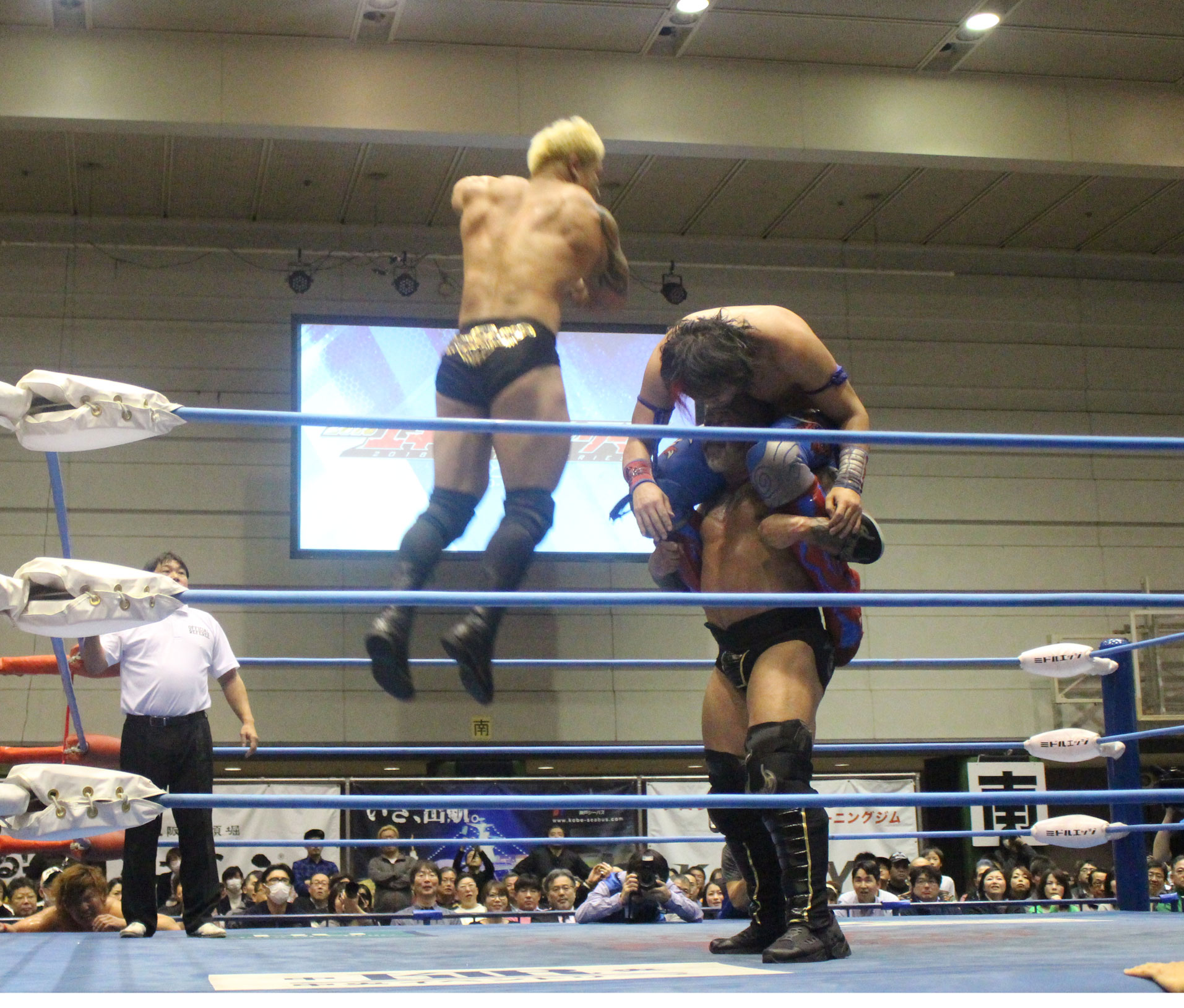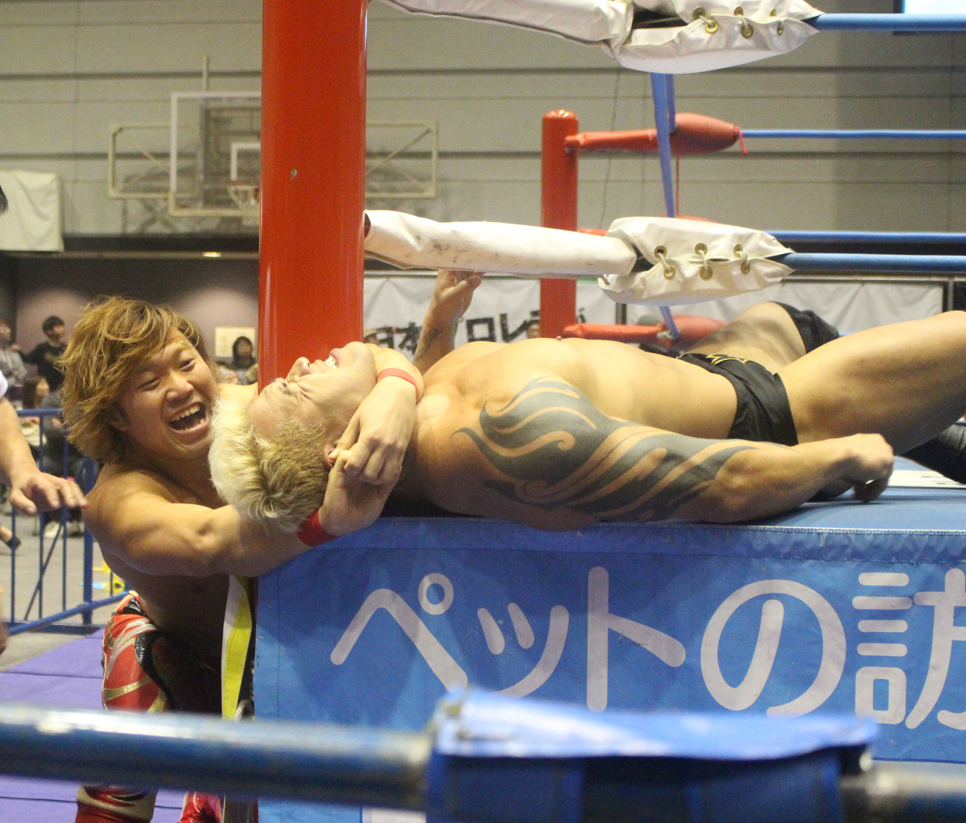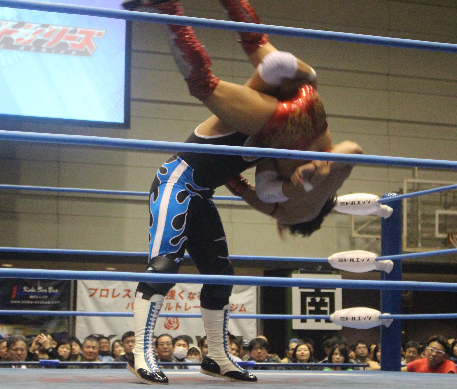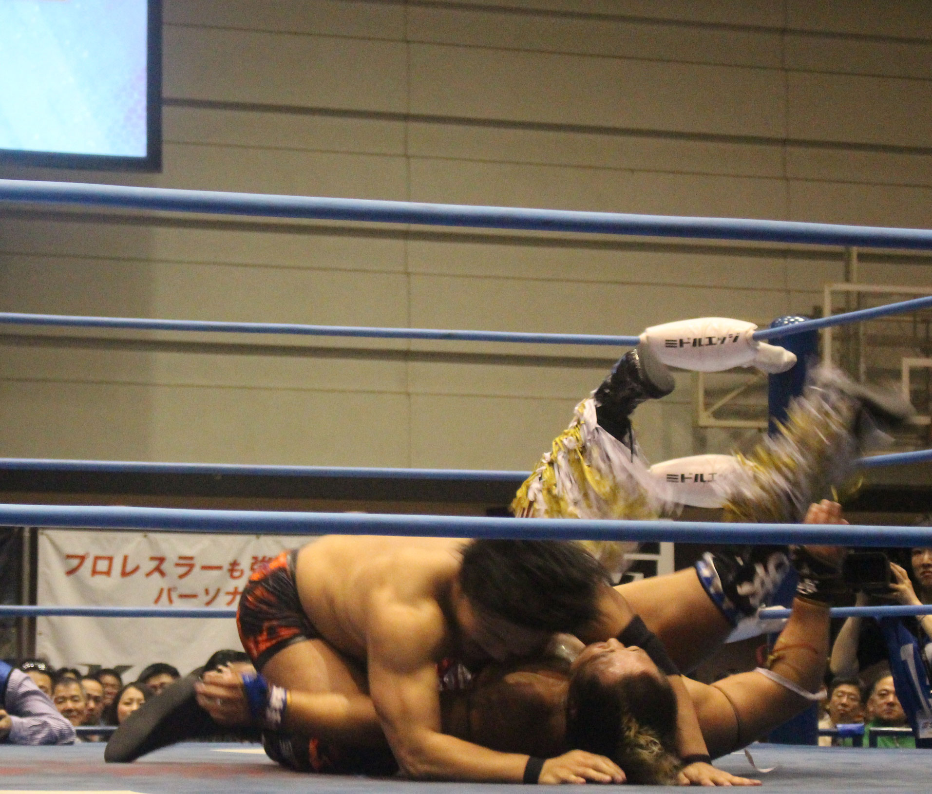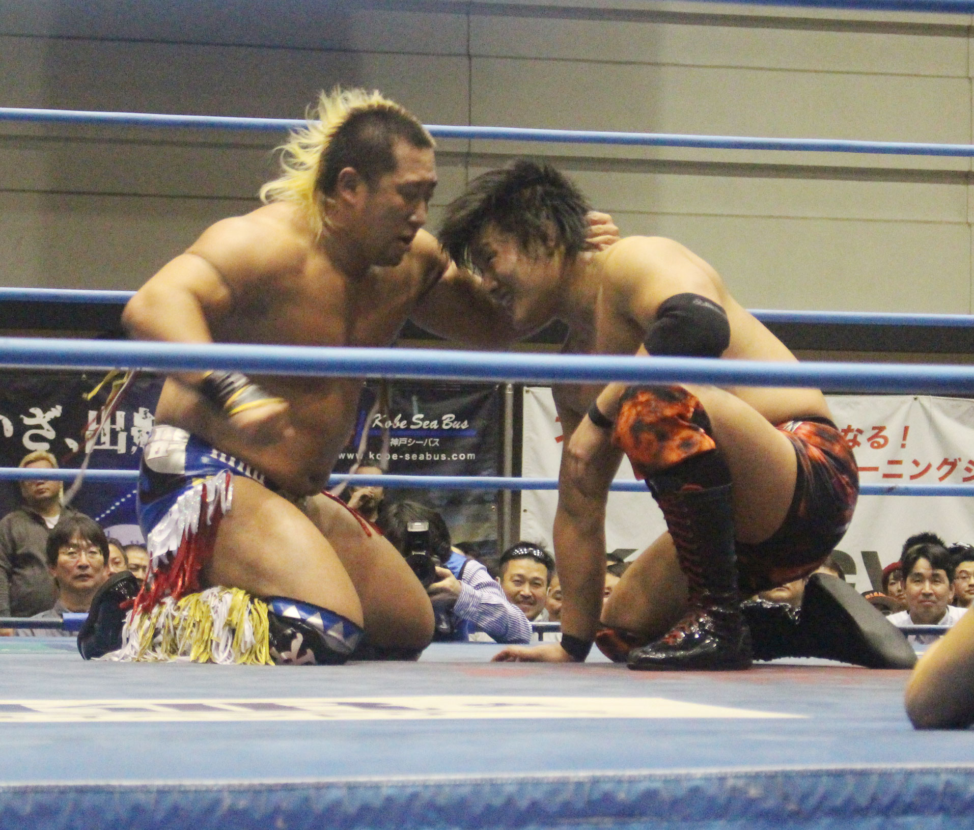 圧倒する近藤はKUBINAGEからランセルセを狙うが、岩本はニーアッパーで迎撃、近藤も左膝攻めで応戦するが、岩本は起死回生の一本背負いからネックスクリュー、エプロンでの大外刈りと猛反撃する。
