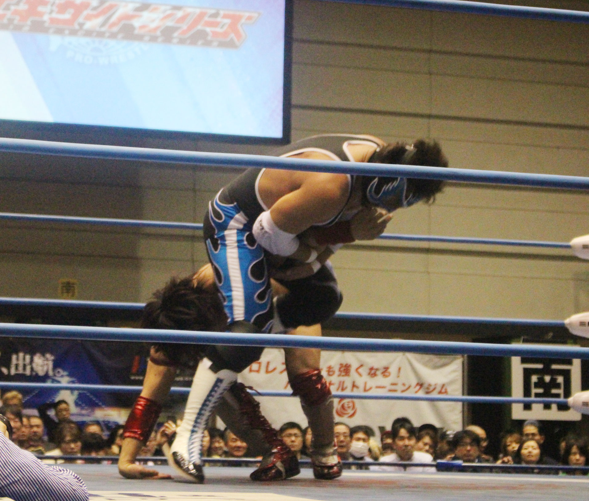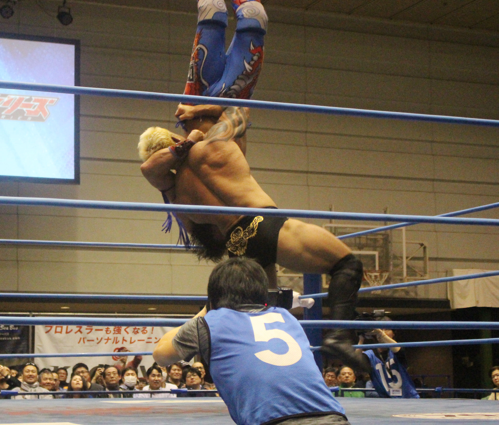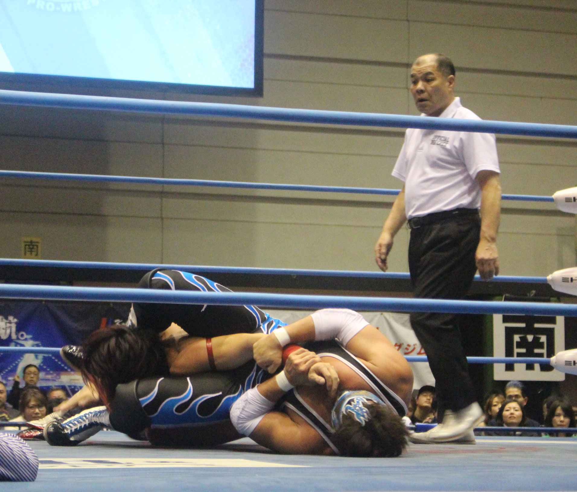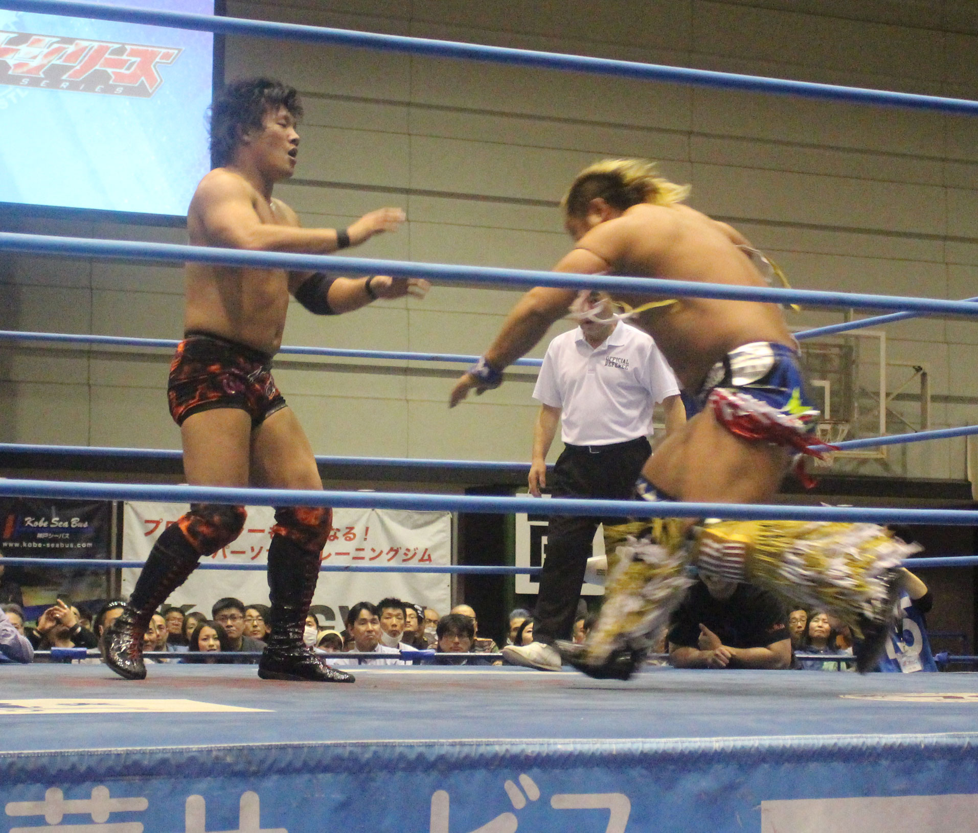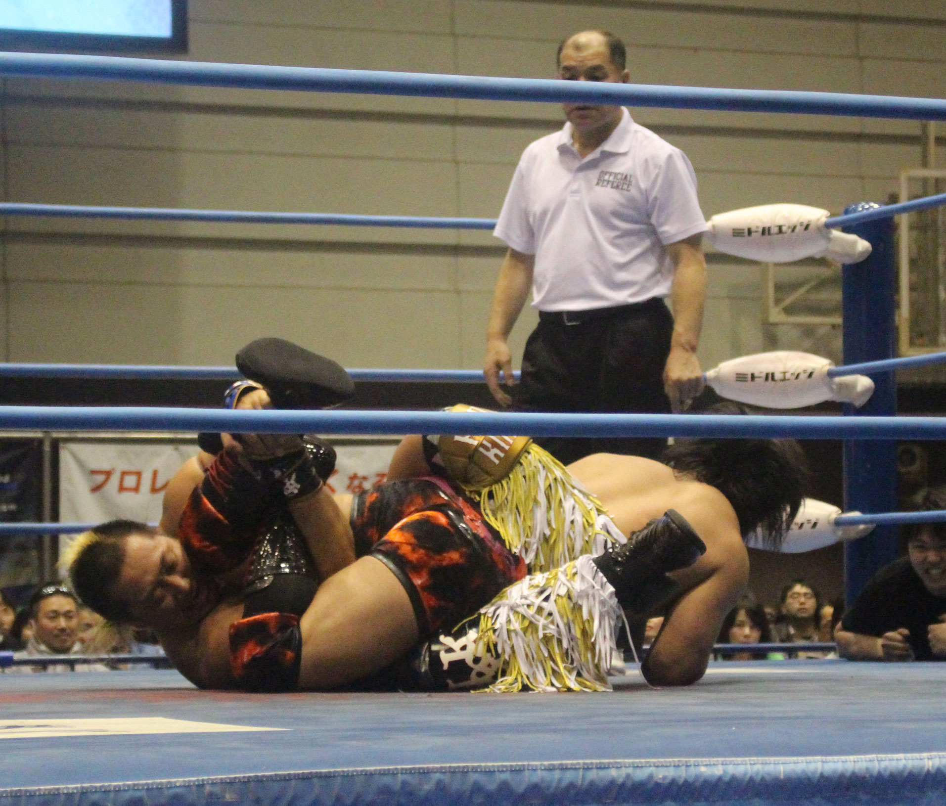 圧倒する近藤はKUBINAGEからランセルセを狙うが、岩本はニーアッパーで迎撃、近藤も左膝攻めで応戦するが、岩本は起死回生の一本背負いからネックスクリュー、エプロンでの大外刈りと猛反撃する。