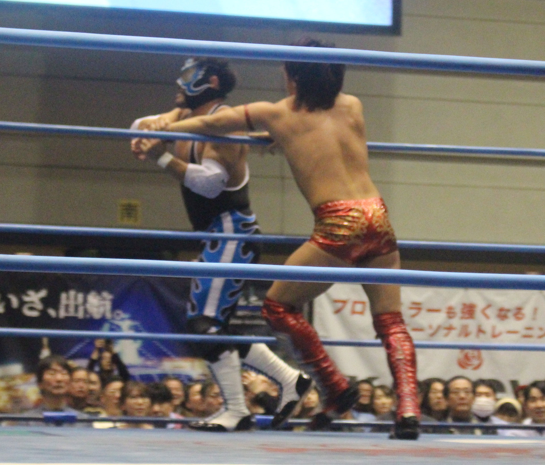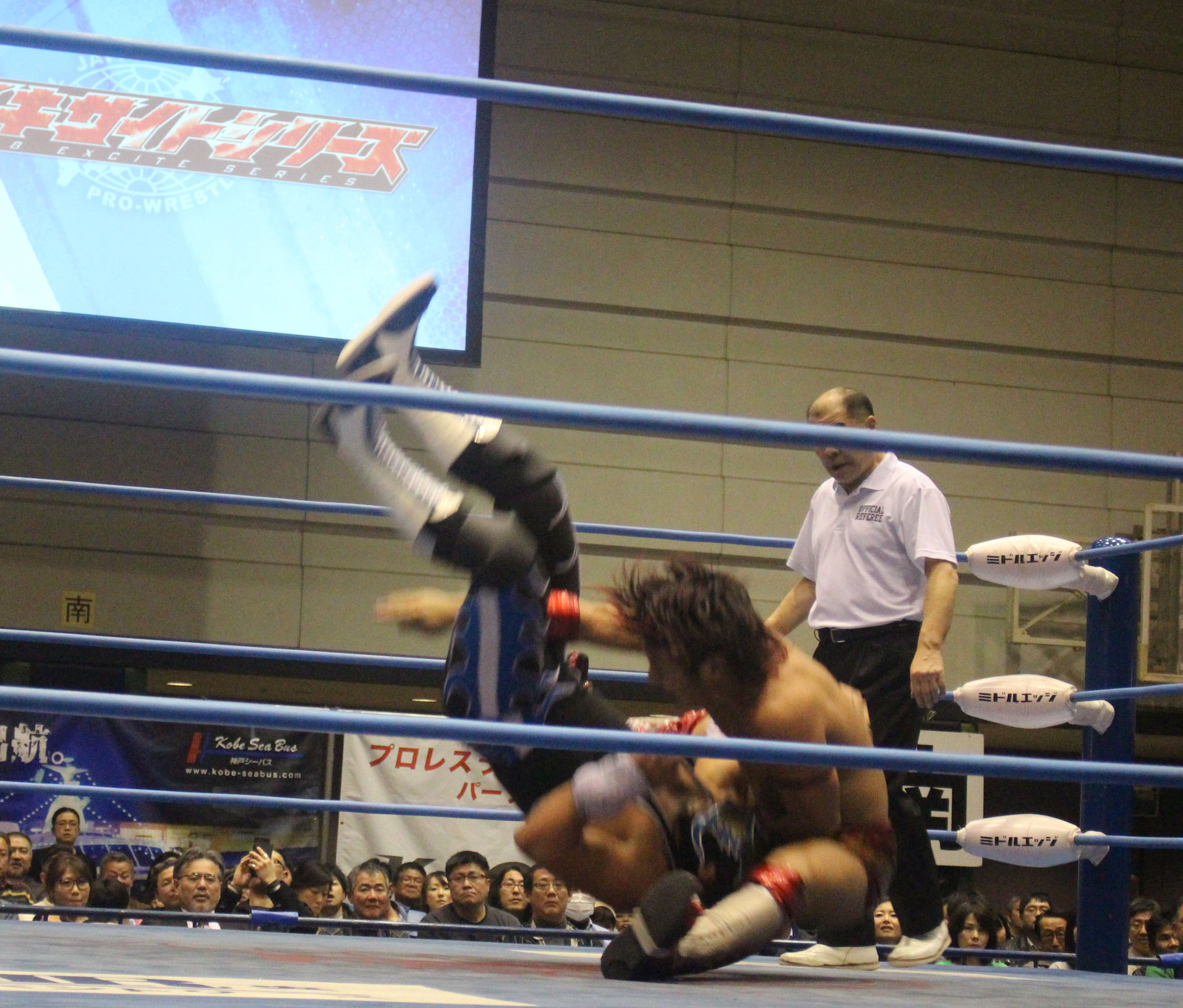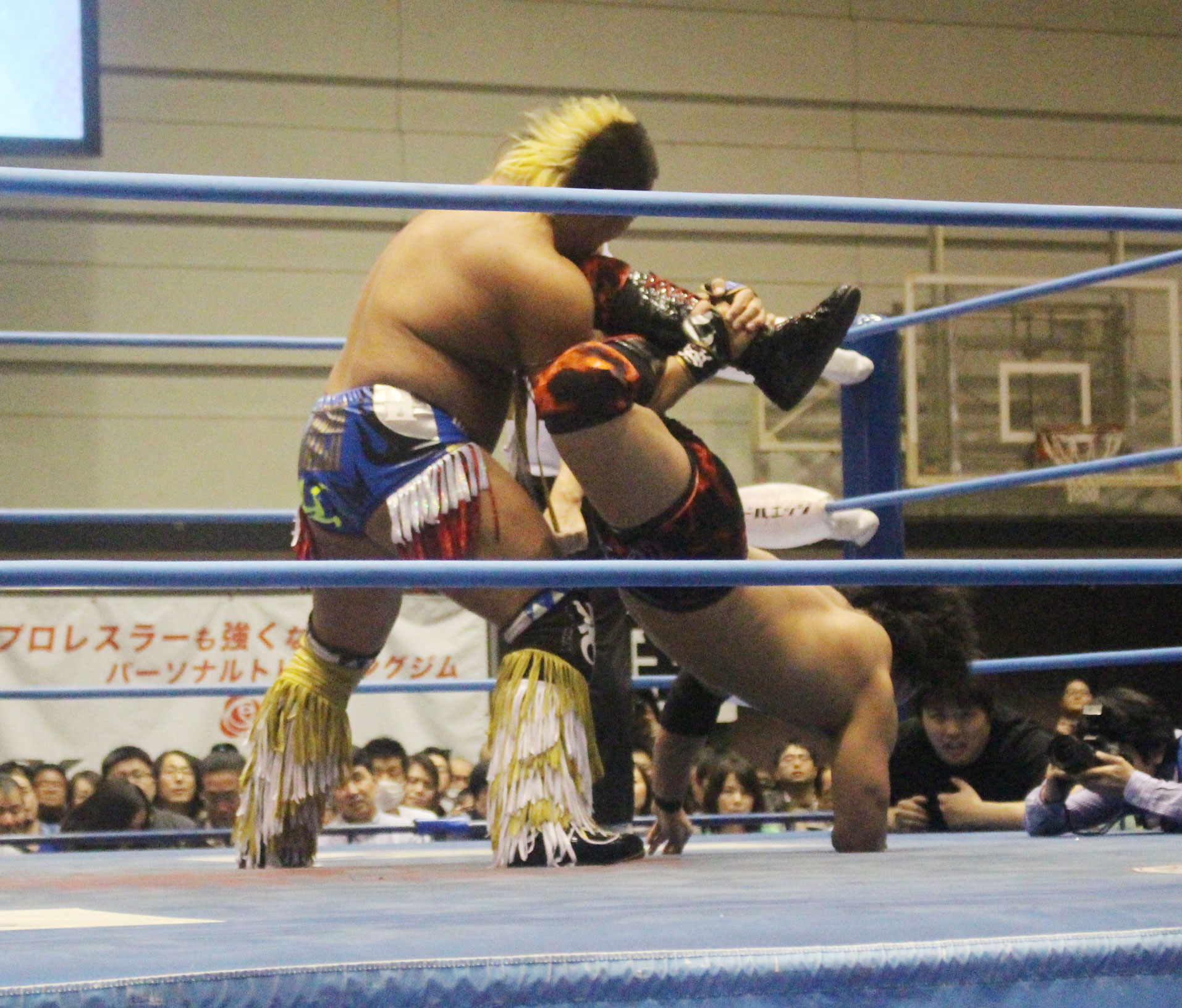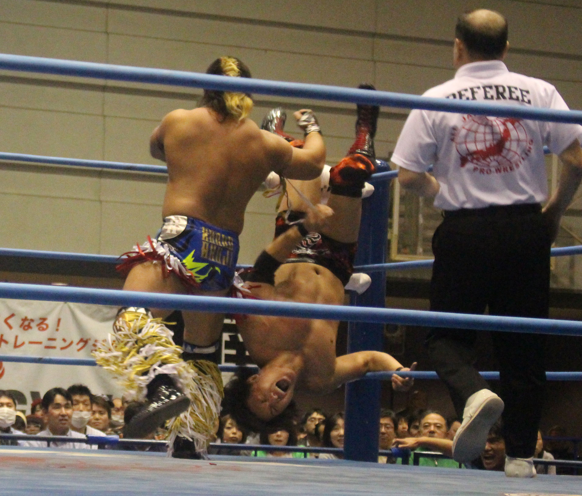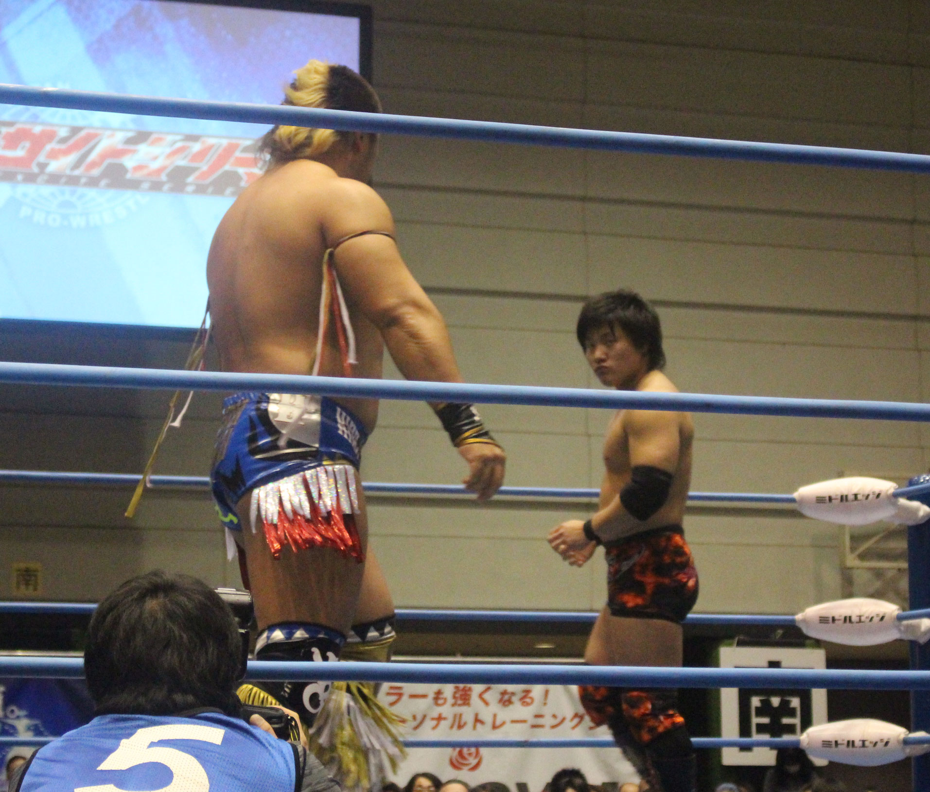 圧倒する近藤はKUBINAGEからランセルセを狙うが、岩本はニーアッパーで迎撃、近藤も左膝攻めで応戦するが、岩本は起死回生の一本背負いからネックスクリュー、エプロンでの大外刈りと猛反撃する。