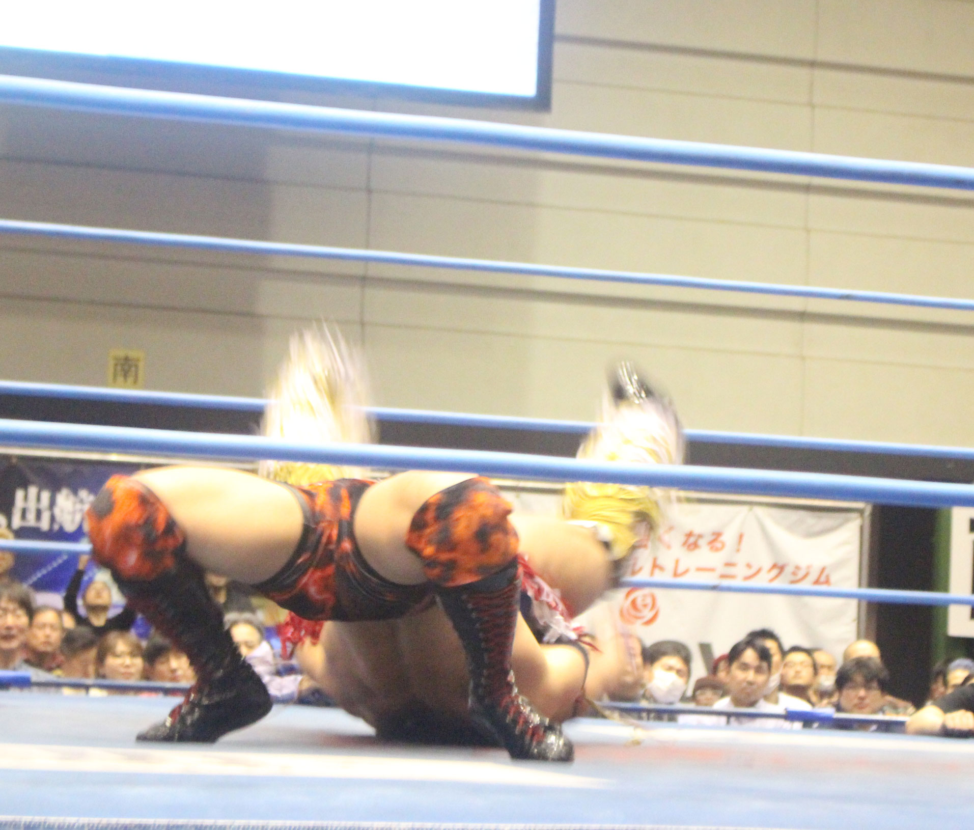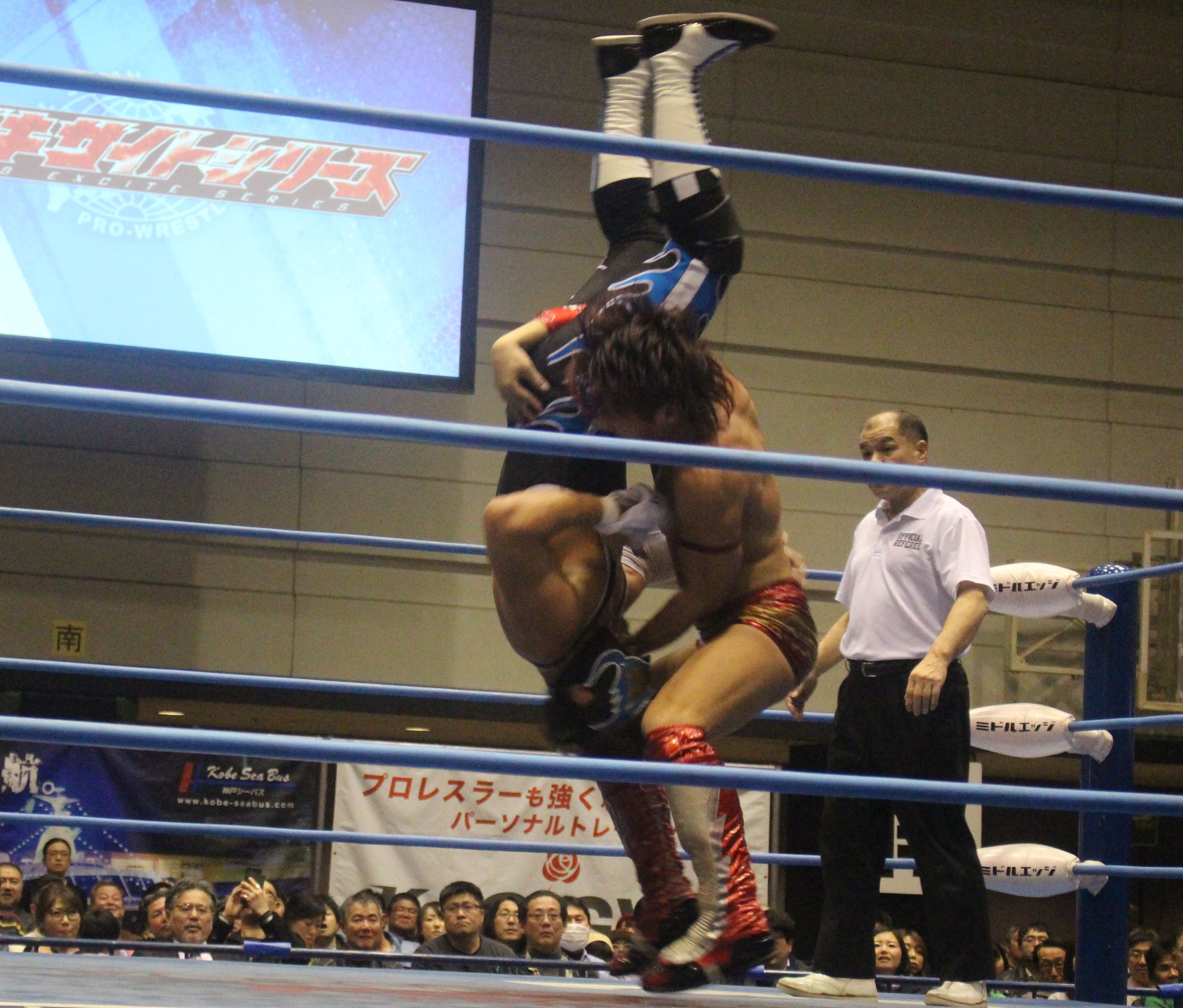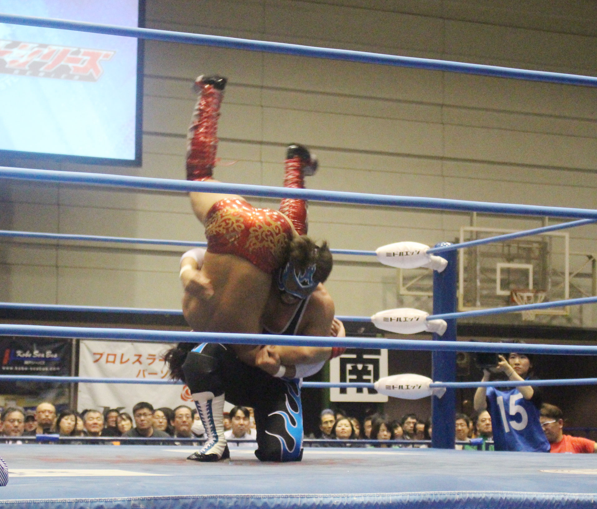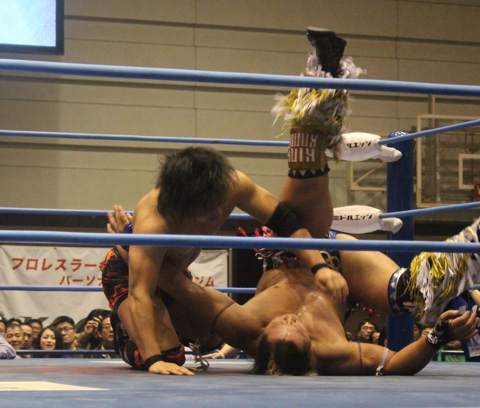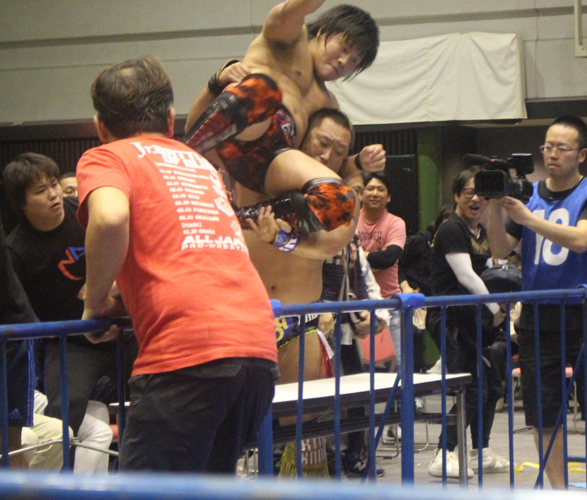 圧倒する近藤はKUBINAGEからランセルセを狙うが、岩本はニーアッパーで迎撃、近藤も左膝攻めで応戦するが、岩本は起死回生の一本背負いからネックスクリュー、エプロンでの大外刈りと猛反撃する。