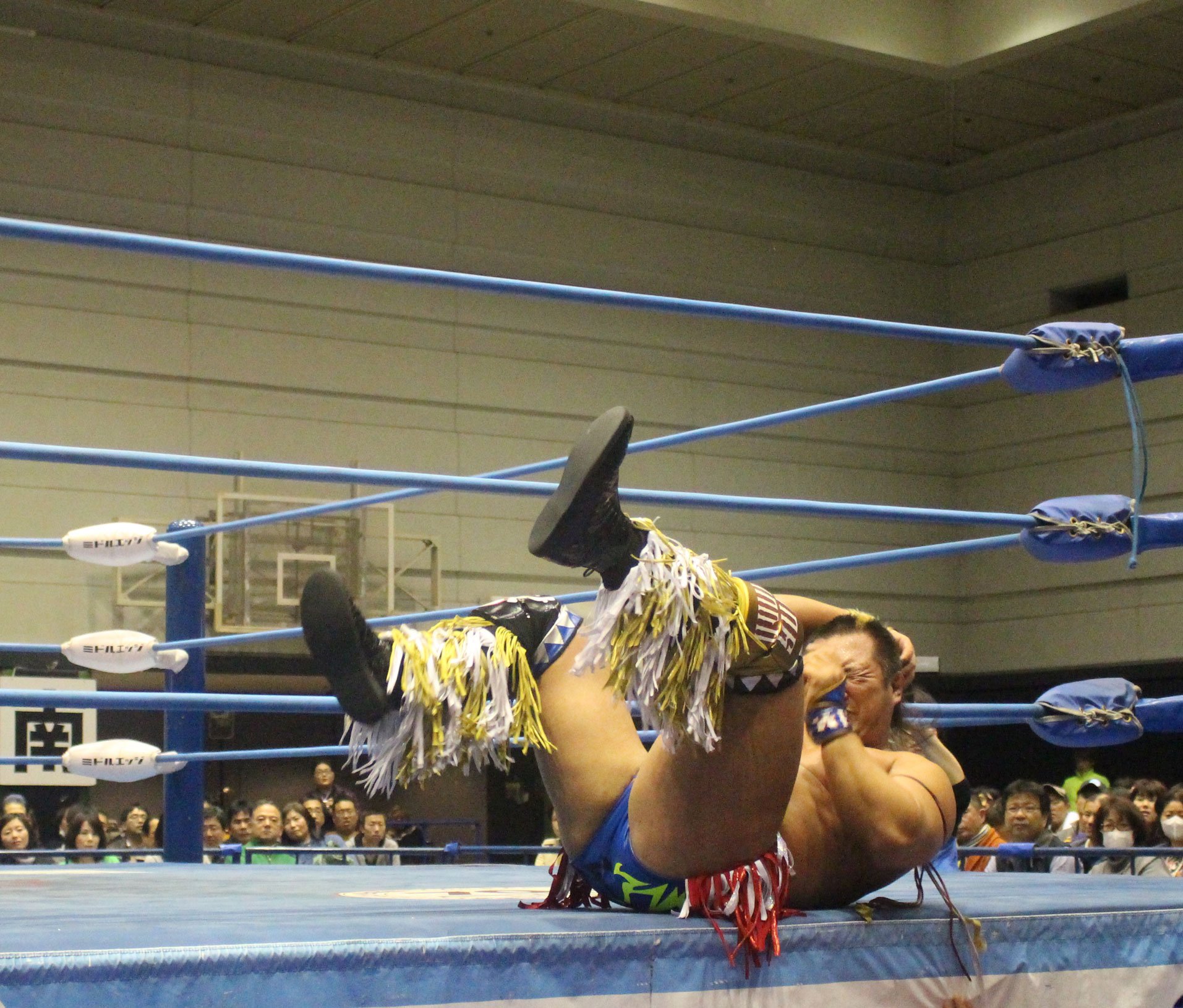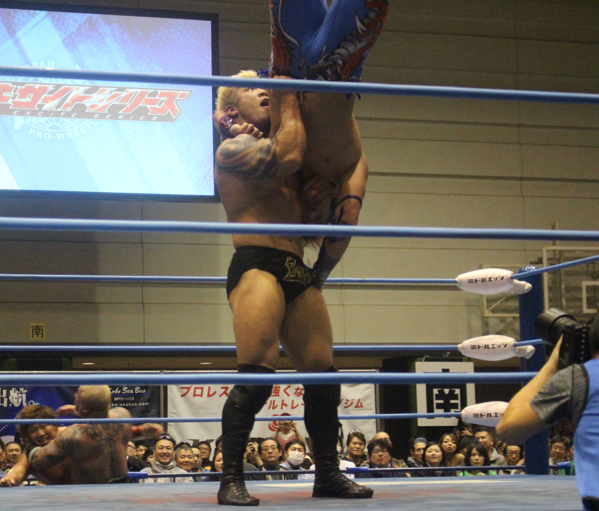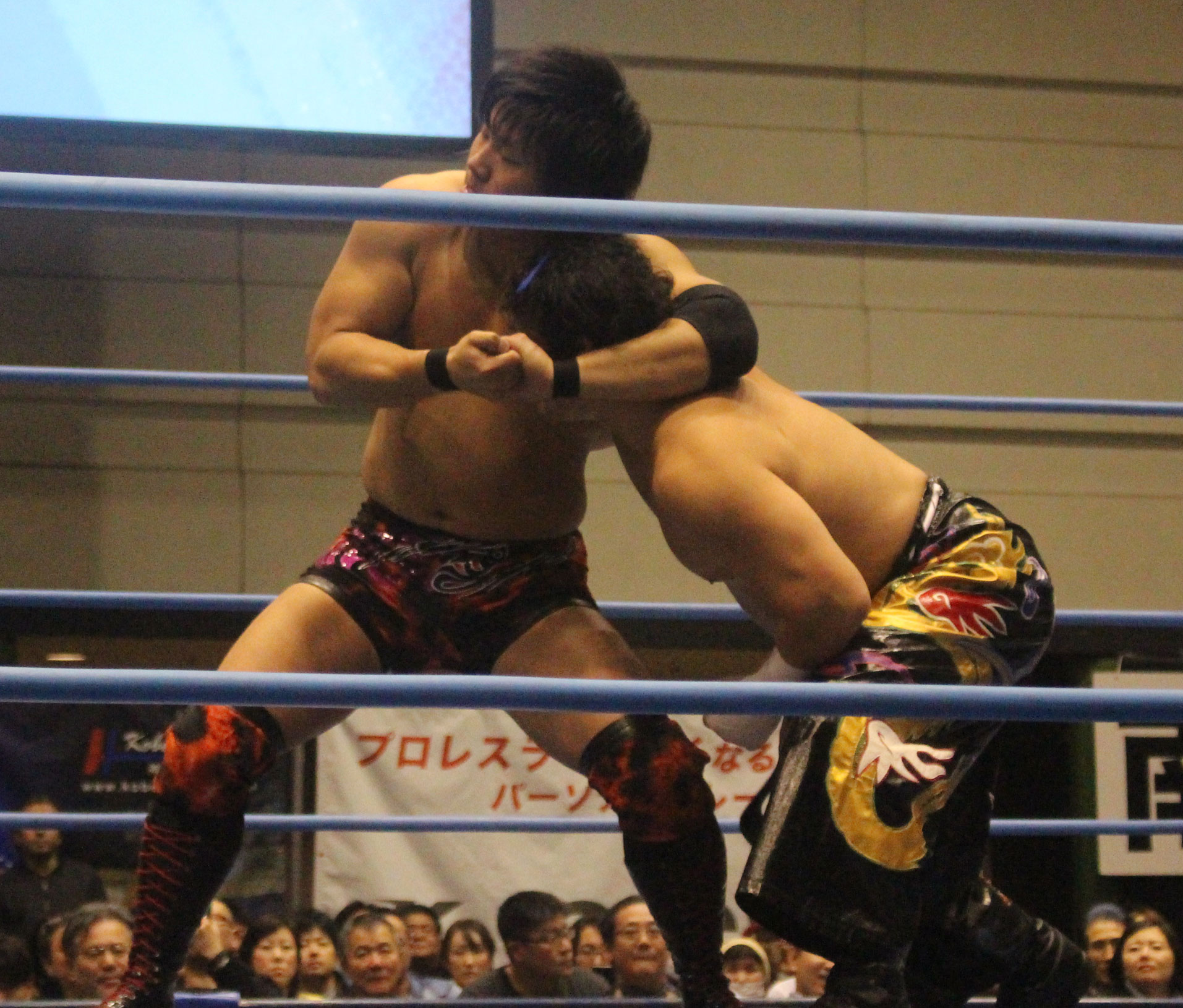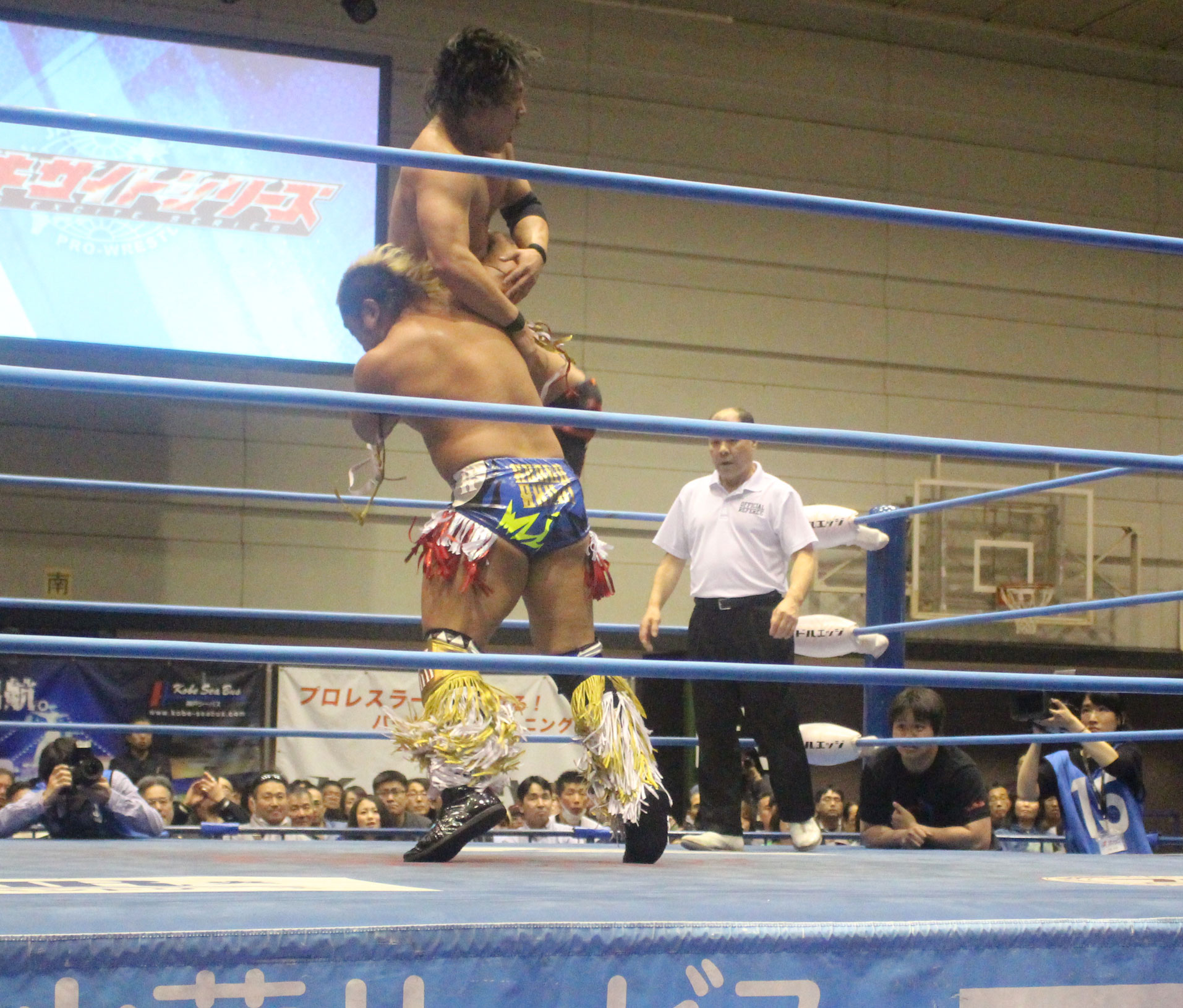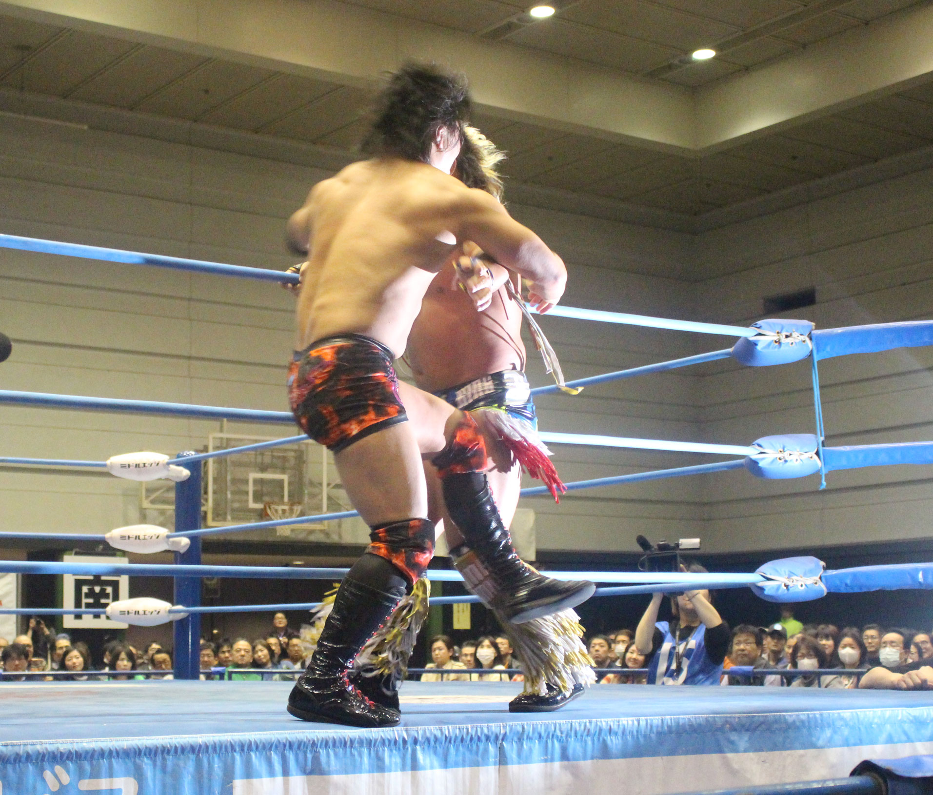 圧倒する近藤はKUBINAGEからランセルセを狙うが、岩本はニーアッパーで迎撃、近藤も左膝攻めで応戦するが、岩本は起死回生の一本背負いからネックスクリュー、エプロンでの大外刈りと猛反撃する。