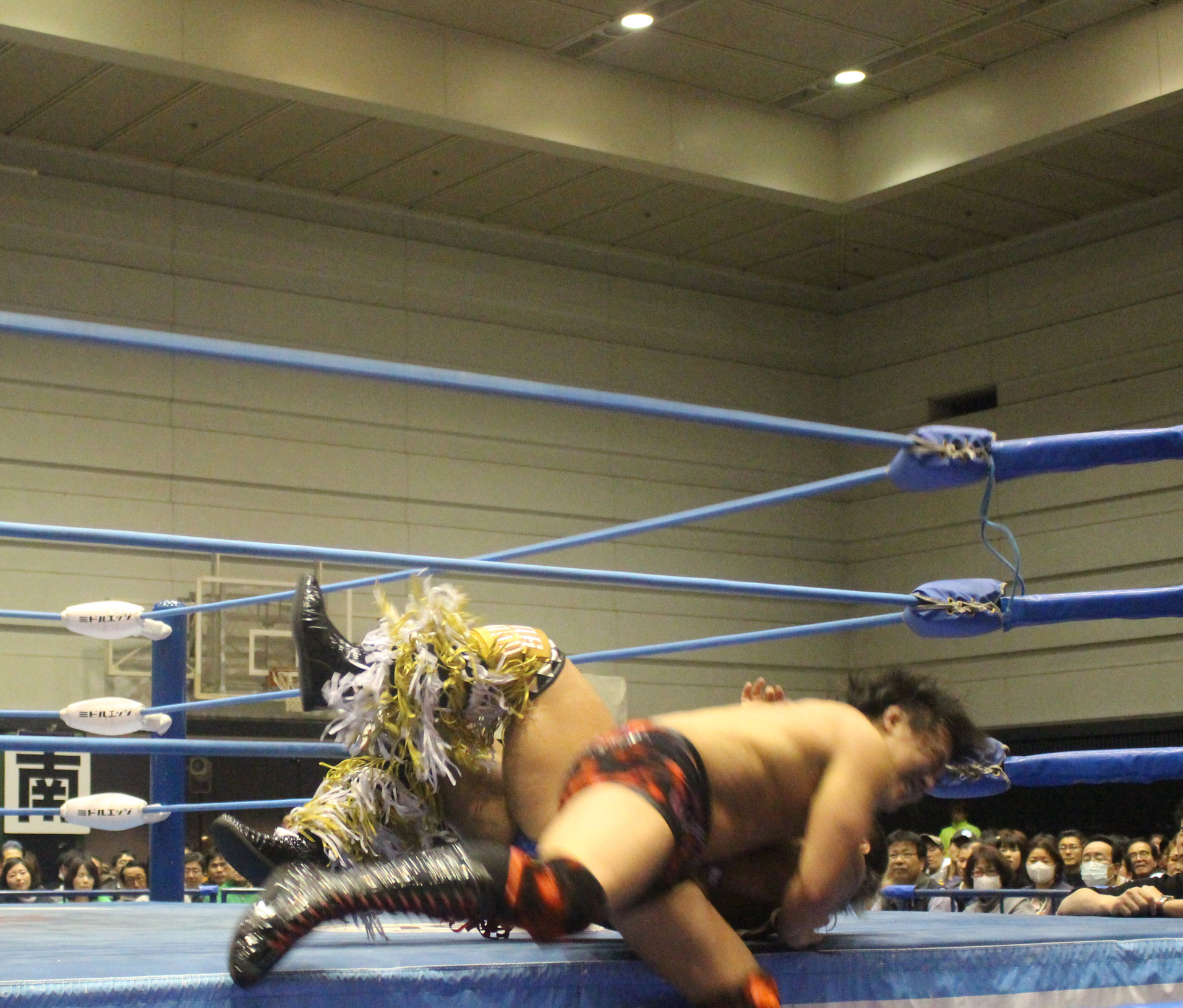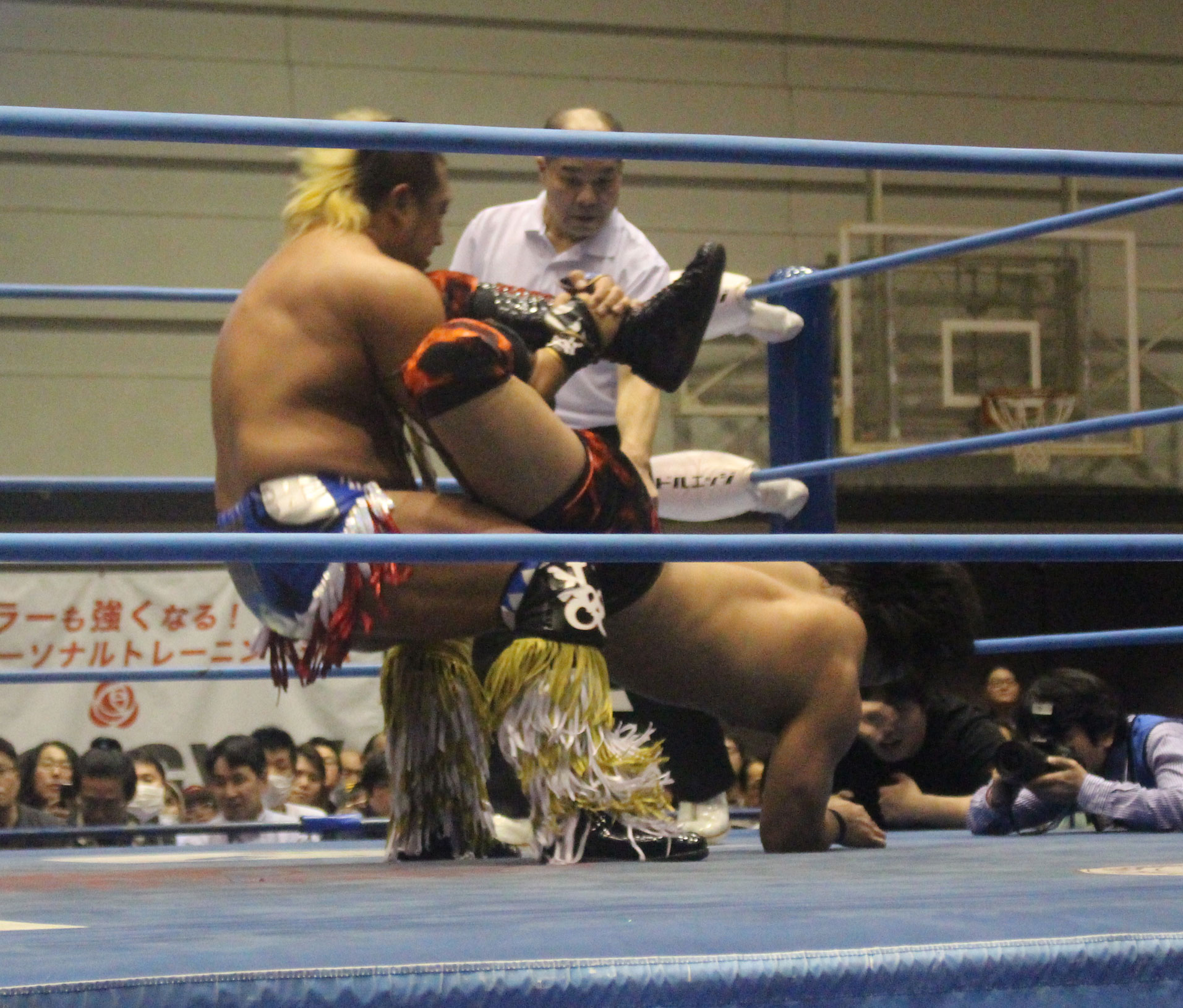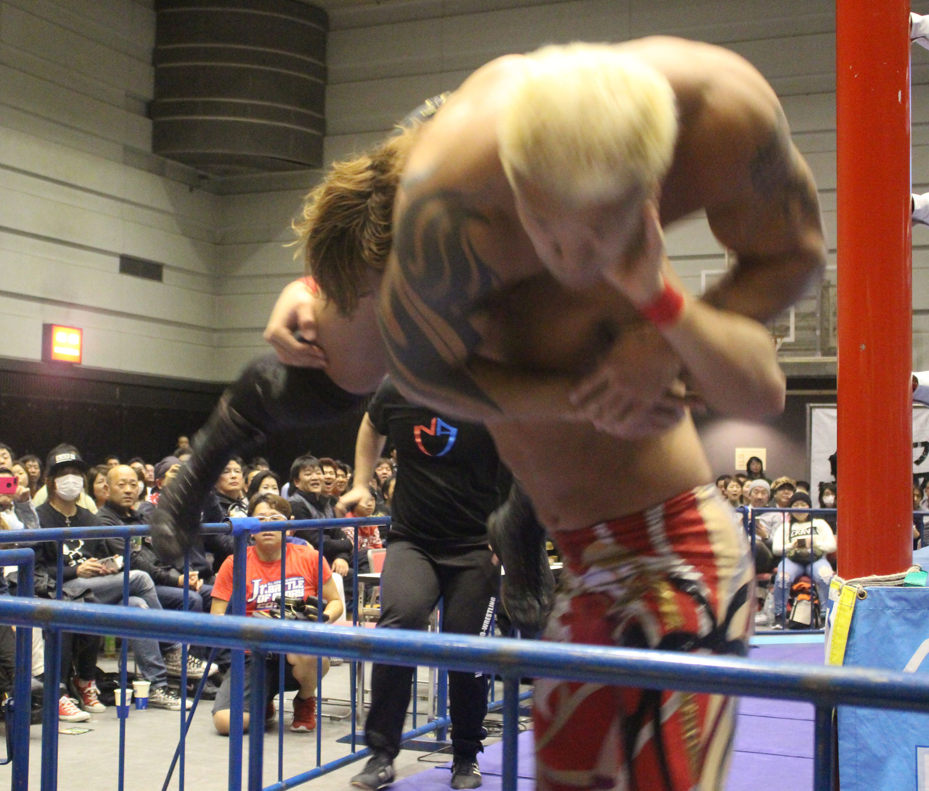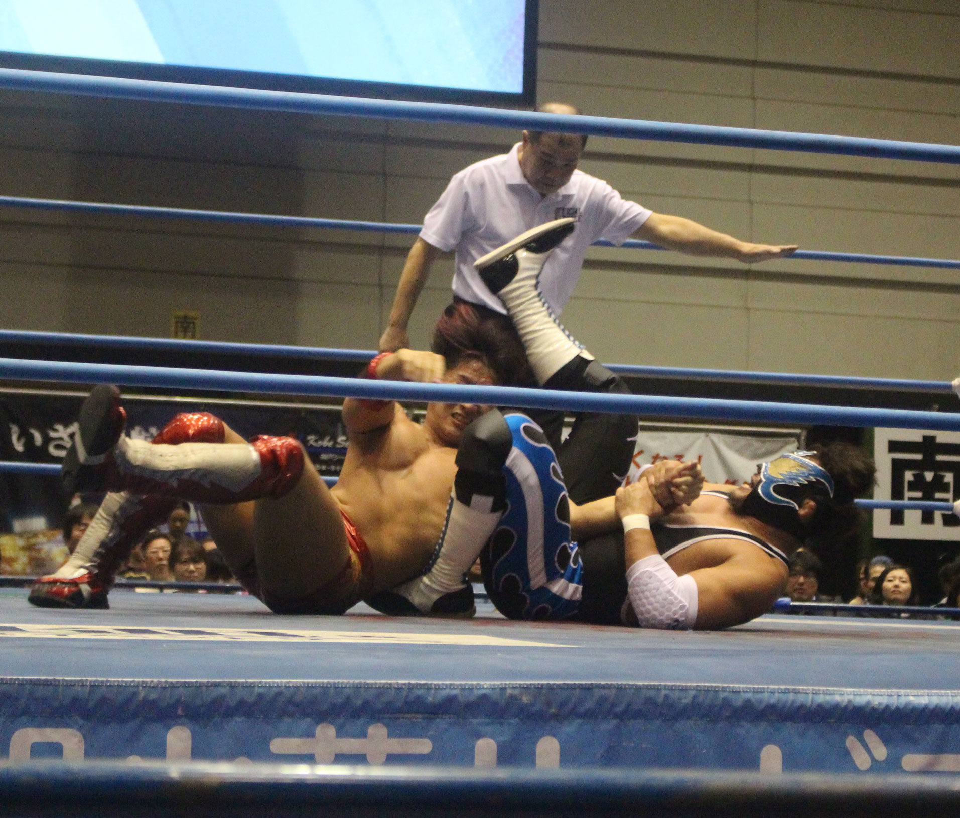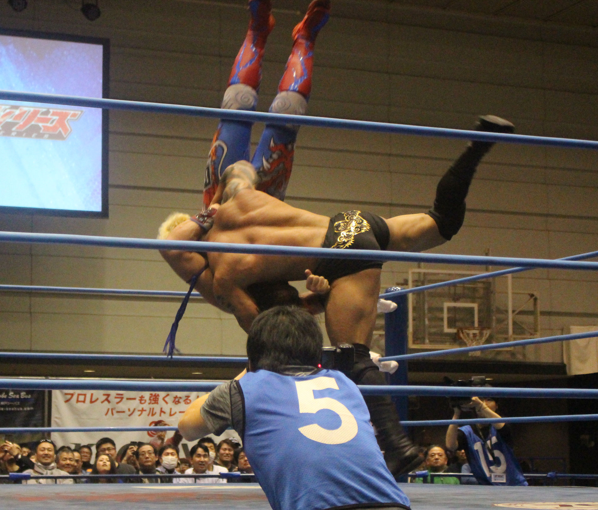 圧倒する近藤はKUBINAGEからランセルセを狙うが、岩本はニーアッパーで迎撃、近藤も左膝攻めで応戦するが、岩本は起死回生の一本背負いからネックスクリュー、エプロンでの大外刈りと猛反撃する。