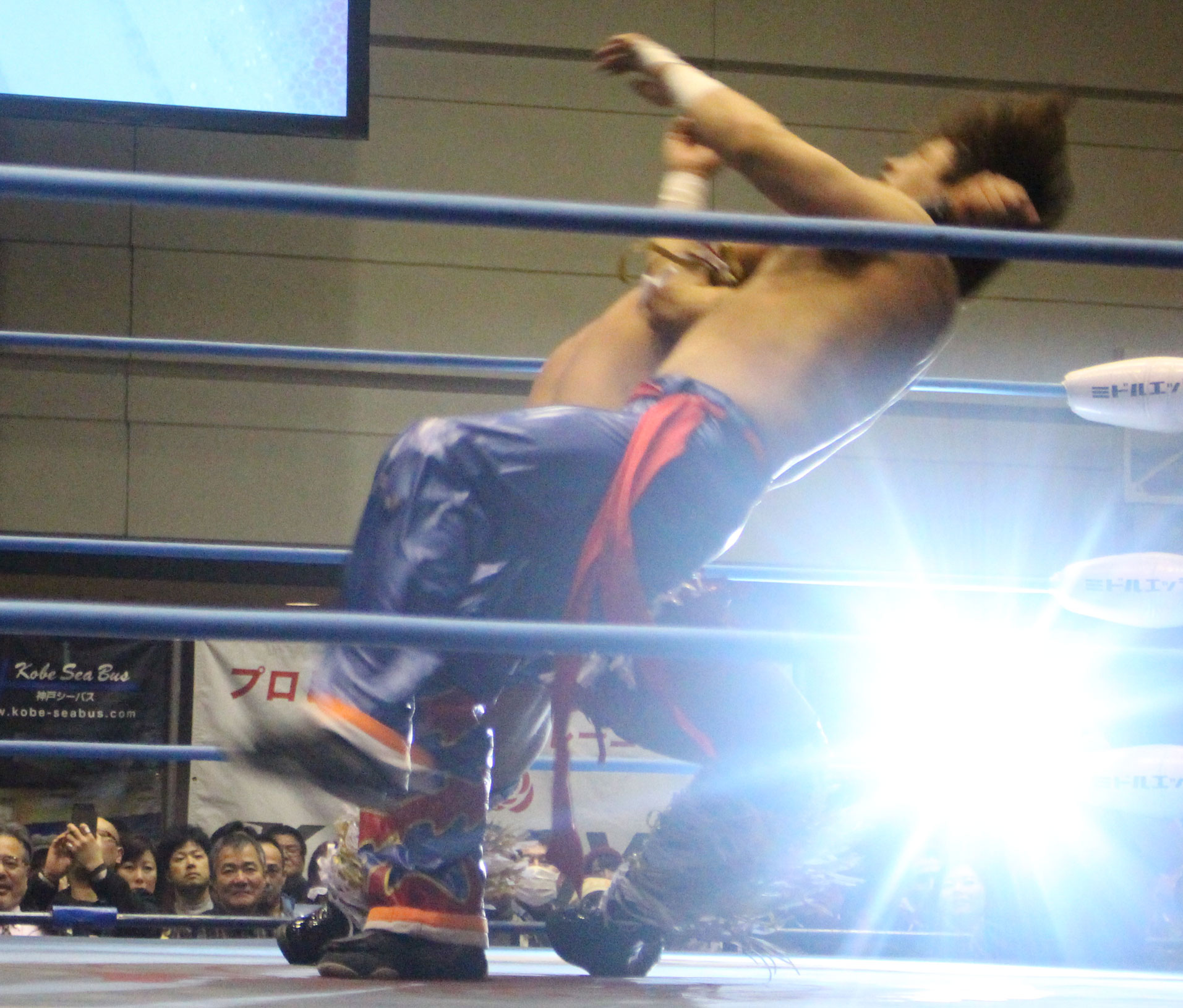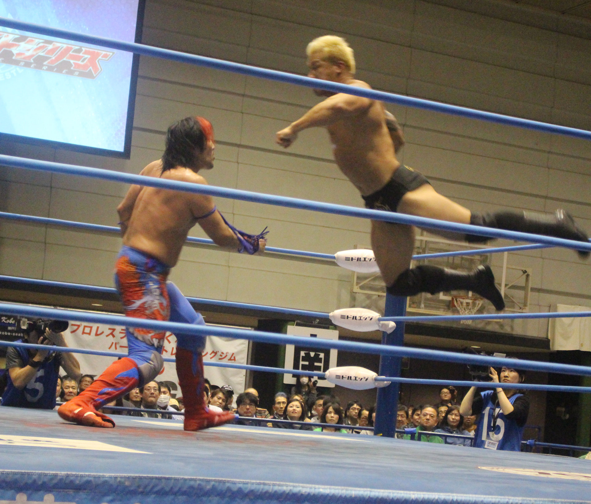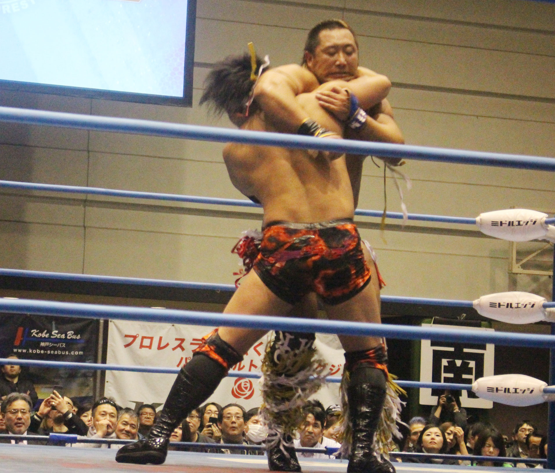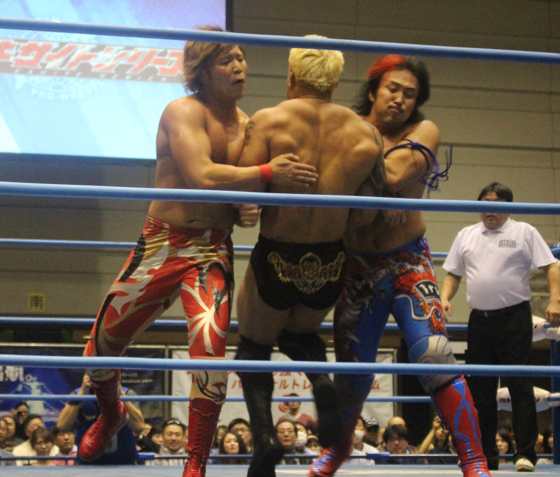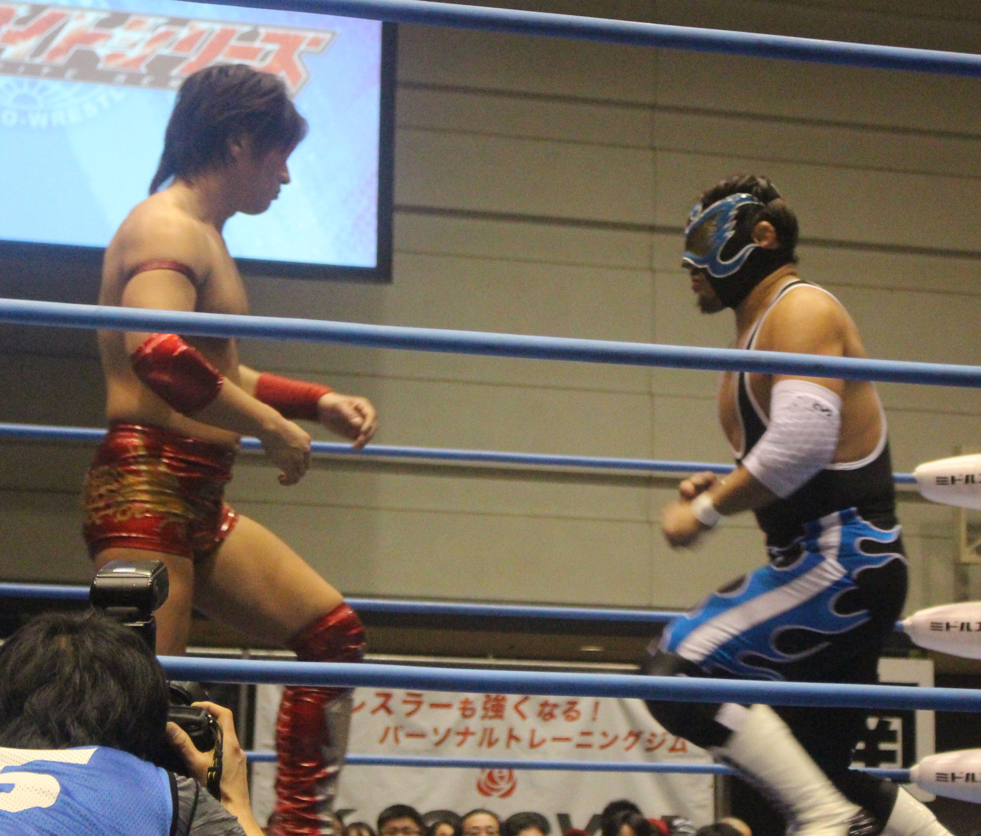 圧倒する近藤はKUBINAGEからランセルセを狙うが、岩本はニーアッパーで迎撃、近藤も左膝攻めで応戦するが、岩本は起死回生の一本背負いからネックスクリュー、エプロンでの大外刈りと猛反撃する。