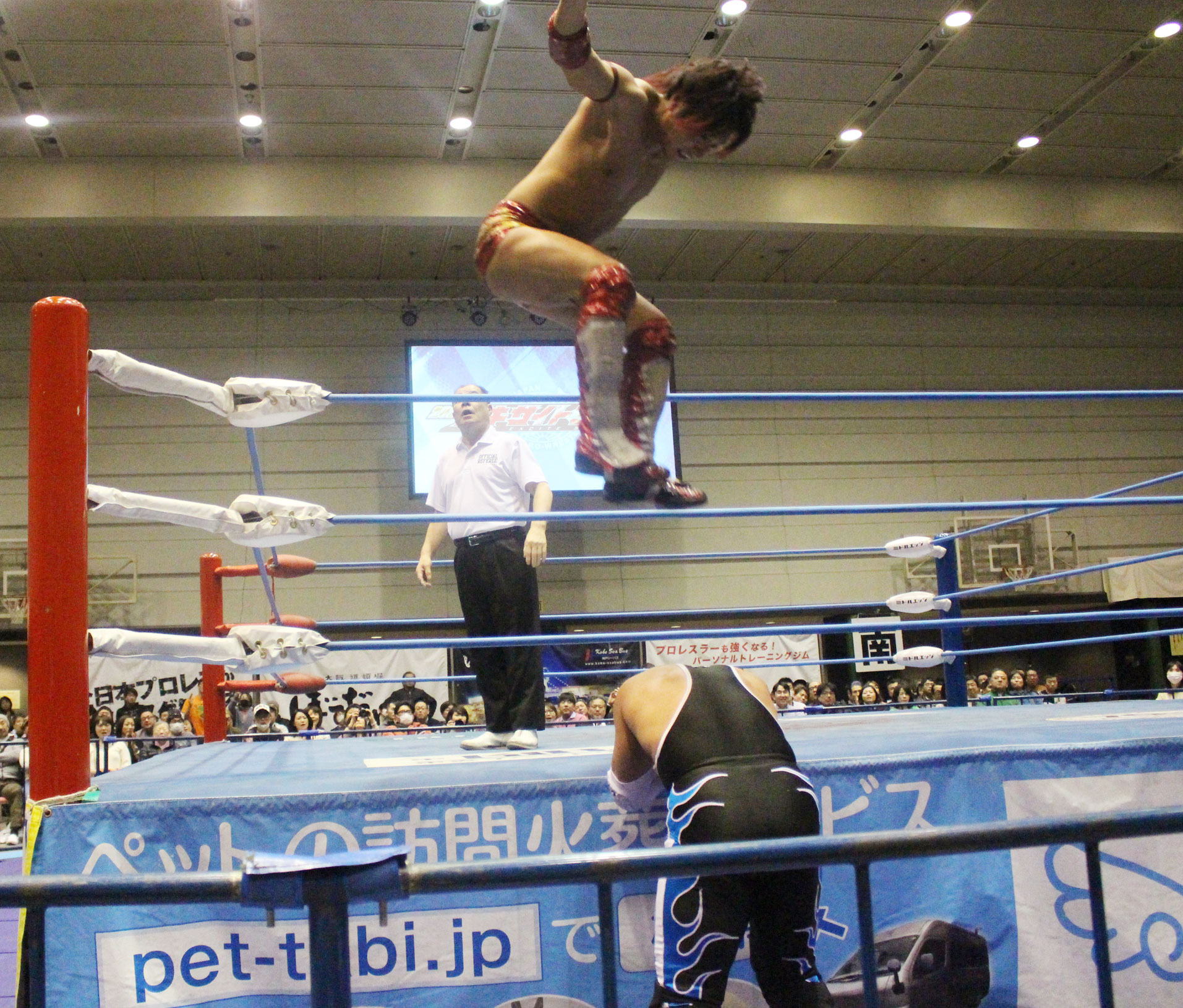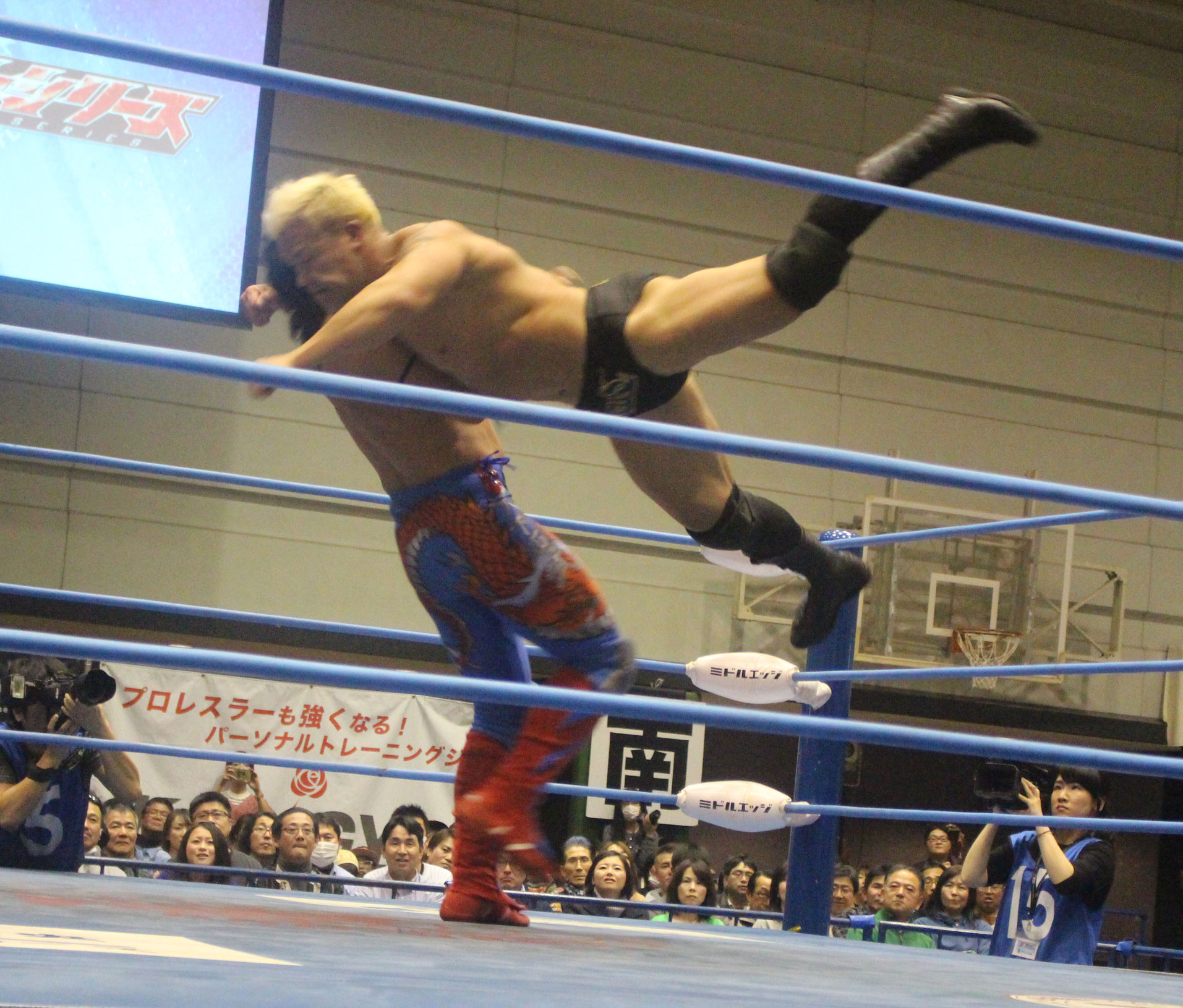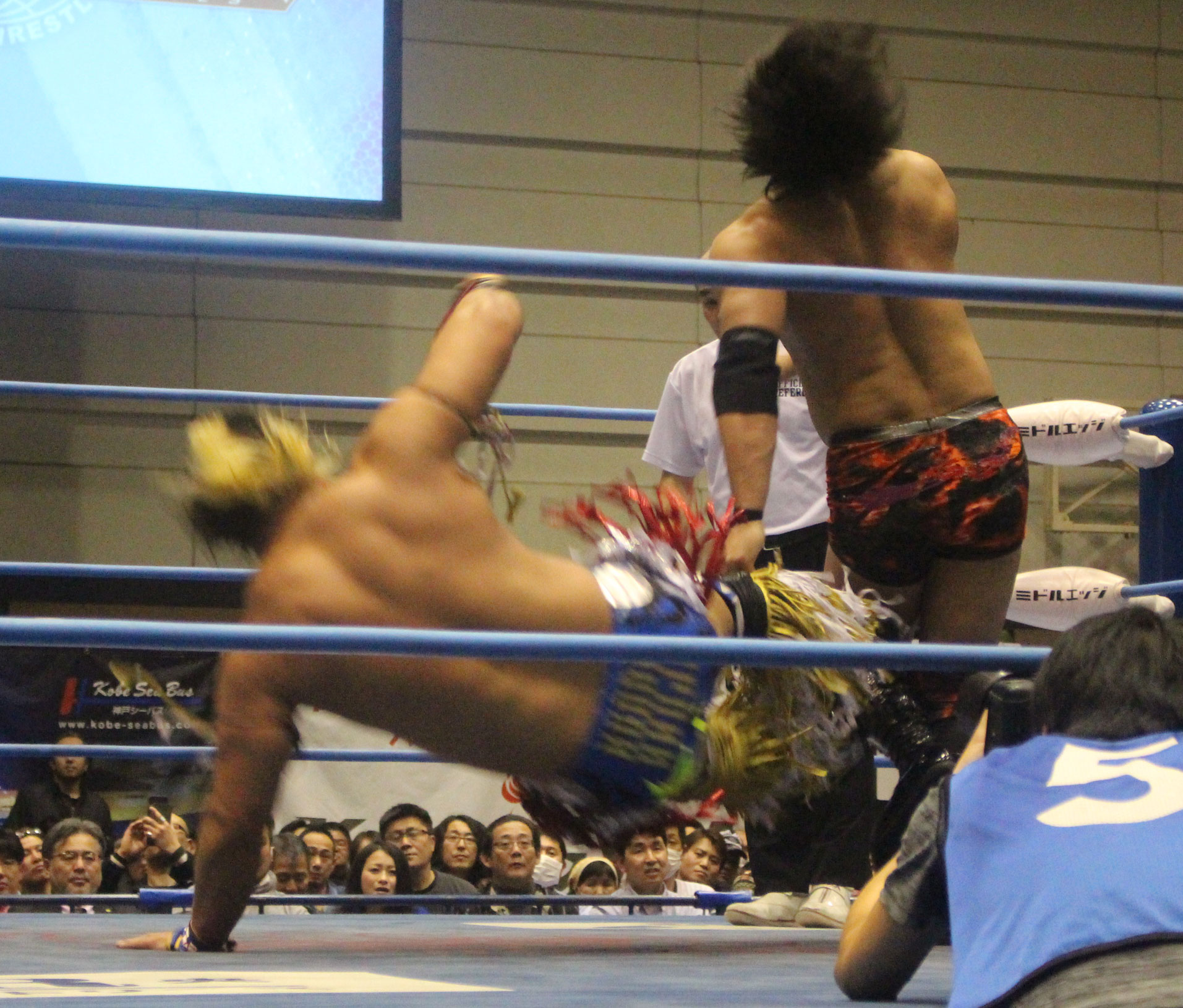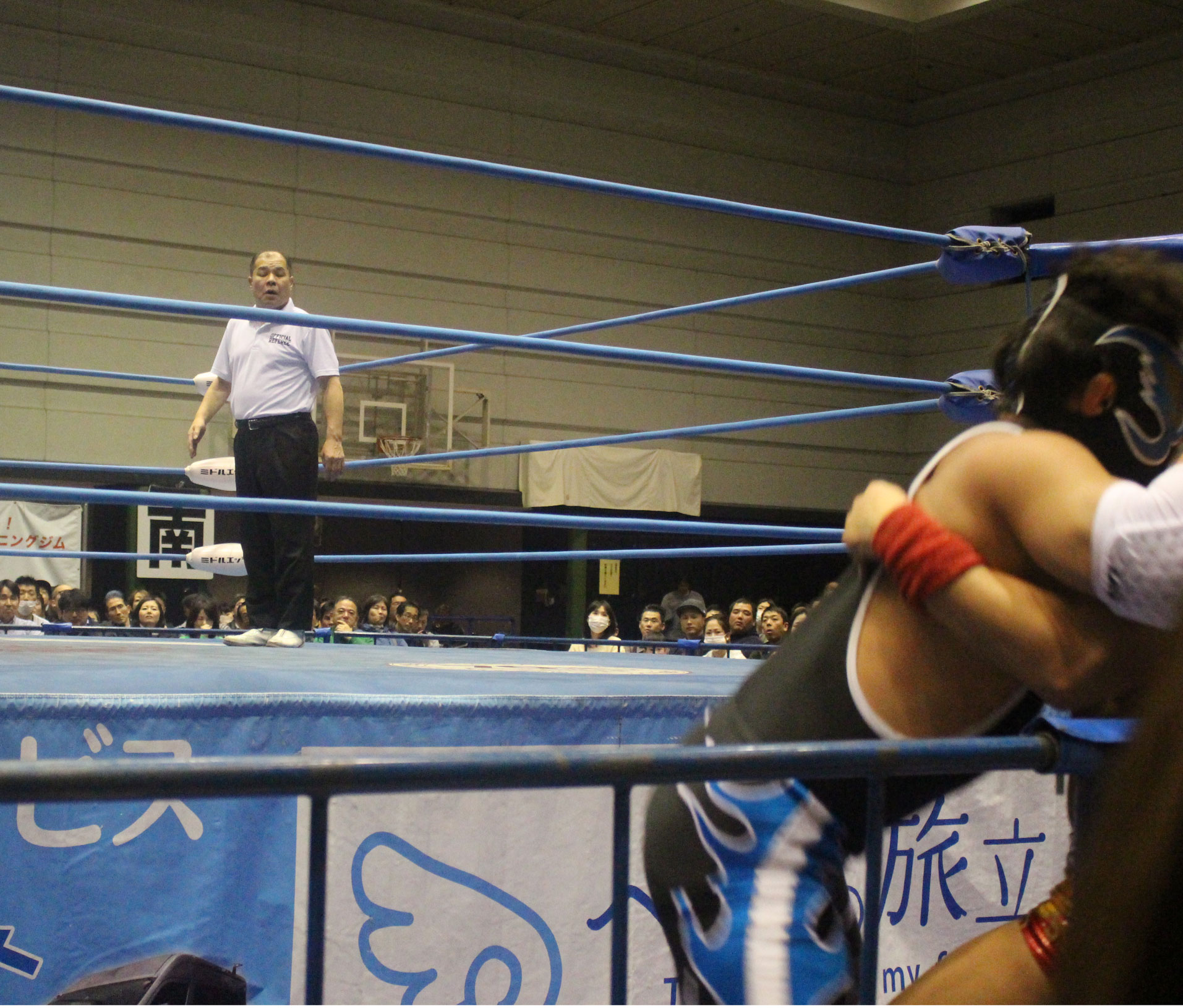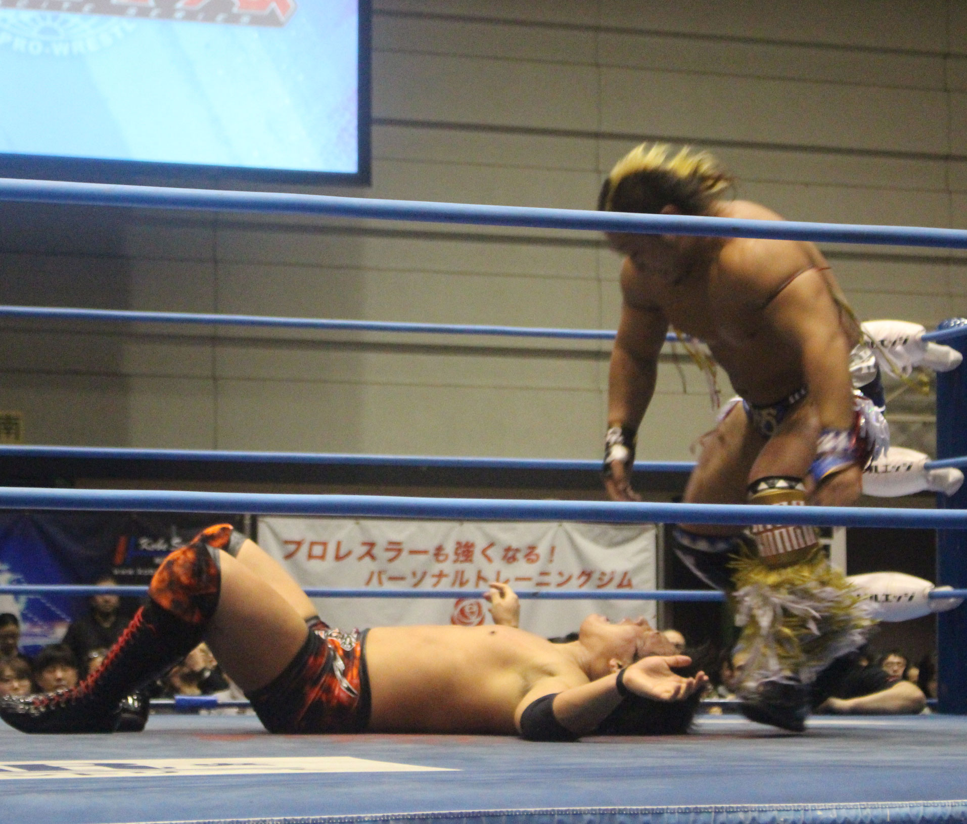 圧倒する近藤はKUBINAGEからランセルセを狙うが、岩本はニーアッパーで迎撃、近藤も左膝攻めで応戦するが、岩本は起死回生の一本背負いからネックスクリュー、エプロンでの大外刈りと猛反撃する。