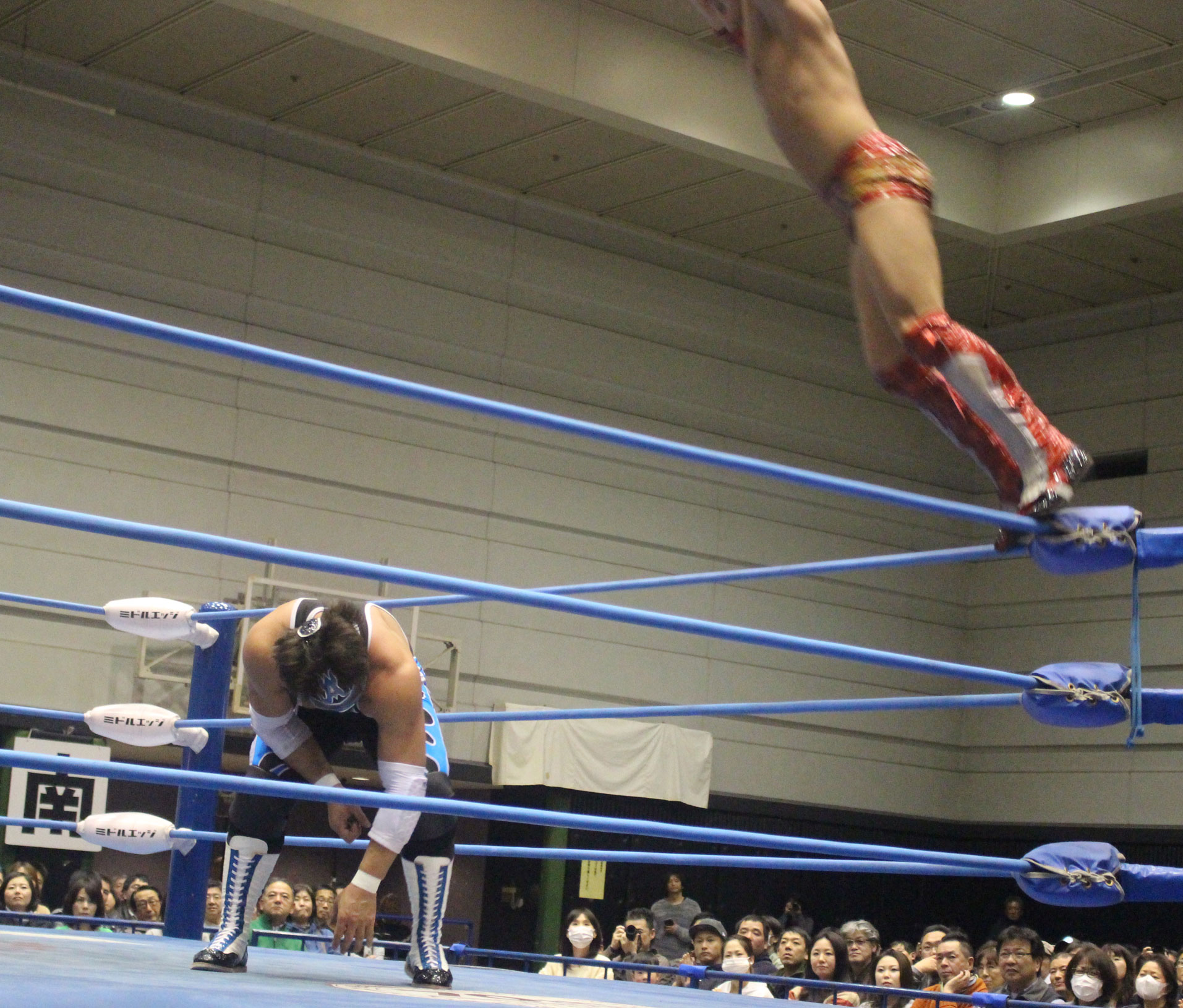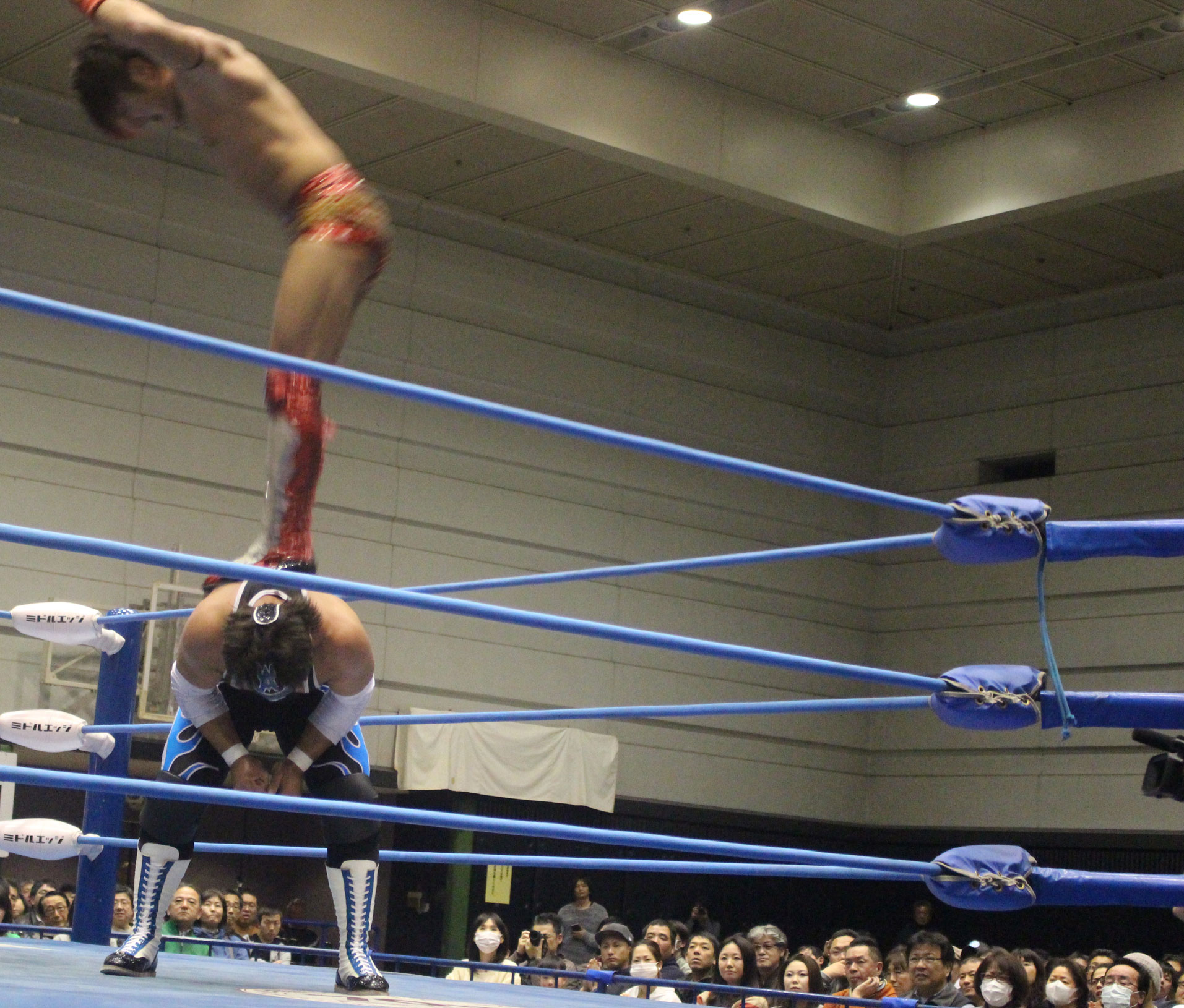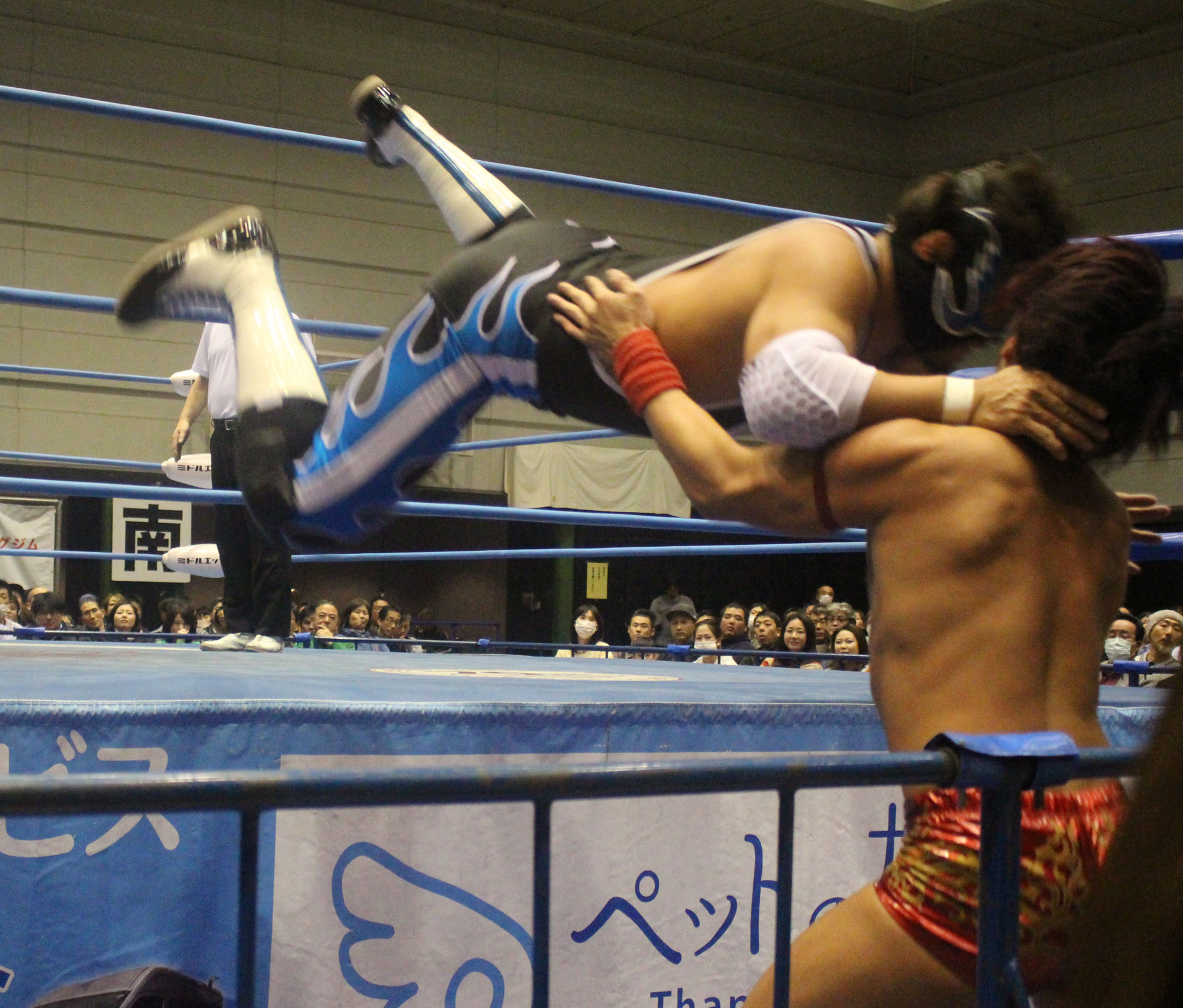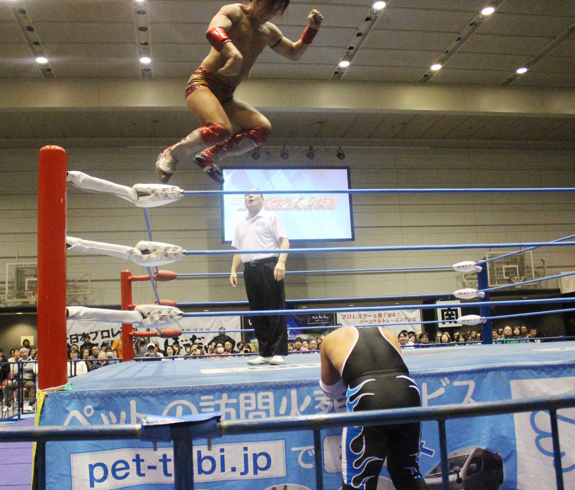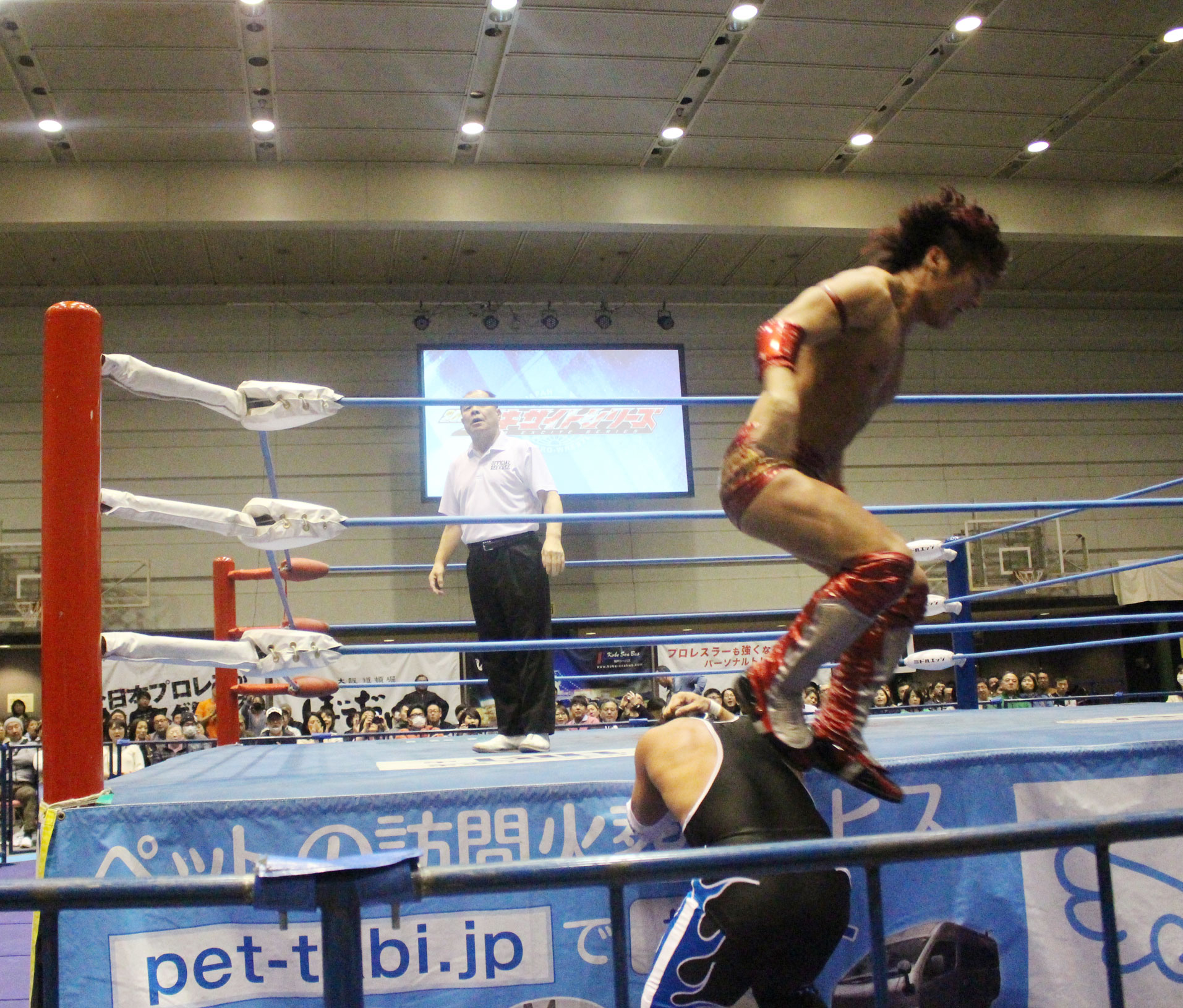 圧倒する近藤はKUBINAGEからランセルセを狙うが、岩本はニーアッパーで迎撃、近藤も左膝攻めで応戦するが、岩本は起死回生の一本背負いからネックスクリュー、エプロンでの大外刈りと猛反撃する。