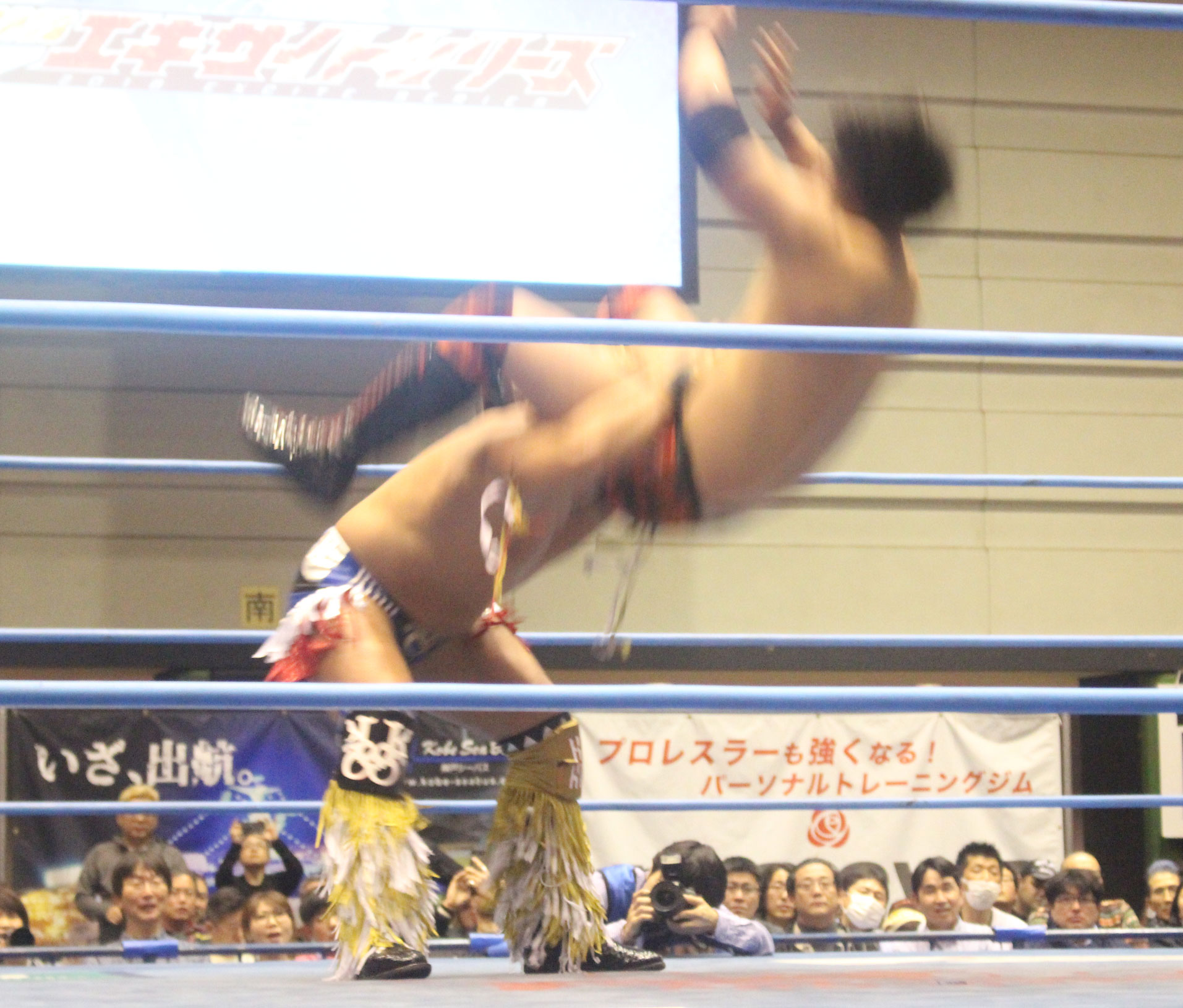 佐野は再度ダイビングフットスタンプからノーザンライトボムを狙うが、逃れた大矢はエルボー合戦からラリアットの相打ち、そして大矢のラリアットをかわした佐野がジャーマンも、意地で起き上がった大矢もバックドロップで応戦したところでフルタイムとなりドローとなった。第2試合では全日本で活躍したウルトラセブンが登場、セブンはブラックⅤを首投げからサーフボードストレッチ、ブラックⅦにはアームドラックで場外へ追いやってからトペの構えを見せるなど奮戦する。後半ではブラック組が場外戦で逆襲して、セブンや獅龍のマスクに手をかけるも、獅龍がブラック組の同士討ちを誘発してハンドスプリングエルボーで反撃すると、交代を受けたセブンもブラックⅤにクロスボディー、ブラックⅦには獅龍ともダブルフライングクロスチョップの編隊飛行を浴びせ、最後はショルダータックルからのリバーススプラッシュで3カウントを奪い健在ぶりをアピールする