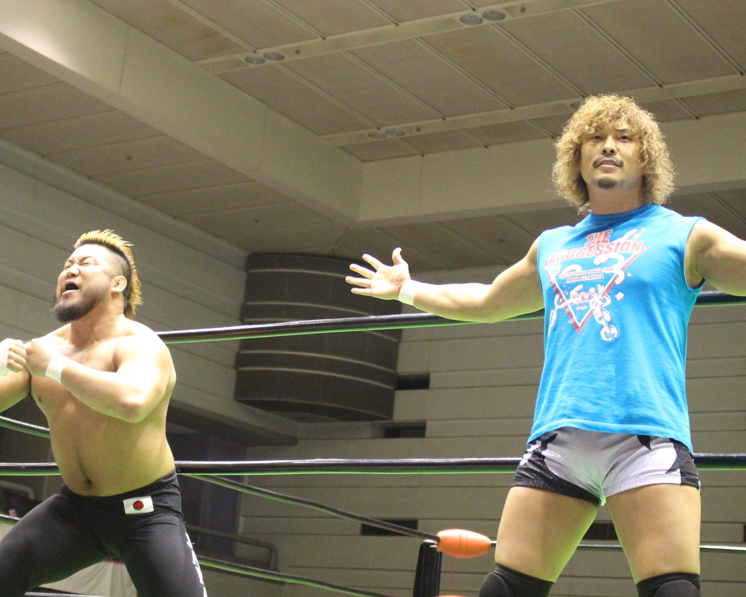 ○Hi69 田中稔 池本誠知(11分42秒 片エビ固め)大原はじめ 熊野準 ×宮脇純太
