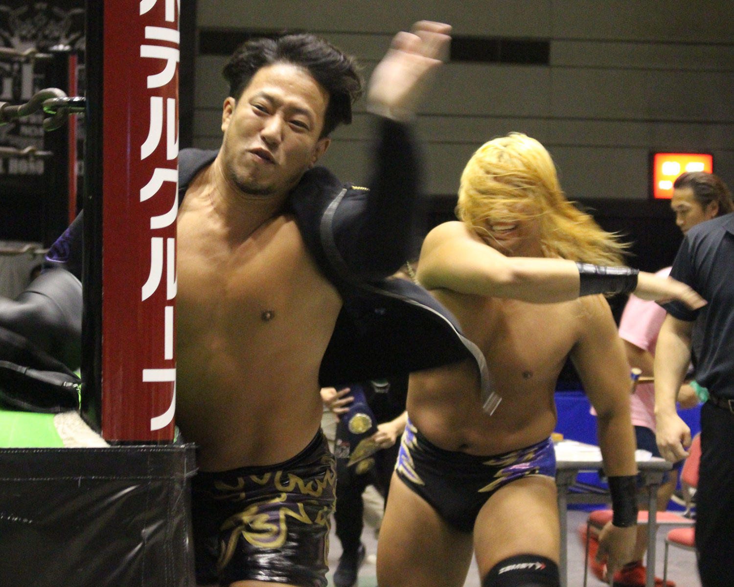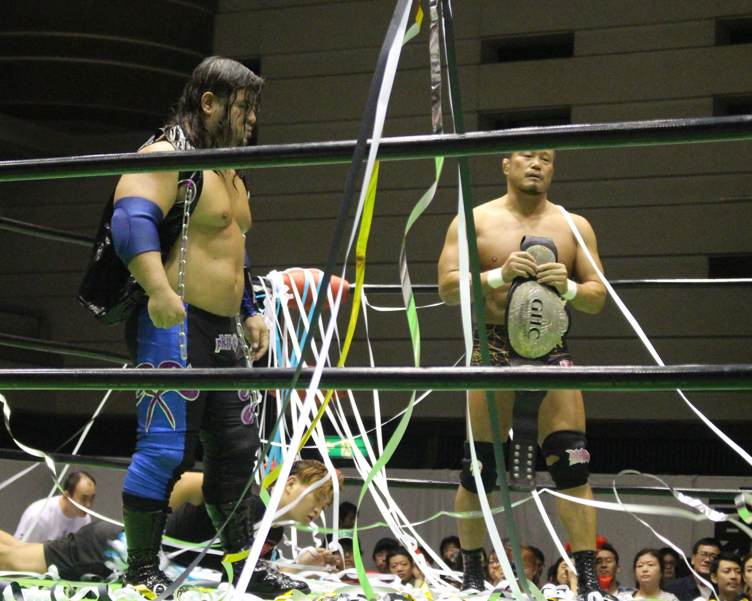 ☆丸藤&彰俊組が初防衛に成功(試合終了後)