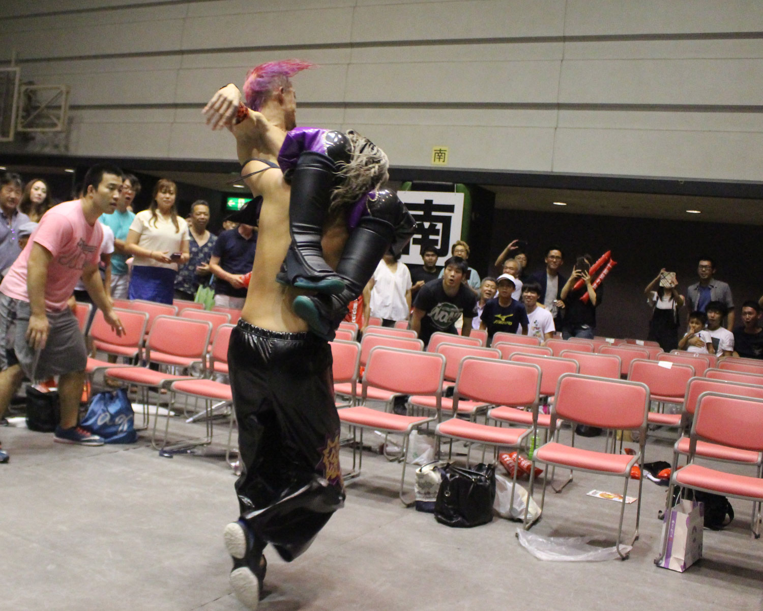 丸藤「大阪の皆さん、今日はありがとう! あのタコ坊主の髪の毛が肩まで伸びたら挑戦を受けよう。それまで楽しみにしててくれ。今日はありがとう」
