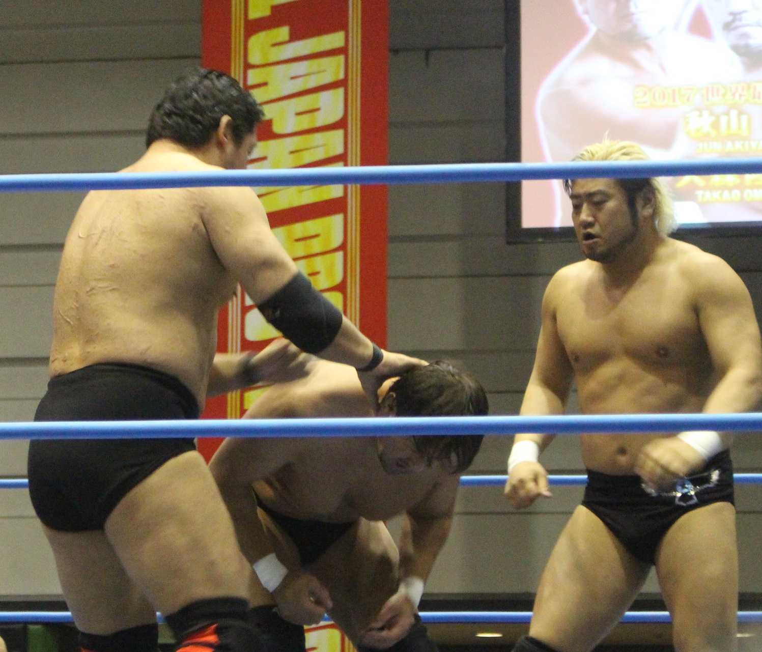 ○丸山敦 ビリーケン・キッド(6分52秒 タイガーススープレックスホールド)中島洋平 ×内田祥一◇第3試合◇