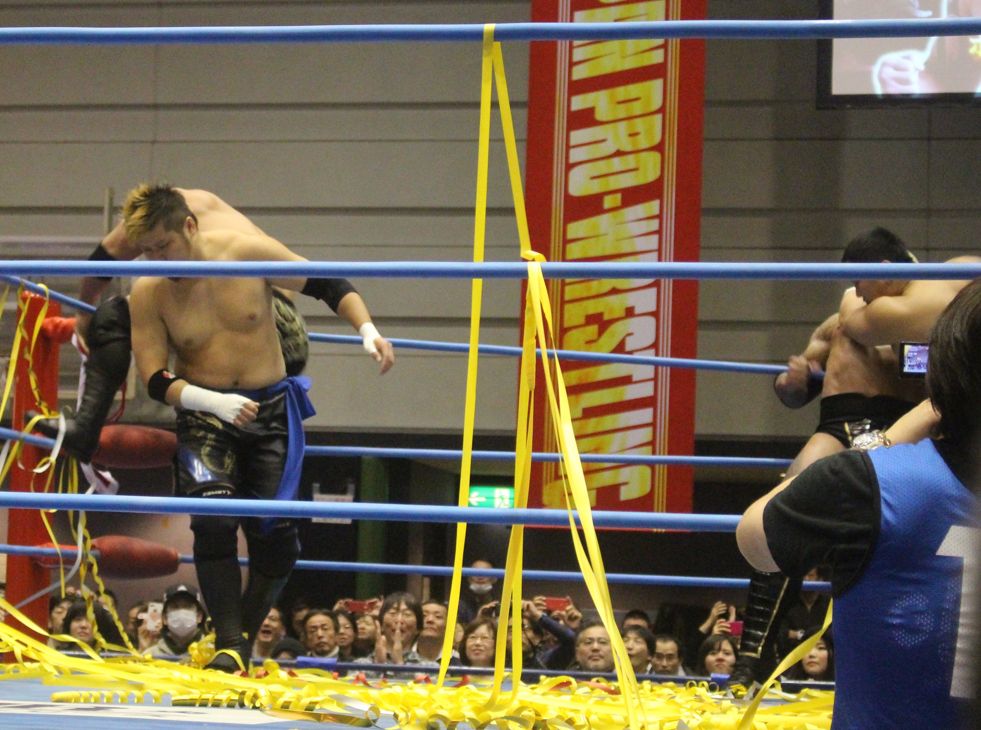 後藤「今日の勝利は、YOSHI-HASHIのなに? 助けあってのことなんでね。この調子で、タッグリーグ……」