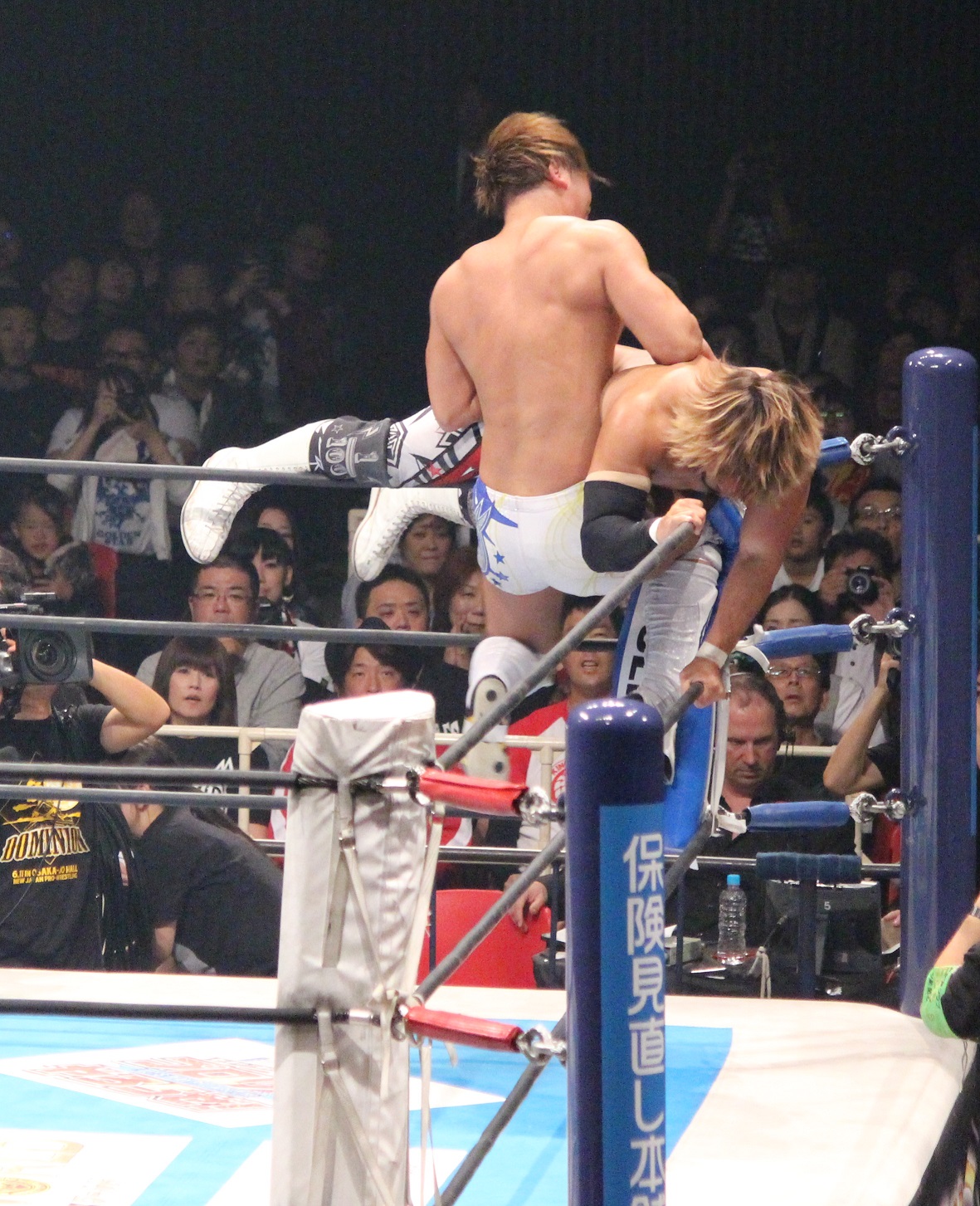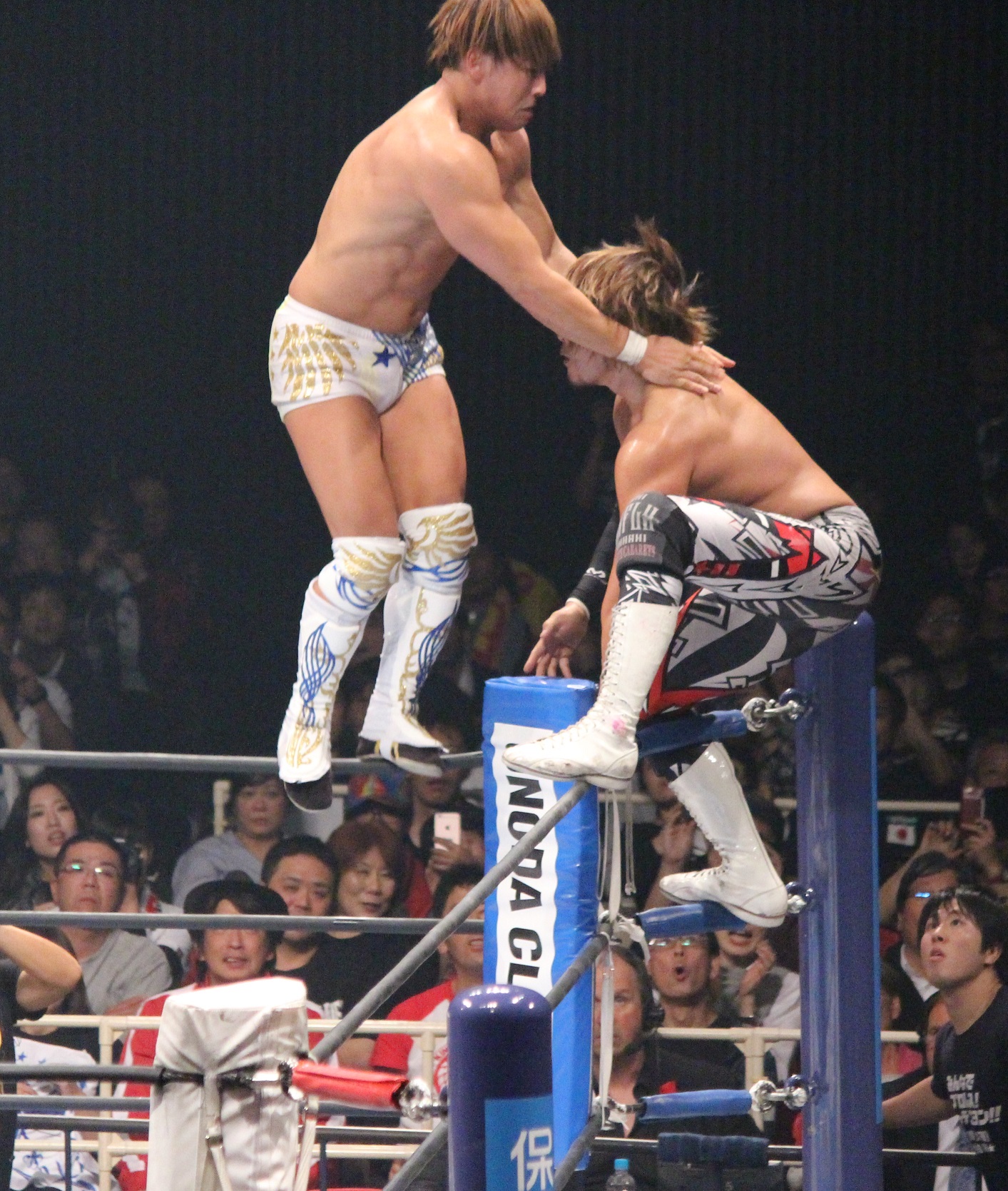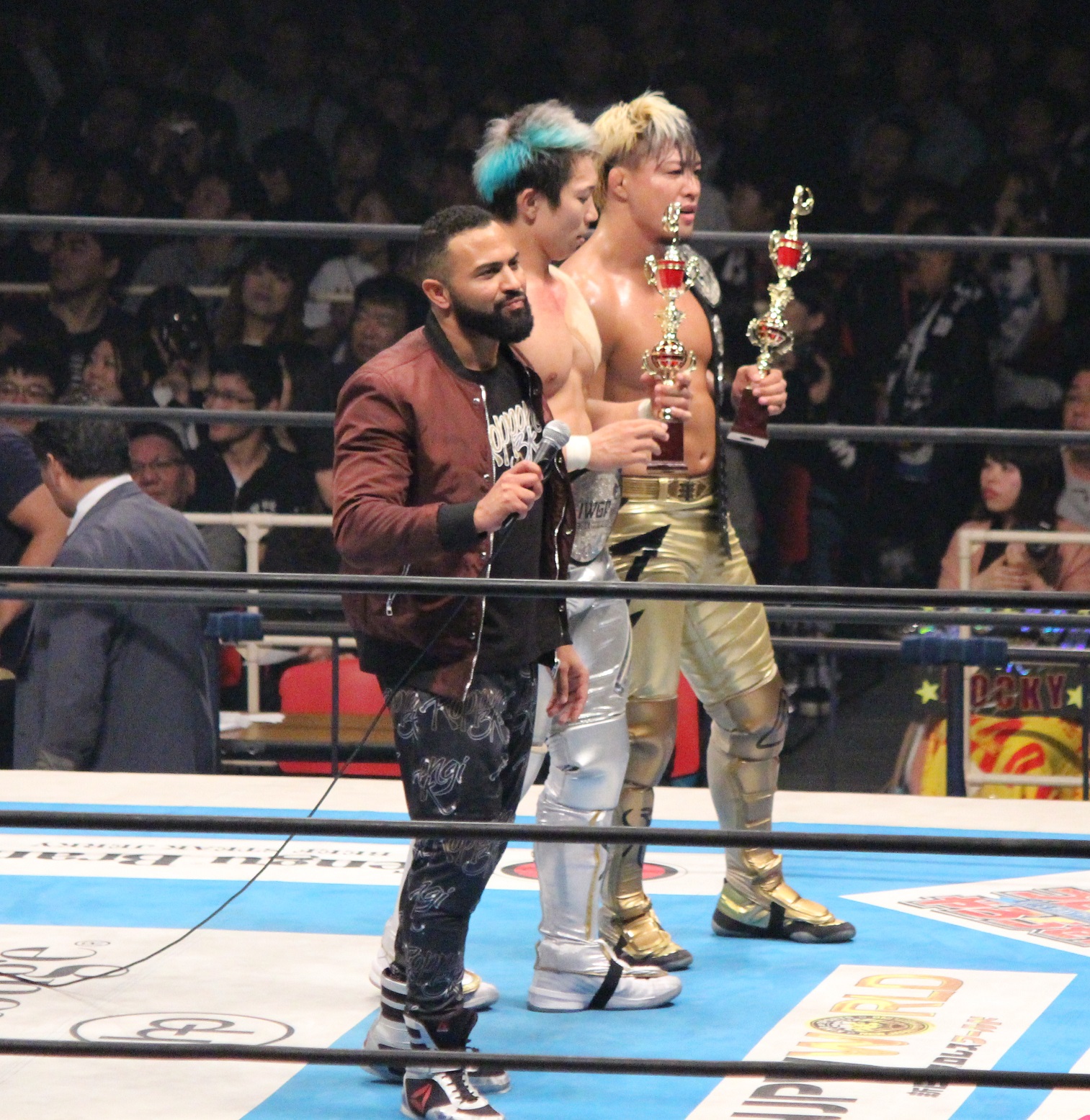 これからももっともっと頑張ってもらって、もっと大きくなって、ボクはそのリコシェをこれからもずっと見続けて学ばせてもらいたいと思います。センキュー、リコシェ」吉野「まああの、リコシェと初めて会ったのはアメリカでの大会だったと思うんですけど、そのときにリコシェの動きを見て、なんてヤツだと。こんなすごいヤツがまだアメリカにいたのかと思うぐらいすごい衝撃を受けたのを覚えてます。リコシェとは、土井ちゃんに裏切られて解散させられたWORLD‐1インターナショナルというユニットと、モンスター・エクスプレスという2つのユニットで一緒にやらせてもらいまして、そこでようやくいろんな話もして打ち解けて、リコシェと仲良くなれたなっていう気がしたのを思い出しました。リコシェは今日の試合も見てもらったらわかる通り天才だと思います。ユー・アー・ジーニアス。リコシェとはしばらくは離ればなれになってましたけど、たまにメッセージくれたりして、コンタクトは取ってたんですけど、久しぶりに再会して、ホントに人懐っこいままのリコシェで帰って来てくれて、でも技術はアップしてて、リコシェというすごいプロレスラーと出会えてよかったなと思います。リコシェ、頑張って。マイフレンド」