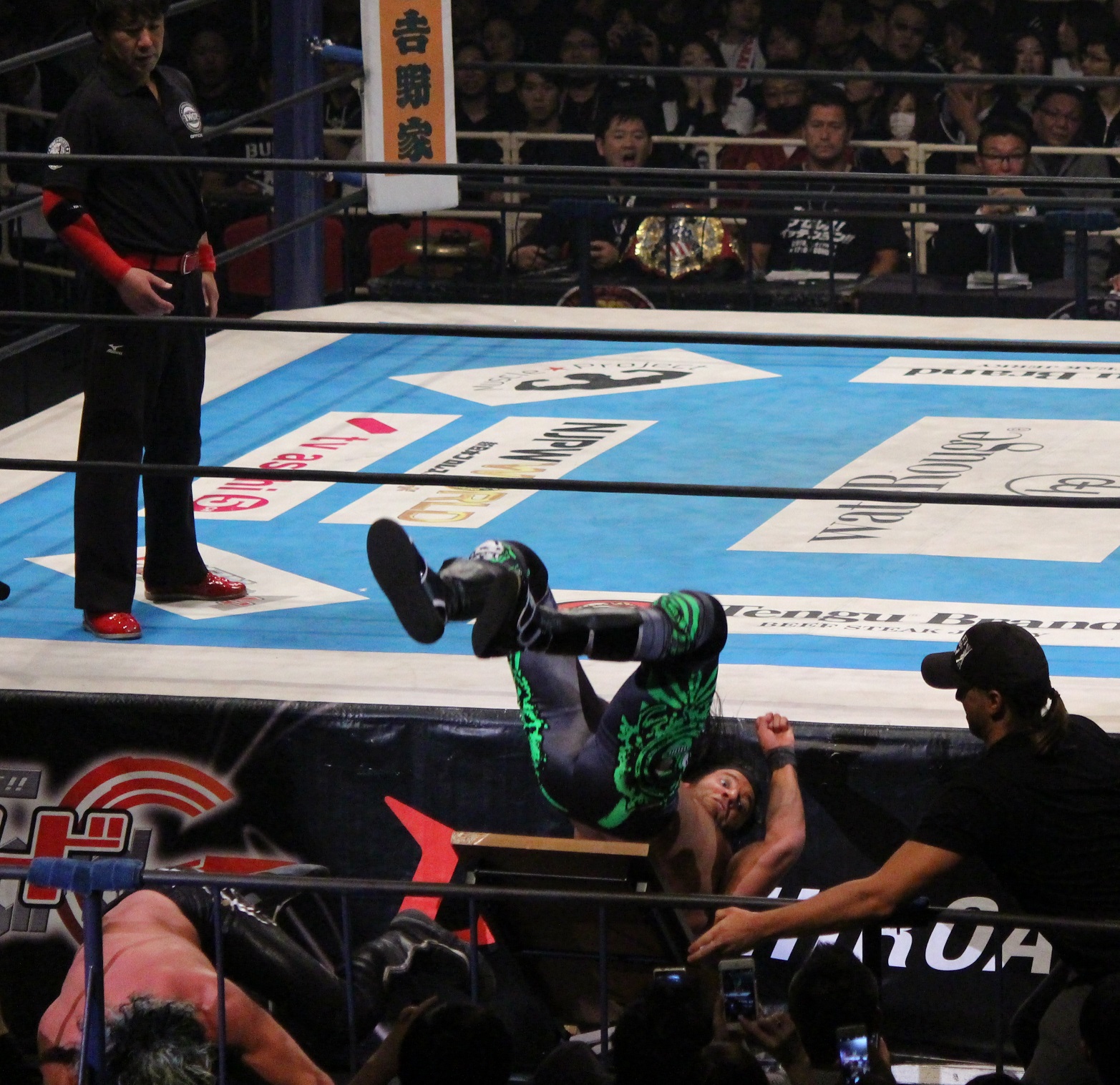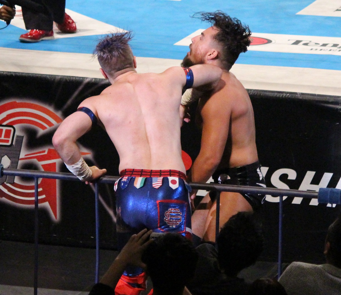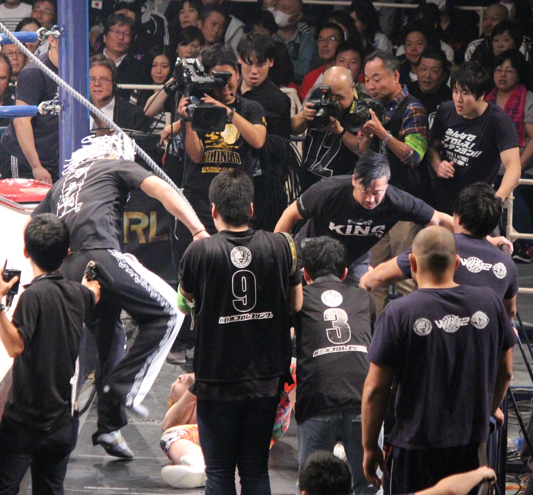 ※シューティングスタープレス(試合終了後、CIMAと抱き合ったリコシェがコーナーでコーナーバックルに顔をうずめる。手を上げてファンにアピールすると咆哮。CIMAに続いてリコシェがYAMATO、Kzyと握手。ハルクとマリアもリングに上がりリコシェと握手。リコシェがマリアにキス。マリアが驚いて卒倒。リコシェはフラフラになりながらKzy、YAMATOともキス。リングサイドのGammaにも、そしてハルクにキスして大の字に。リコシェコール。客席に手を上げ、頭を下げたリコシェ。全員で手を上げた。)