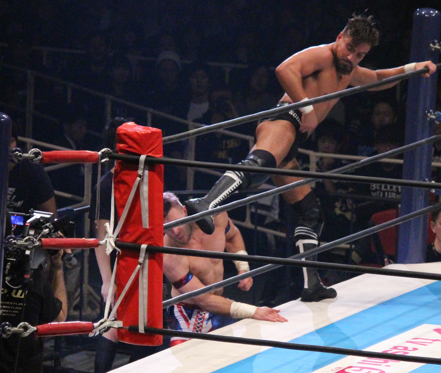 リコシェはペナドリラーを狙うが、着地したKzyはスカイデ・スクールボーイで切り返すも、キックアウトしたリコシェはペナドリラーをサイド狙うが、着地したKzyはCDJで切り返してKZ.timeを狙う。