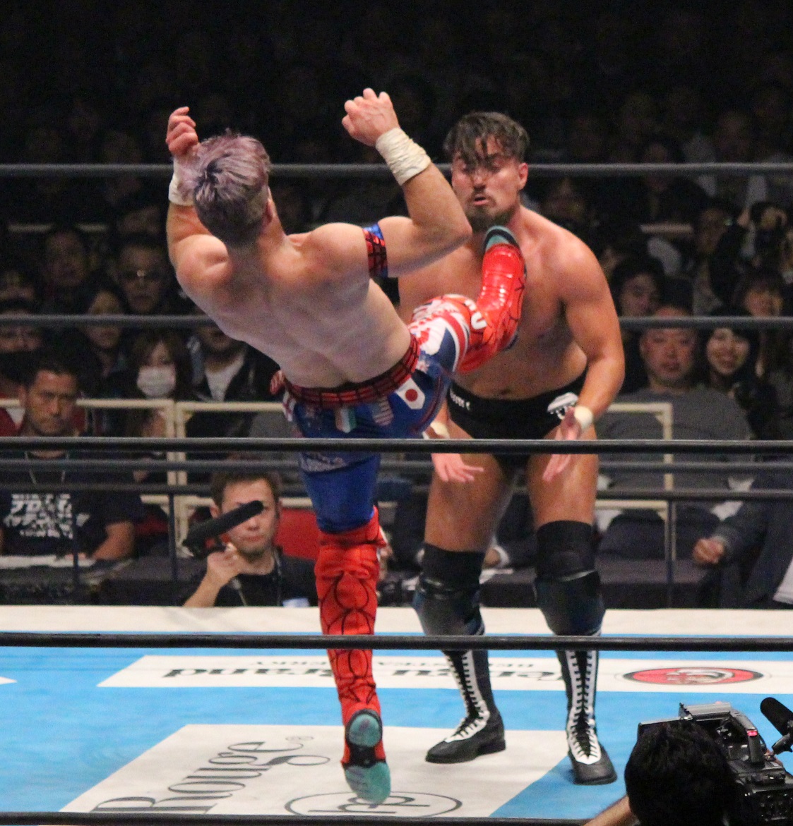 キッド「リコシェとはホントにブレイブゲート、いろいろね、タイトルマッチ防衛戦したりとか、いい思い出がたくさんあります。その試合でボクは成長できました、実際。年齢も一回りぐらい違うんですけど、11歳ボクの方が上なんですけど、それでもリコシェからいっぱい学ぶことが多くて、毎回毎回リコシェにいろんなことを。まあ、言葉はボクは英語苦手なので、コミュニケーションは気持ちで。気持ちでなんとなく気持ちで伝えられるので。ボクはガンガン日本語でしゃべるんですけど、理解してくれます。ボクらプロレスラーはリング上でリコシェと会話してたような感じで、いっぱいいい思い出があります。