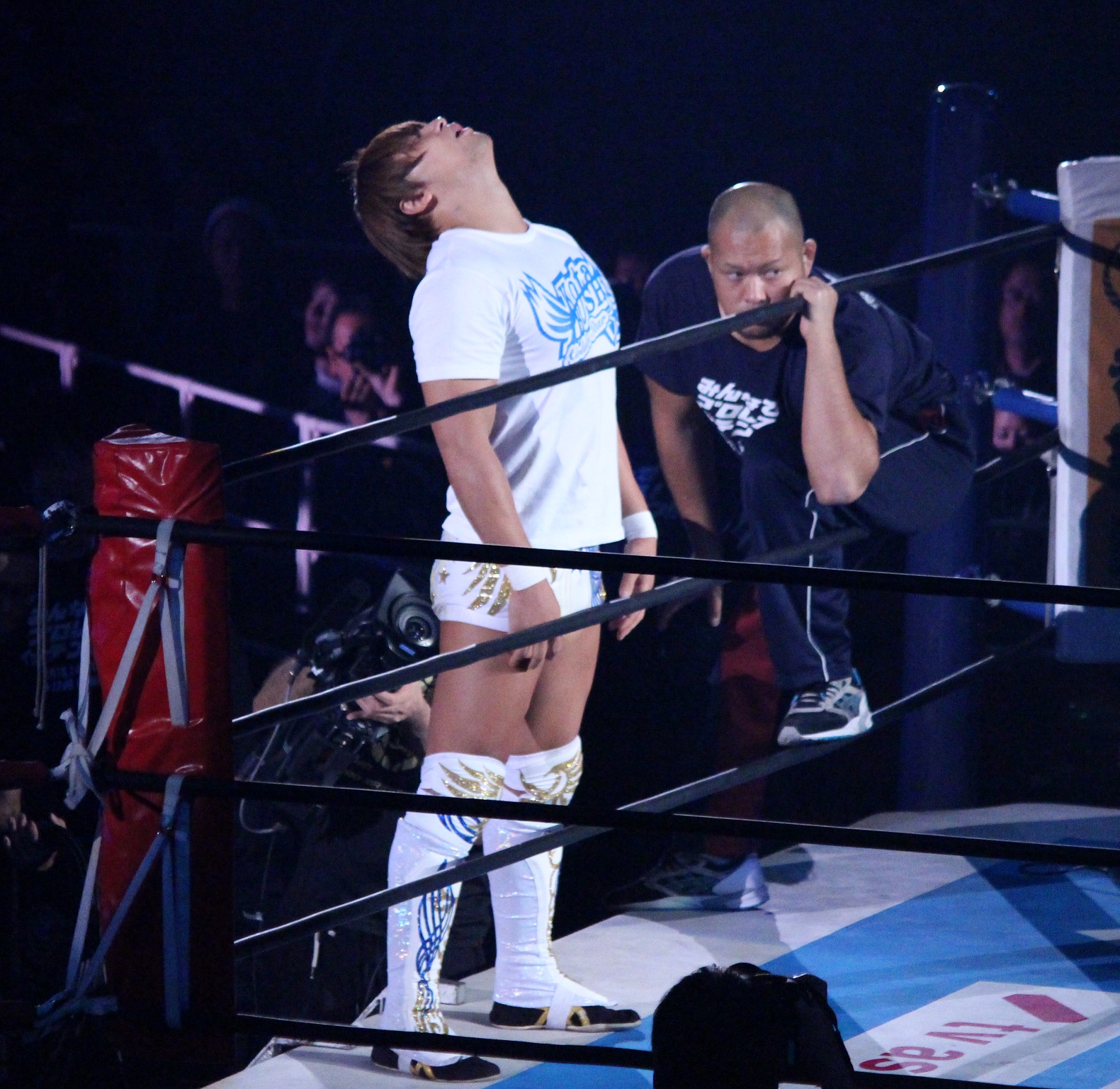YAMATO「まあリコシェね、ホント今日は久々3年ぶりですかね、試合して。3年ぶりぐらいに会ったらホントにスターのオーラがすごくてね。髪の毛もなくなって別人かと思って。もう帰る気満々みたいな格好してますけど(笑)。まあ彼との思い出はね、ドリームゲート闘ったこともありまして、あのときは悪いことしてごめんなさいね。