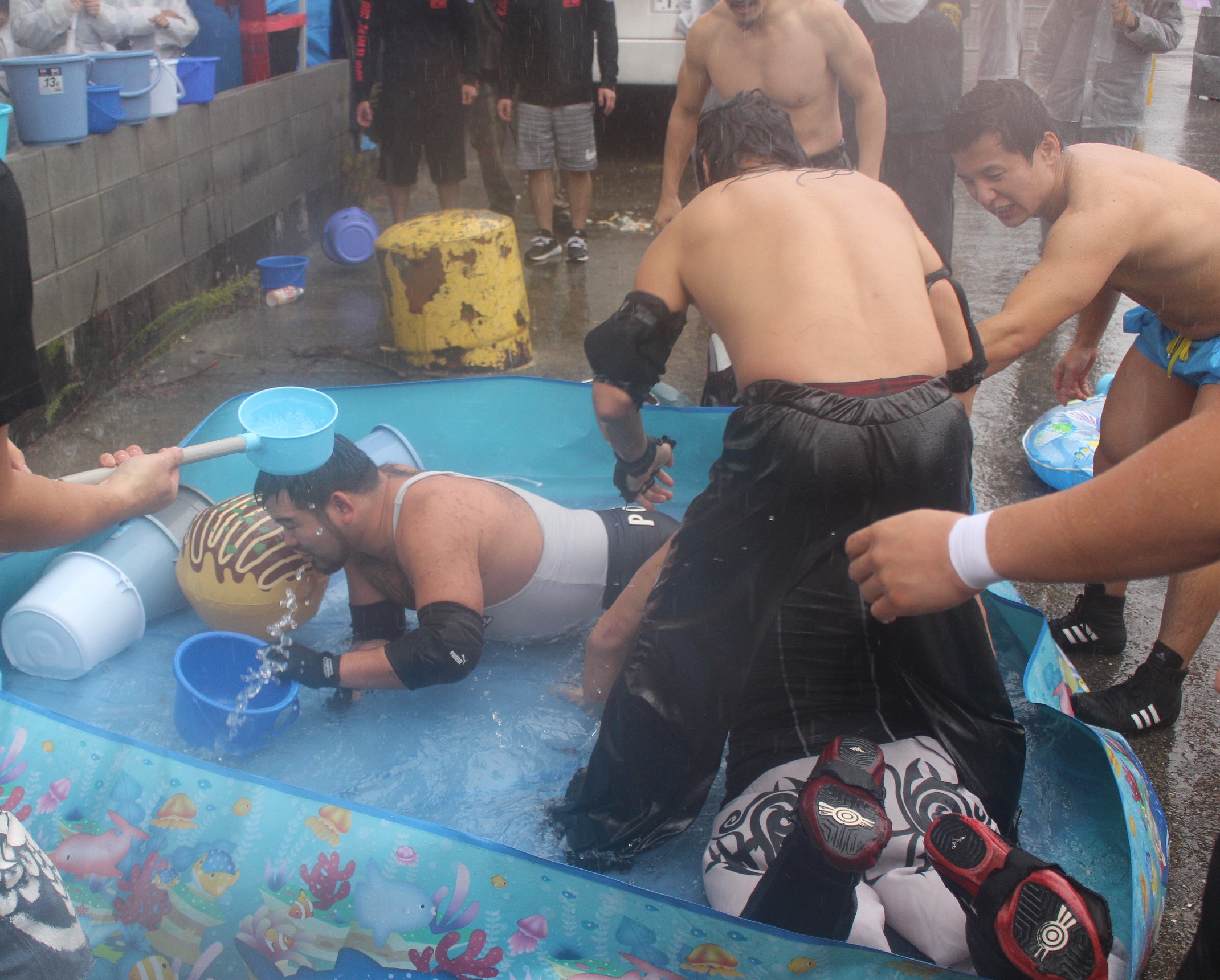 しかし竹下はディーノの股間に噛みついて脱出すると、掟破りのファイト一発からジャーマン狙いはディーノがエンドレスワルツ式ゲイ道クラッチで丸め込んでカウント2.99とあわやの場面を作り、リバースエビ反りジャンプから男色デストロイも決めるがこれもカウント2でキックアウトされてしまう。