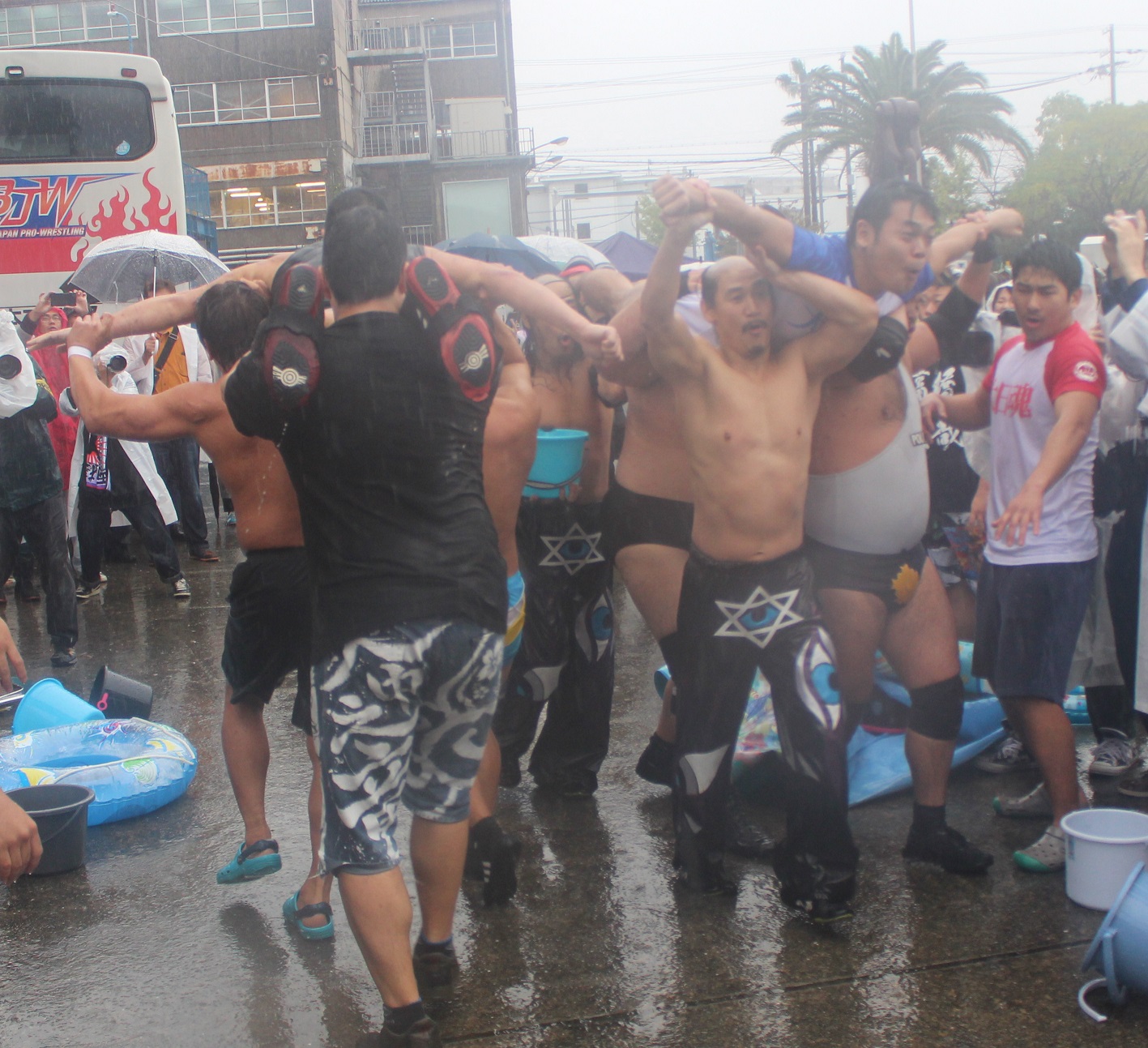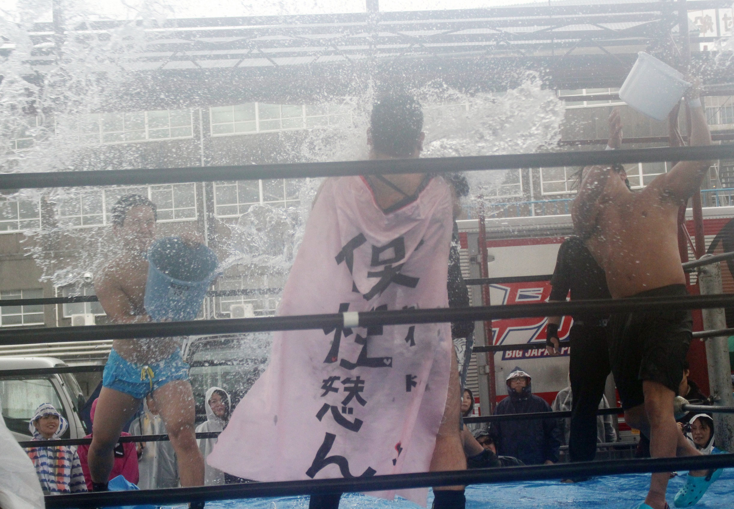 藤田は雪崩式フランケンシュタイナーから、Tシャツを脱いでさらし姿を見せると、蛍光灯を持ってコーナーへ昇るが、竹田が蛍光灯で阻止し、コーナー上での攻防からエプロンでの工房になると、藤田は場外櫓への断崖式SAYONARAツームストーンパイルドライバーを敢行して櫓は大破、大ダメージを負った竹田に藤田は腹部裂傷の傷を抑えながらも、星野譲りに勘九郎カッターを決めてからSAYONARAツームストーンパイルドライバーで突き刺す。