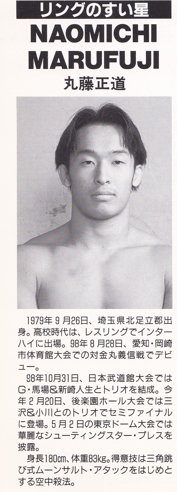 齋藤彰俊は格闘家になろうとして誠心会館に入門、長州力のファンだったもあってプロレスラー志望でもあった。1990年12月に剛竜馬のパイオニア戦志でプロレスデビューを果たし、その後W☆INGの旗揚げに参加するも分裂騒動に巻き込まれてしまい、分裂した一派はWMAという団体を準備し、彰俊もWMA側についたが、WMAは旗揚げすることもなく崩壊、彰俊自身も上がるリングを失って宙ぶらりんの状態になっていた。