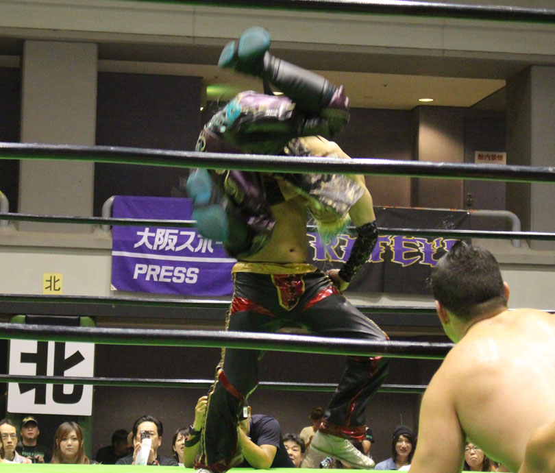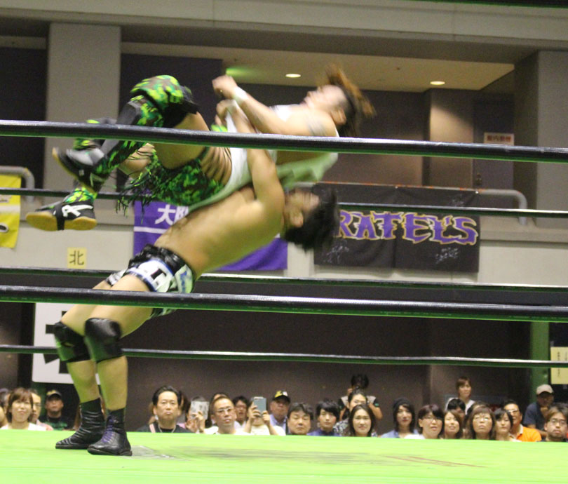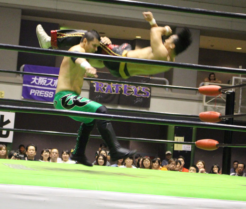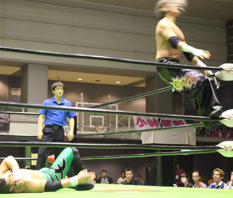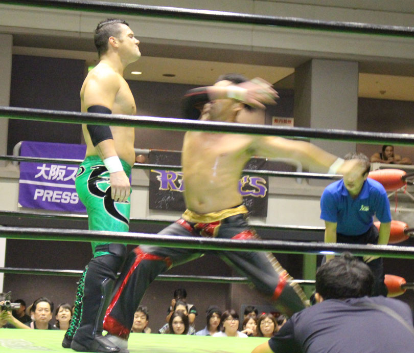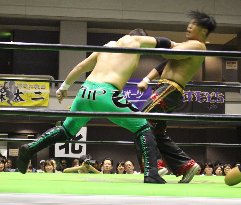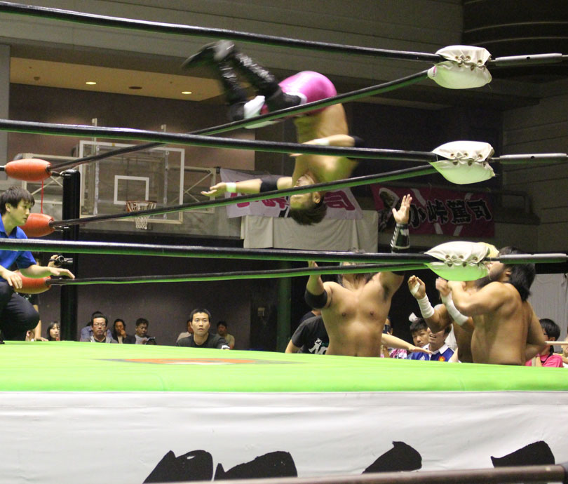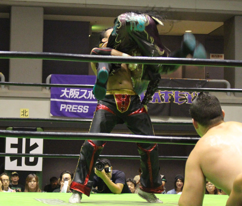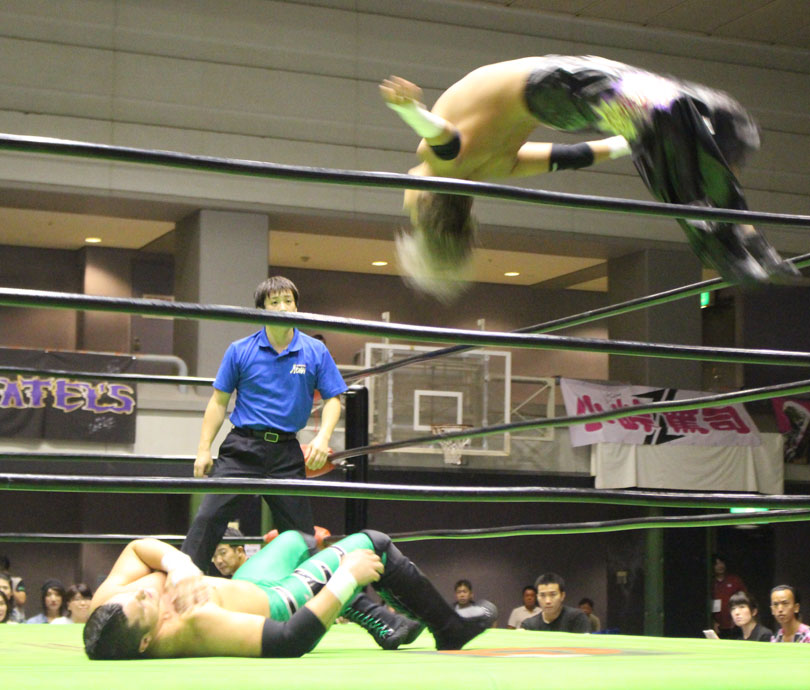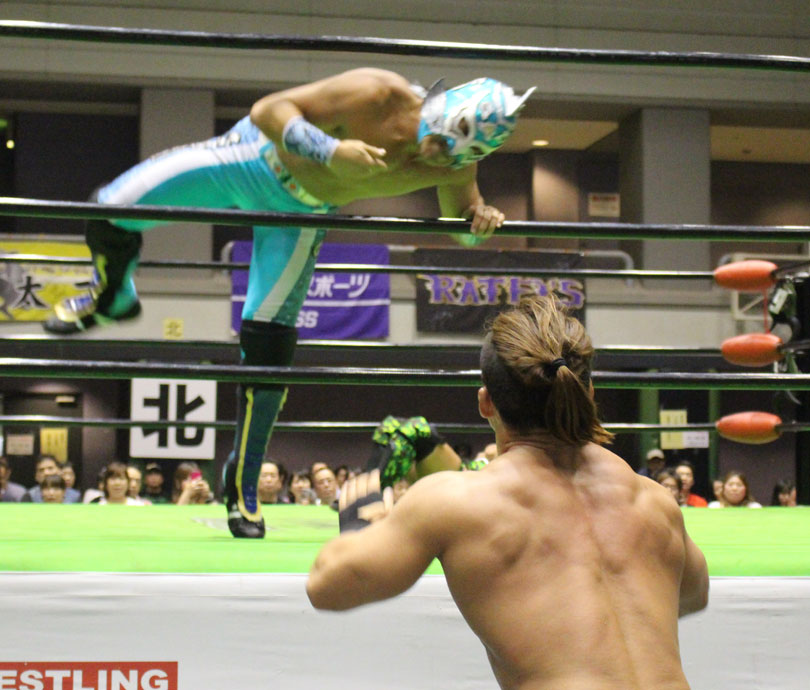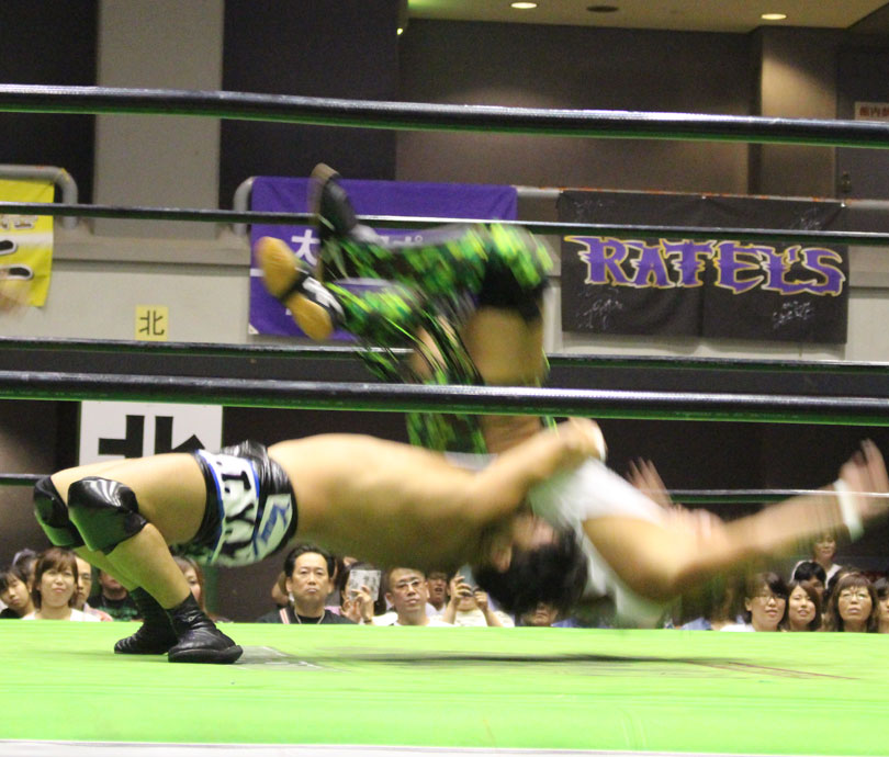 試合後には秋山&大森のワイルドバーニングが挑戦表明した、秋山&大森は10月に横浜文体でデビュー25周年大会を控えているが、挑戦するのは横浜文体大会か?世界ジュニアヘビー級選手権はTAJIRIがネックツイストから首攻めを展開し、執拗に丸め込みやカバーを何度もするなどしてウルティモのスタミナを奪いにかかり、TAJIRIにハンドスプリングエルボーをドロップキックで迎撃したウルティモも場外のTAJIRIにラ・ケブラータを狙うが、阻止され、執拗にスタミナを奪いにかかる。