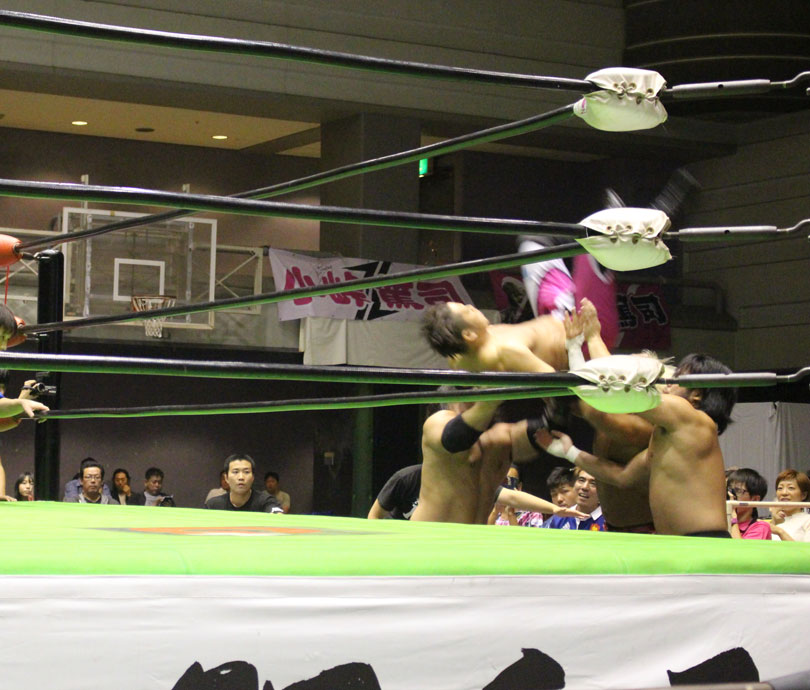 鈴木はレフェリーとエルガンを交錯させて、再び鈴木軍が総攻撃をかけるが、田口JAPANがカットに入り鈴木軍を排除、エルガンがローリングエルボーからエルガンボム狙うが、鈴木が阻止してゴッチ式パイルドライバー狙う。しかしエルガンがエプロンに担ぎ出すと延髄斬りを浴びせ、鈴木がOTRで退場となって、田口JAPANが逆転勝利となった。