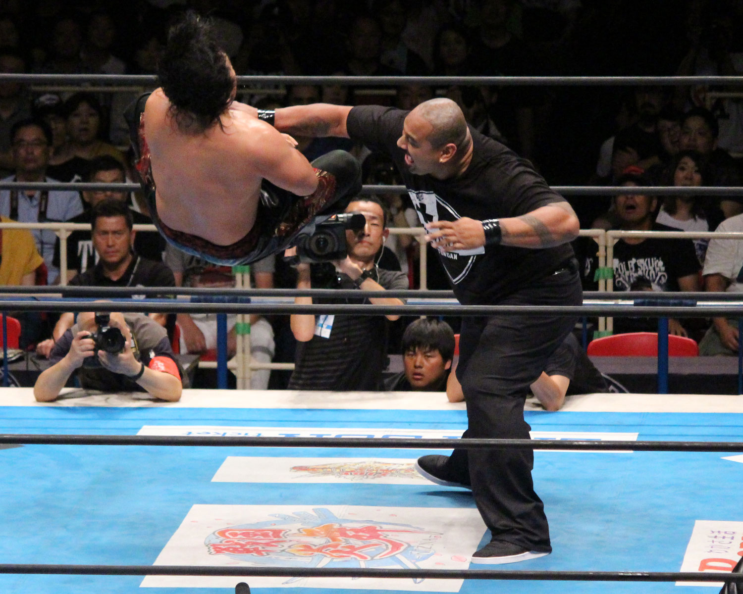 鈴木みのる ○エル・デスペラード(7分34秒 体固め)オカダ・カズチカ ×外道