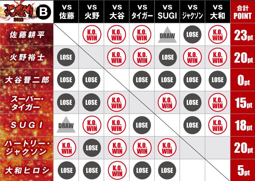 — DDT ProWrestling (@ddtpro) 2018年7月24日第4試合後には以前執行されなかった大家健の罰ゲームが執行され、まず試合スタイルで登場した那須川天心は大家人形でデモを行い、ケツではなく頭部へのハイキックで大家人形の首を蹴り飛ばし、『お笑いウルトラクイズ』ばりのデモが終了、大家だけでなく館内もどよめきが出る。