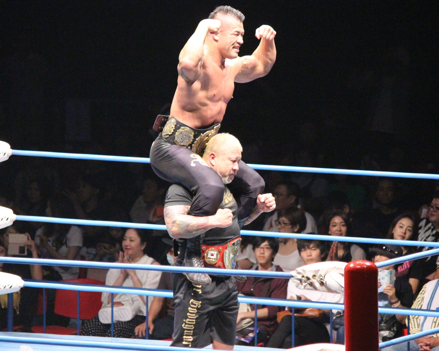 諏訪魔 石川修司(暴走大巨人コンビ TAJIRI&ヴァレッタを降し世界タッグ王座を防衛)