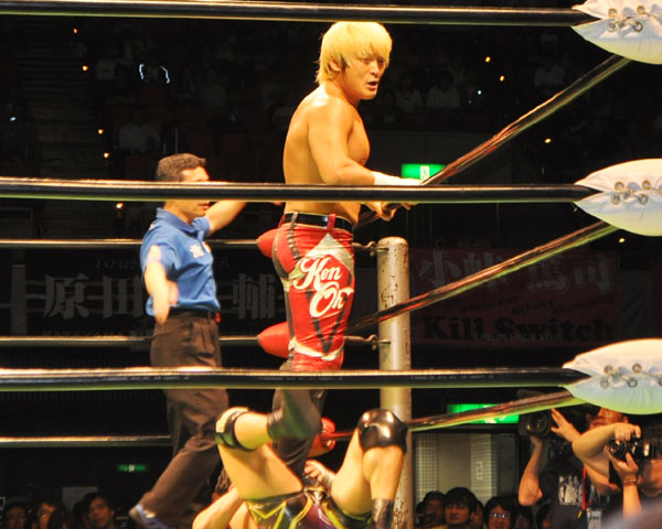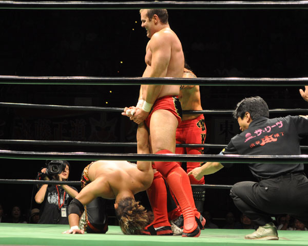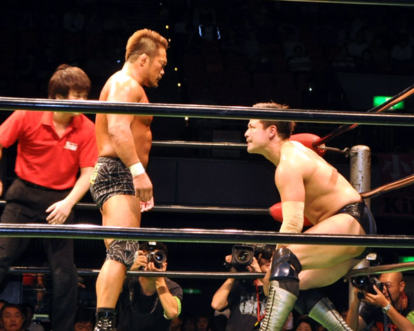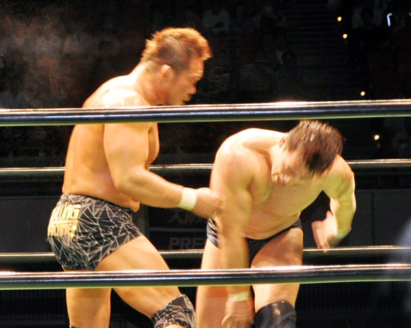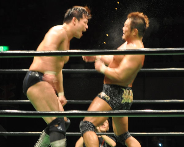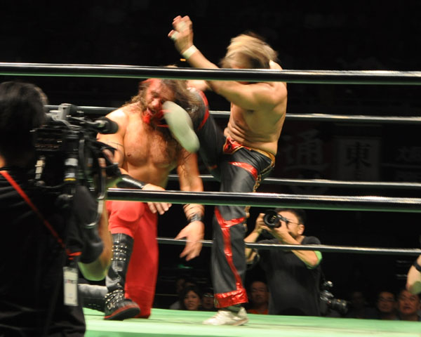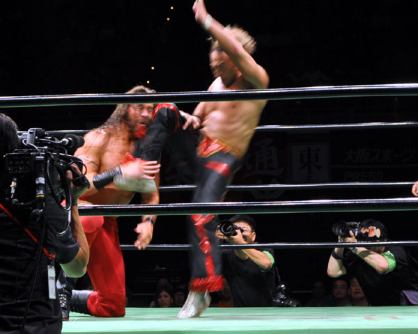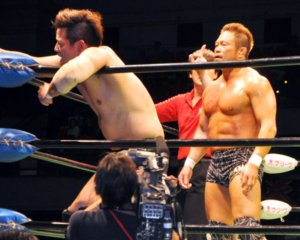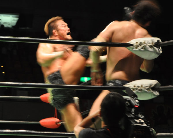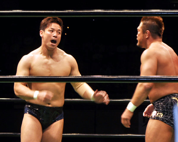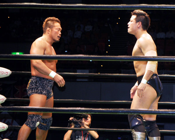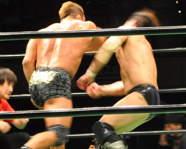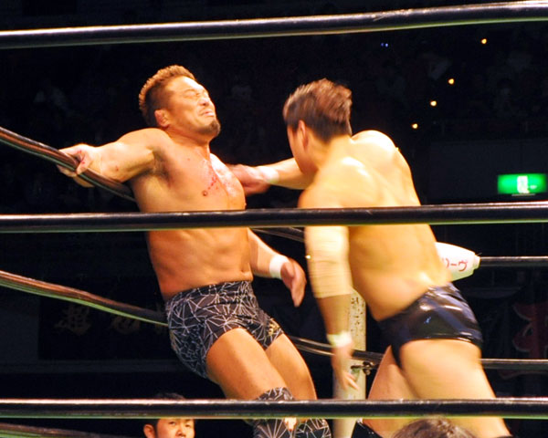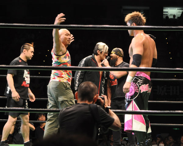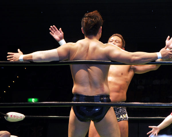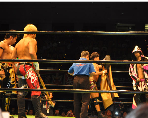 ケニー「俺がシャラップ!? ハハハハ。ノー。タナハシサン、ユー、シャラップ」(などと反撃し、いきなり棚橋を暴行。だが、小島&エルガン&ヨシタツ&キャプテンがリングへ駆け込み、棚橋を救出。エルガンがオメガへノータッチトペコンヒーロを見舞い、そのまま第5試合開始のゴングが鳴った。)【棚橋の話】