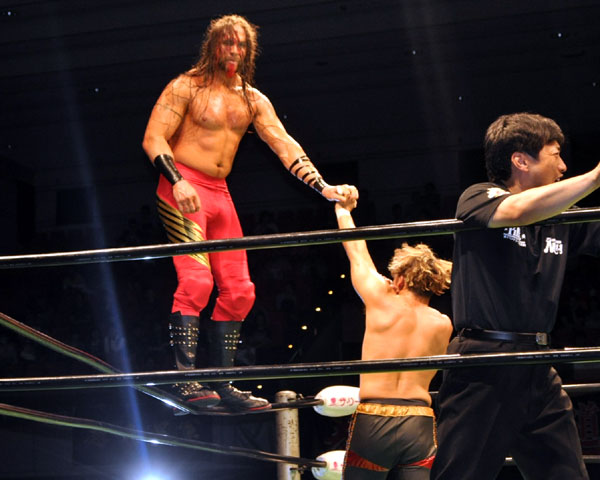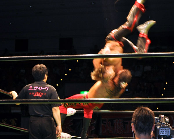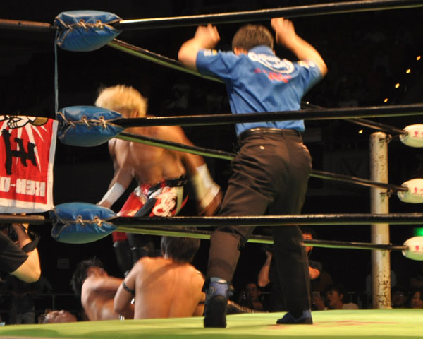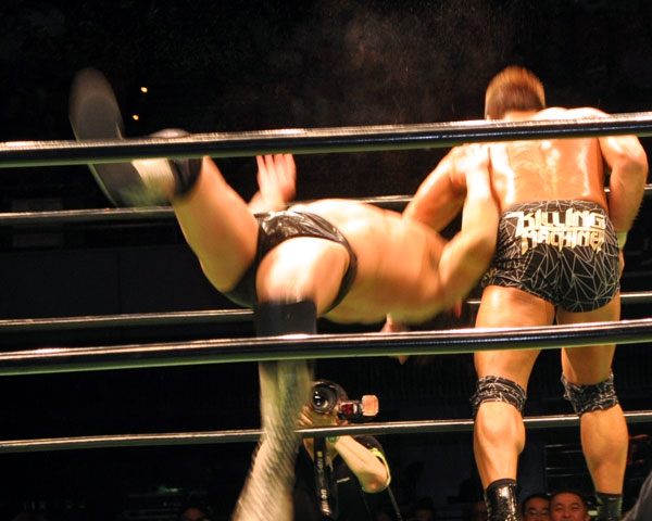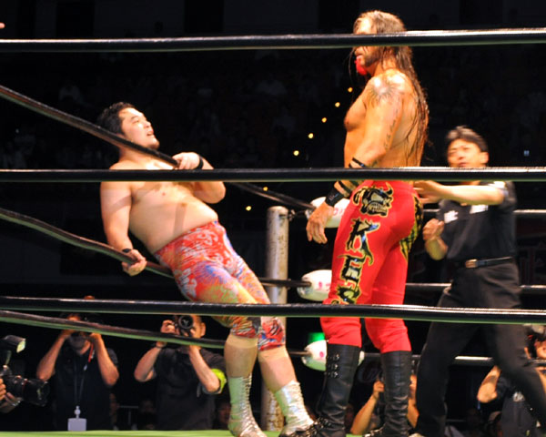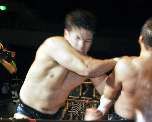 しかし丸藤がKESの連係に捕まってしまうと、不知火を狙う丸藤をアーチャーがブラックアウトで叩きつけ、スミスJr.が入ってキラーボムを決めて勝負あったかに見えたが丸藤が間一髪クリアする。