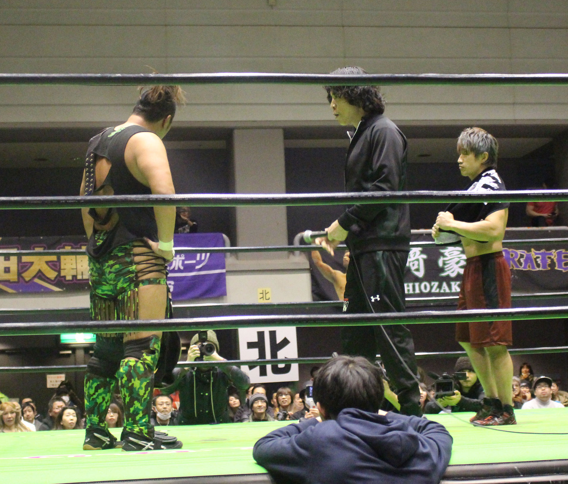 大会前には2・2後楽園で行われるGHCタッグ選手権の調印式が行われ、調印の後で乱闘になるのではと思われていたが、互いに挑発に終始、一触即発の雰囲気のままで無事調印式は終わった。