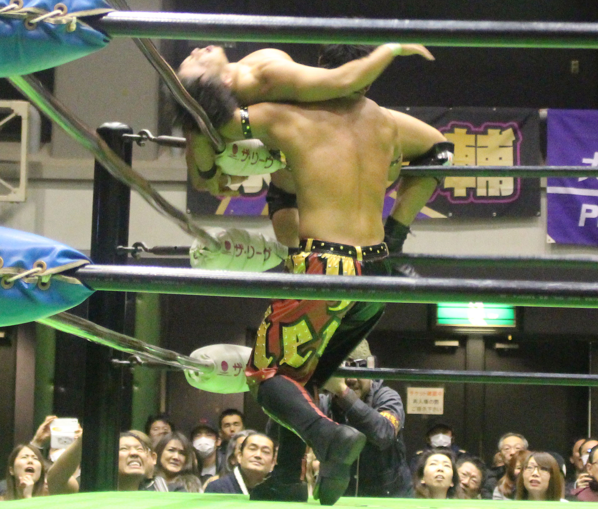 (試合終了後、HAYATAは無言のまま原田のベルトを指差して挑戦を表明。すると大原の介抱から戻ってきた熊野もリングに駆け上がる)